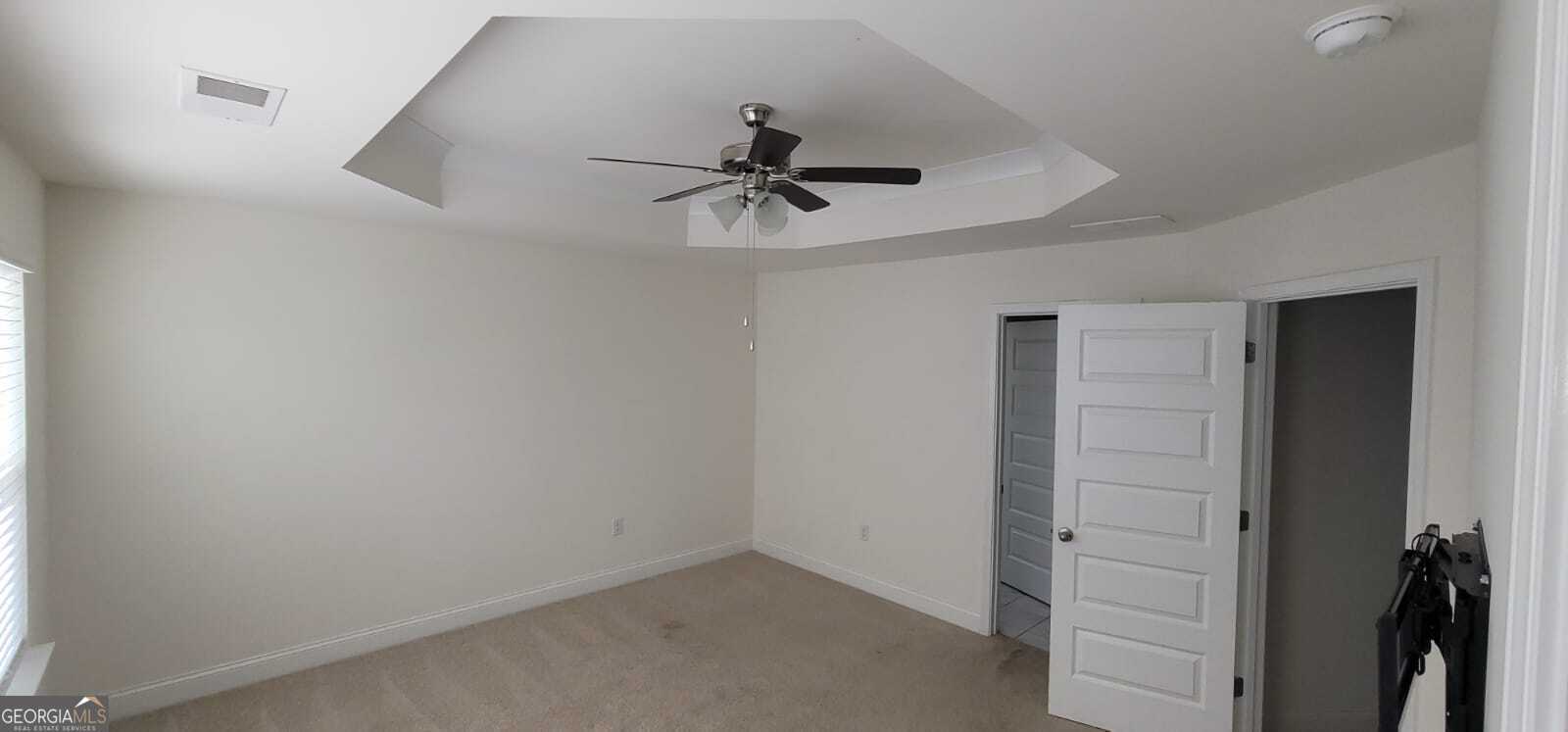 - Interior FeaturesTray Ceiling(s), High Ceilings, Double Vanity, Soaking Tub, Pulldown Attic Stairs, Separate Shower, Tile Bath, Walk-In Closet(s), In-Law Floorplan, Roommate Plan, Split Bedroom Plan