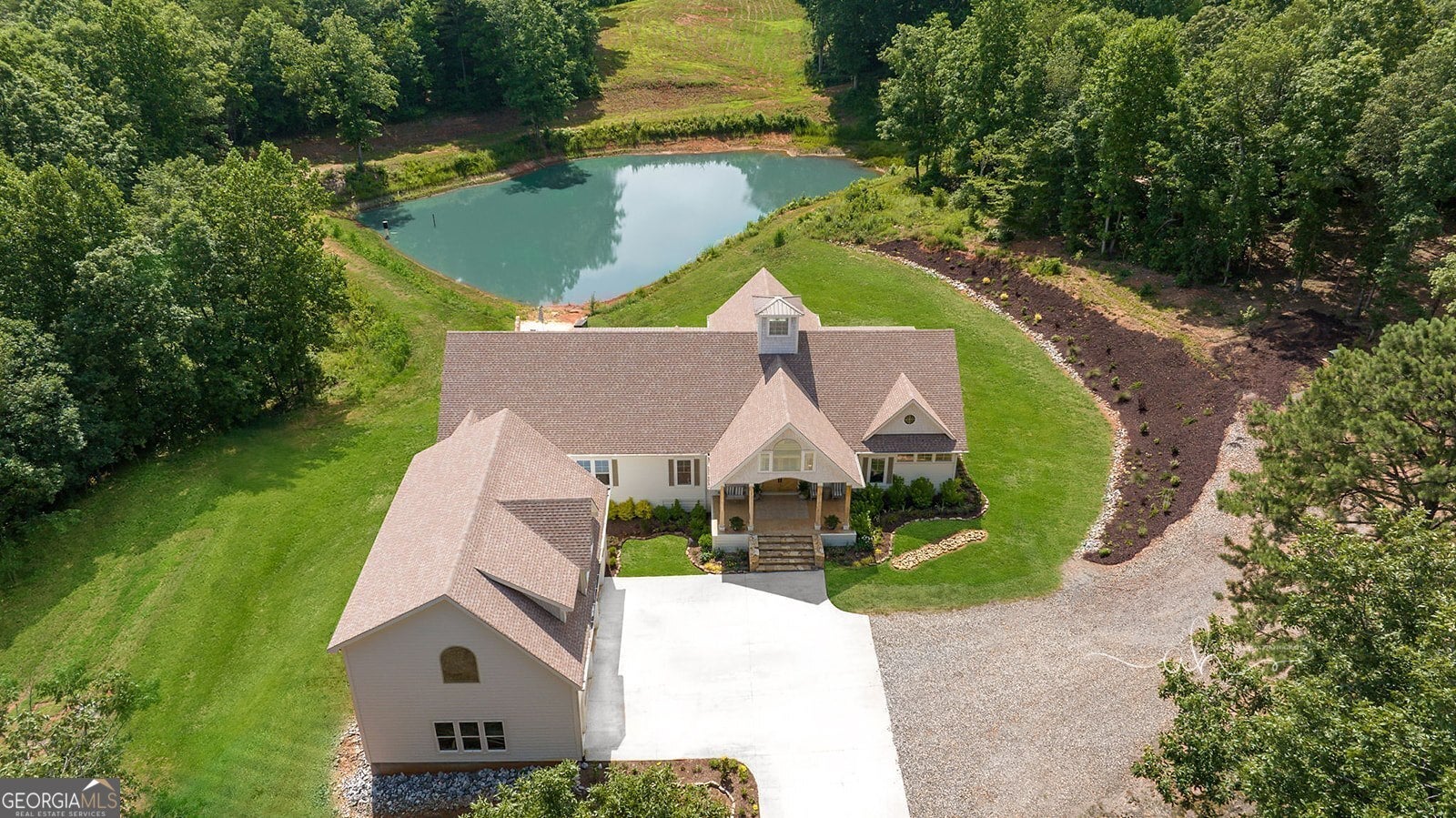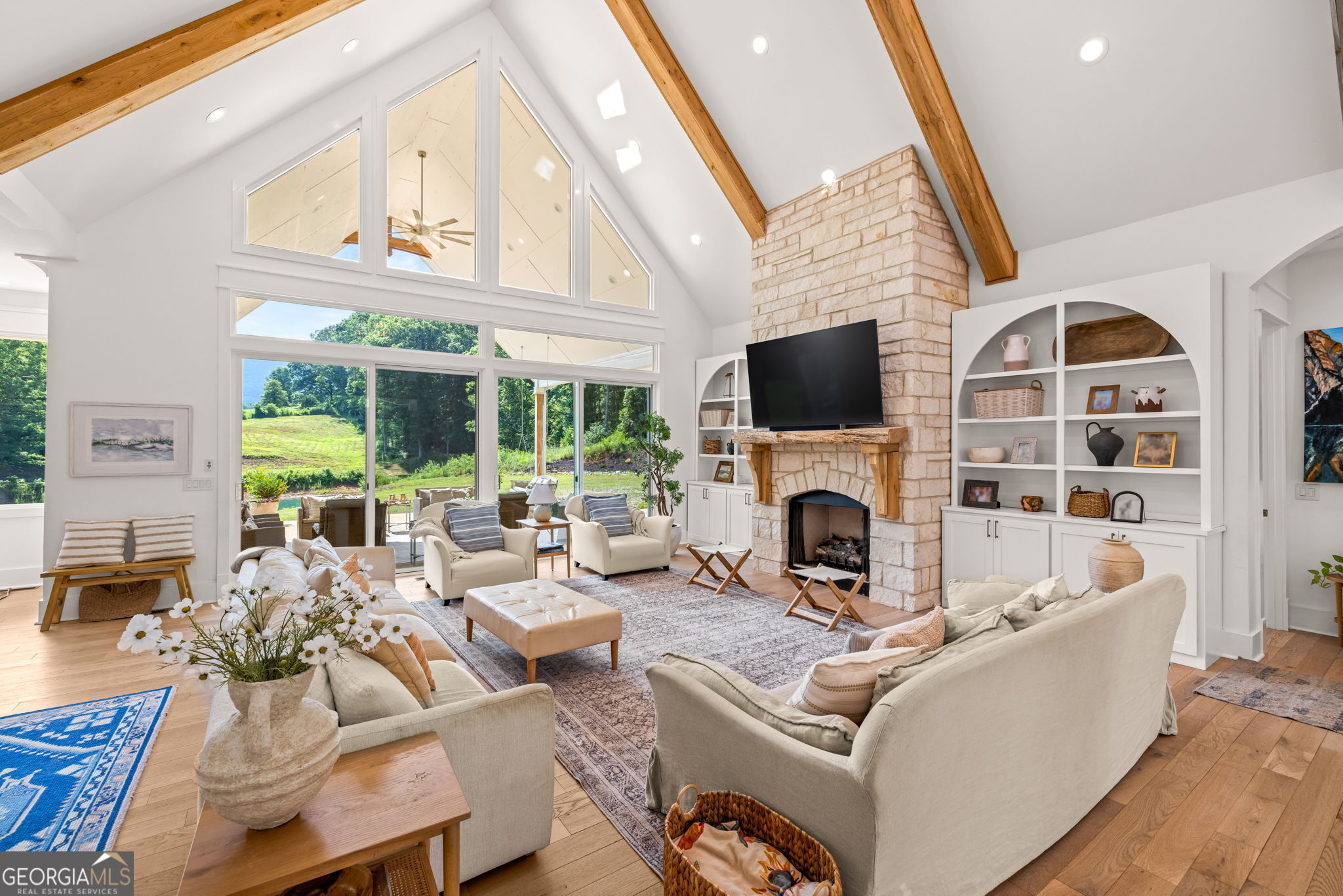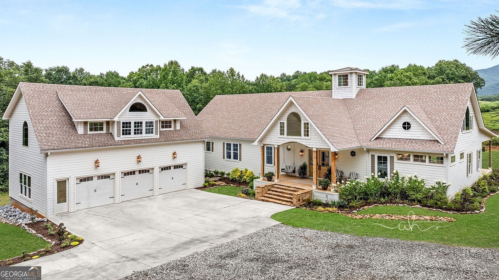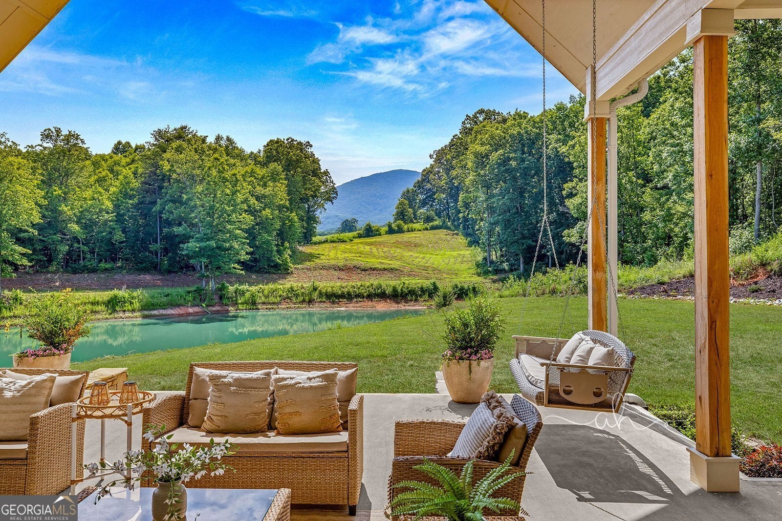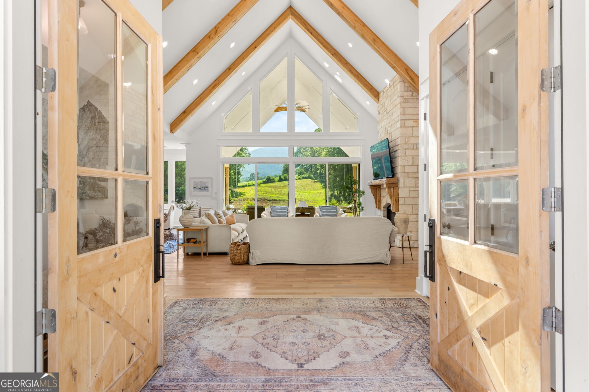 Discover a masterpiece of modern craftsmanship and natural splendor. Perched on 13.21 serene acres, this 2022 custom-built estate offers an experience of refined mountain living with staggering, uninterrupted views of Mt. Yonah from nearly every room. This is not just a home; it is a destination. Step inside to a sprawling single-level layout of 3,708 sqft, where a true open-concept design is taken to new heights. Soaring vaulted ceilings, accented by magnificent white oak beams milled from trees on the estate itself, draw the eye upward. Ten-foot ceilings and eight-foot doors create a sense of grandeur, while a real, functional cupola bathes the great room in glorious natural light. Two stately Texas limestone fireplaces provide a warm and inviting ambiance for quiet evenings or grand-scale entertaining. The luxurious primary suite is a private retreat, offering generous space, comfort, and a spa-like bath designed for ultimate relaxation. Every bedroom, along with the gourmet kitchen and main living area, is perfectly positioned to capture the majestic mountain vistas. A dedicated office provides a tranquil workspace, while the oversized laundry room adds everyday convenience. The expansive covered back porch is the perfect setting to savor your morning coffee or host gatherings against a spectacular natural backdrop. The grounds are a private paradise. Explore your own wooded walking trails, cast a line in the stocked pond, or simply relax to the soothing sounds of a year-round creek. For the hobbyist or collector, the attached 1,400 sqft 3-car garage features a vaulted bonus room with plumbing already in place for a future bathroom, offering limitless potential. An immense 24x36 crawl space with both walk-through and garage-door access provides unparalleled storage solutions. Experience absolute seclusion while remaining conveniently located just 10 minutes from the charms of Helen, Cleveland, and Clarkesville, and a mere 40 minutes from Gainesville. This property represents a rare and remarkable opportunity to own a piece of North Georgia's finest scenery, where luxury design and the tranquility of nature exist in perfect harmony.