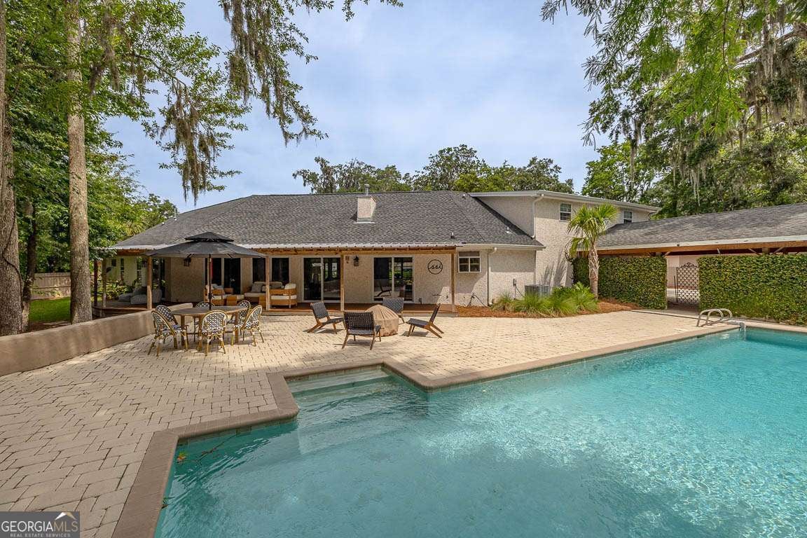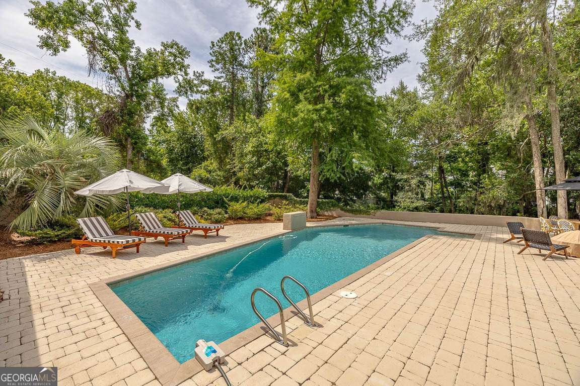 Discover your perfect retreat in this completely renovated four-bedroom, four bathroom home tucked away on a quiet cul-de-sac in the desirable Sea Palms West community. This stunning property sits on a private wooded lot, offering the perfect blend of seclusion and convenience. Upon entering, you will find an open layout with luxury vinyl plank flooring throughout the main level. The home features beautiful tongue and groove ceilings, elegant downlights, and custom Serena and Lily pendants and sconces that create warm, inviting spaces. Wood beam accents in the den and keeping room add rustic charm, while the bricked fireplace with reclaimed pine mantle serves as a focal point. The heart of the home showcases a newly designed custom kitchen with an island, custom cabinets, and stainless steel appliances. All bathrooms have been completely renovated with custom vanities and mirrors, including a fourth full bathroom in the upstairs bonus room with new carpet. Outside, you'll love the saltwater in-ground pool featuring a new filter, salt cell, and automatic refill system. Newly painted pavers, a waterfall, and surrounding wall create a resort-like atmosphere. Professional landscaping and architectural lighting enhance the property's curb appeal and evening ambiance. This home leaves nothing to be desired. Every detail has been carefully considered in this amazing renovation, from the open living spaces to the private outdoor oasis. It's move-in ready and waiting for you to call it home.