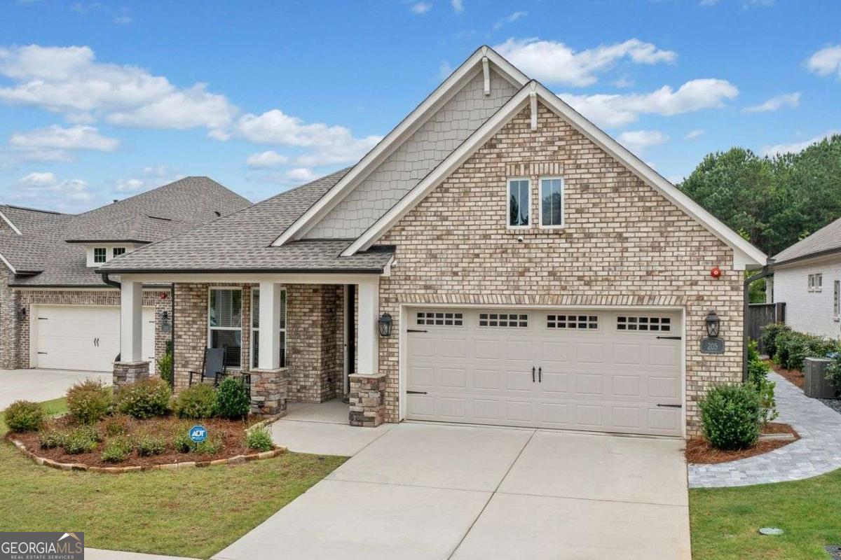 Charming craftsman ranch in gated 55+ community. Cul-de-sac lot! Beautifully maintained ranch style home in desirable gated 55+ community in Woodstock! Nestled on a quiet cul-de-sac, this home features an open-concept layout with granite kitchen overlooking the living and dining areas. The oversized primary suite includes a sitting area and luxurious bath with zero-entry frameless shower. Enjoy the dedicated office space, plus covered front and back porches - complete with a peaceful waterfall feature in the backyard. Community amenities include a clubhouse, fitness center, pickleball courts, and pool. Conveniently located near shopping, parks, I-575, and vibrant Downtown Woodstock. A must-see!
