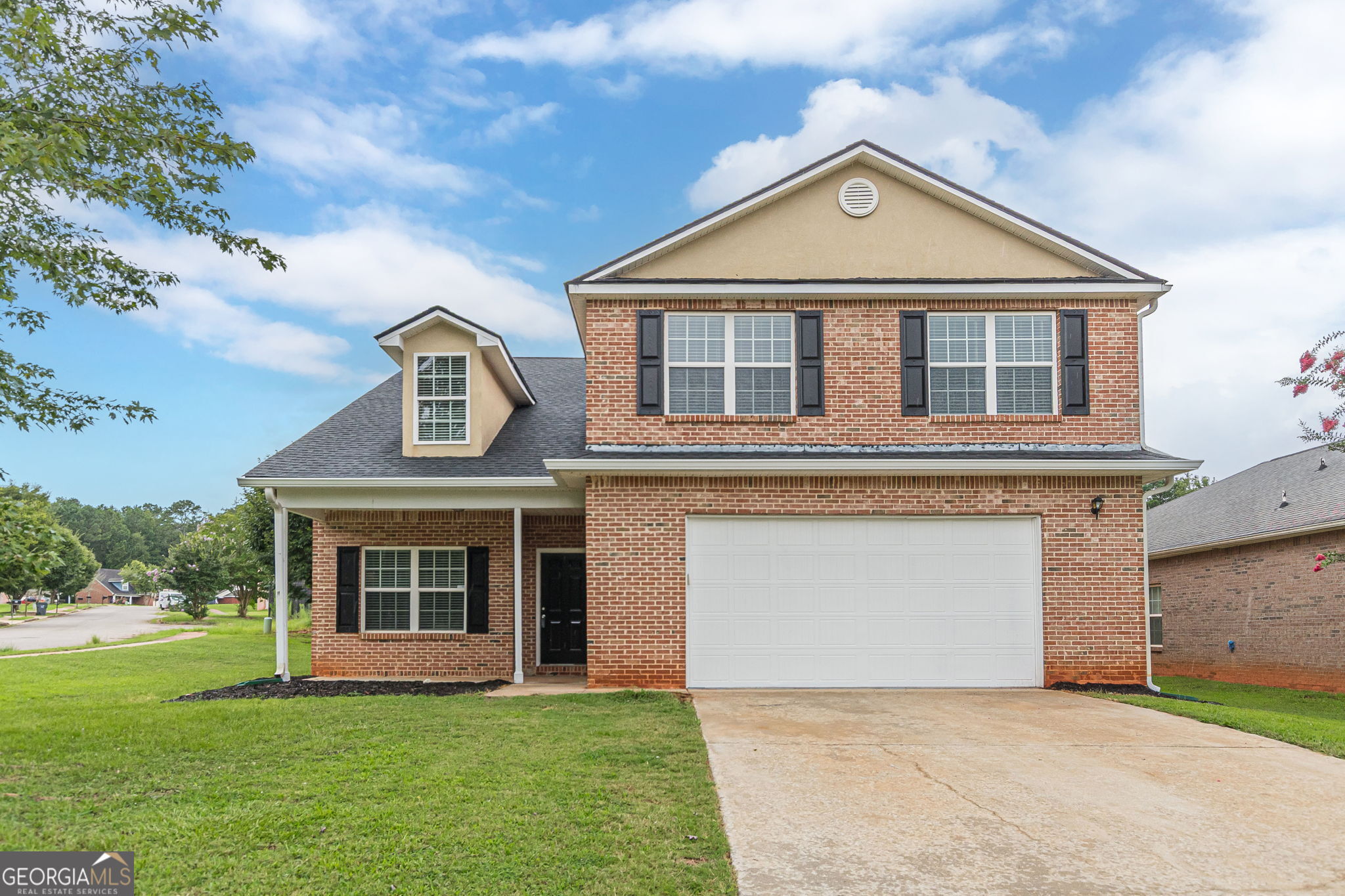 Must see home in Amber Ridge located in Locust Grove Georgia. This 5 bed, 3 bath home is well kept with neutral fixtures wall and luxury vinyl plank throughout! As soon as you enter you're greeted by formal foyer with views into the formal dining room. Dining room leads to the kitchen with white cabinets, stone counters and eat in breakfast room. Large family room off the kitchen is spacious with plenty of natural light. Full bedroom and bathroom on the main is ideal for guests or a home office. Upstairs includes large loft which could be another full living space, three bedrooms that share a full bath. Primary suite has tray ceilings, private bathroom with double vanities, walk in shower and tub along with private deck. Backyard has patio and flat and grassy yard. Four side brick exterior, two car garage and more!