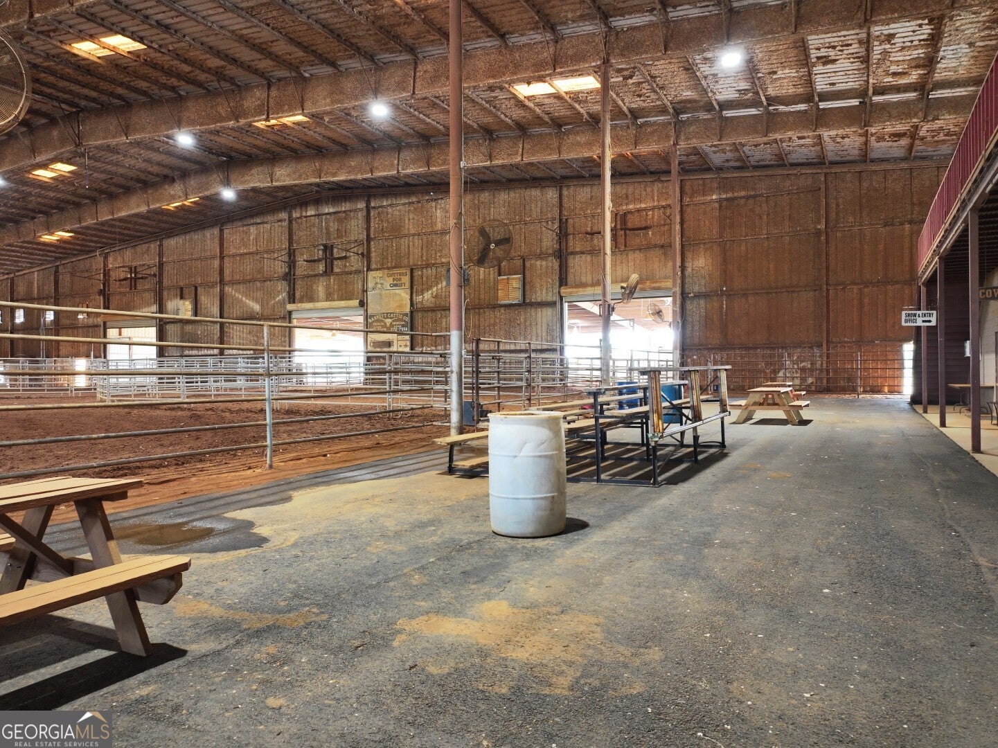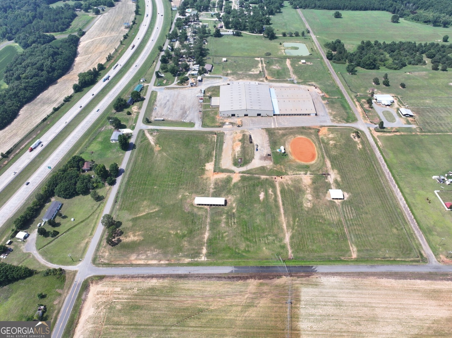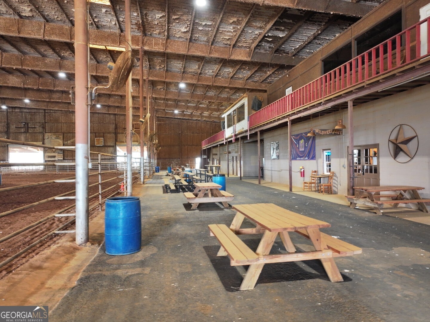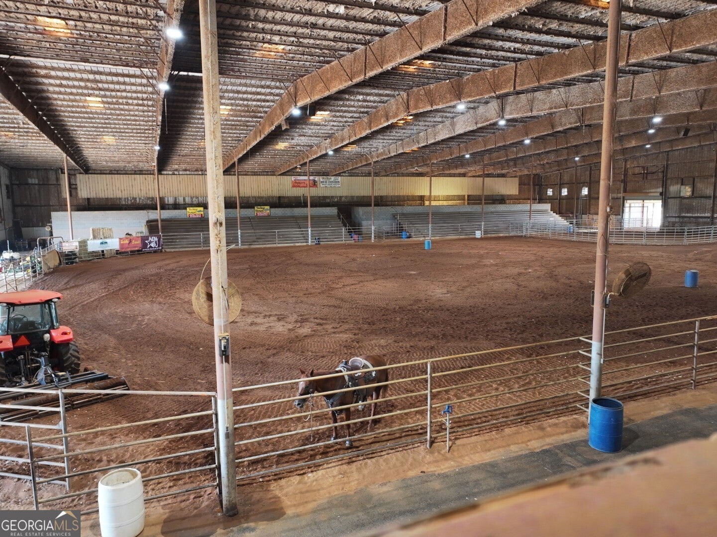 Welcome to Southeastern Arena, a premier multi-use equestrian facility ideally located just off I-75 (Exit 121) in Unadilla, Georgia. Spanning approximately 30 acres, this well-established venue features a massive 128,000 sq ft covered arena, 225 horse stalls, 70 RV hookups, and multiple income-producing improvements. Additional highlights include a 70' x 150' covered warm-up arena, outdoor pen, four rentable apartments, a 4,000 sq ft interior space ideal for expansion, a full-service cafe with commercial kitchen, public restrooms and showers, announcer's booth, paved parking, and open event areas. A well kept managers home is also included on site. Perfectly suited for equine events, trade shows, and other large gatherings-this turnkey property offers exceptional visibility and accessibility in central Georgia.