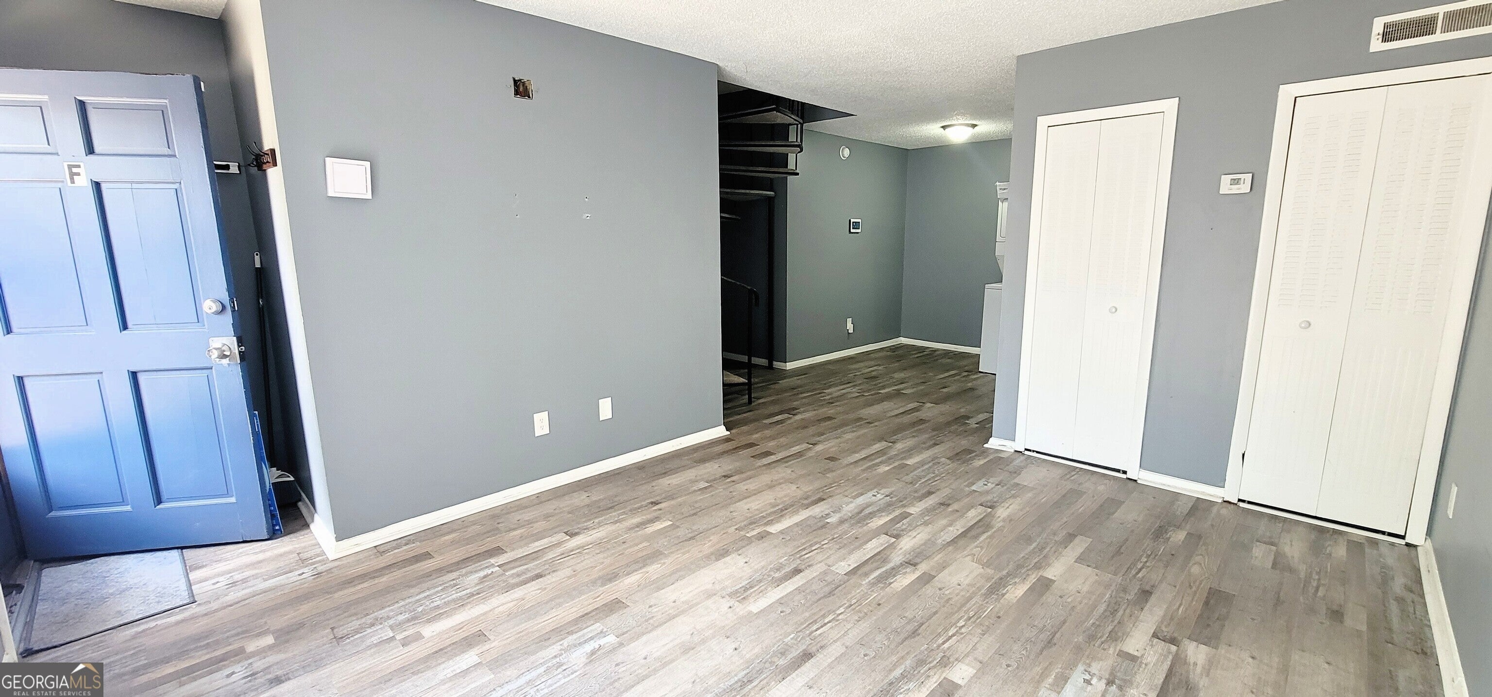 Discover this charming 1-bedroom, 1-bathroom home that combines comfort, character, and convenience. The open-concept layout welcomes you with an updated kitchen and gleaming hardwood floors on the main level. A unique spiral staircase leads to the spacious upstairs bedroom, featuring a walk-in closet and a full bath. Enjoy your own private patio, perfect for morning coffee or evening gatherings. Conveniently located just minutes from shopping and Highway 85, this home keeps you close to everything you need.