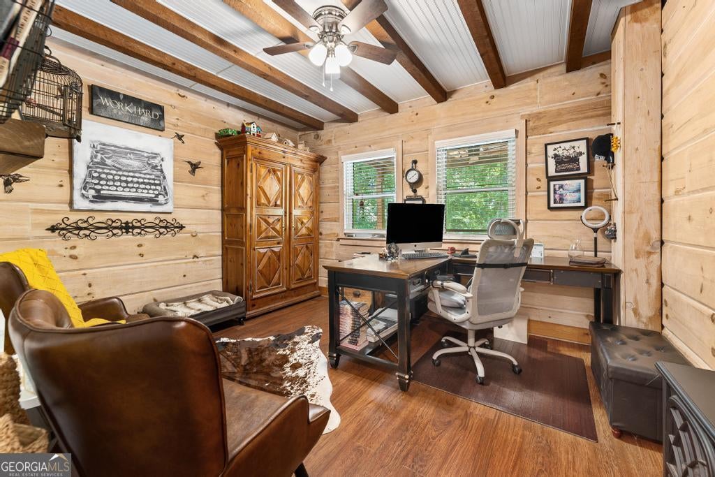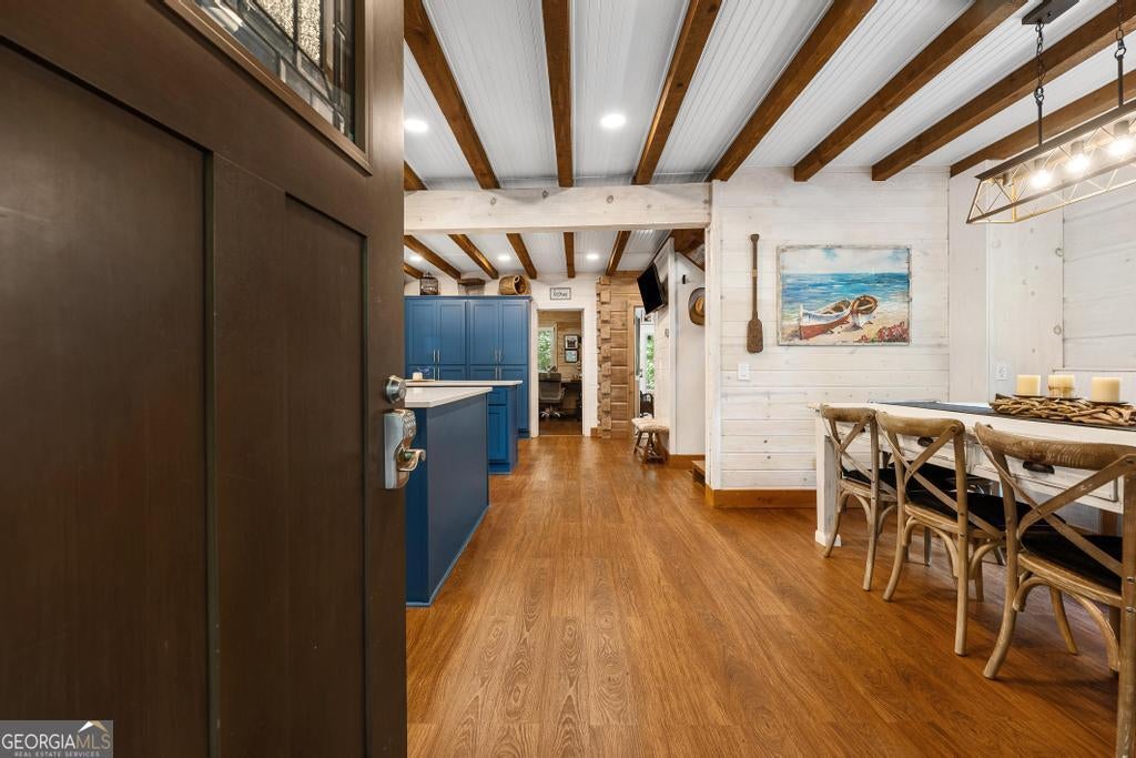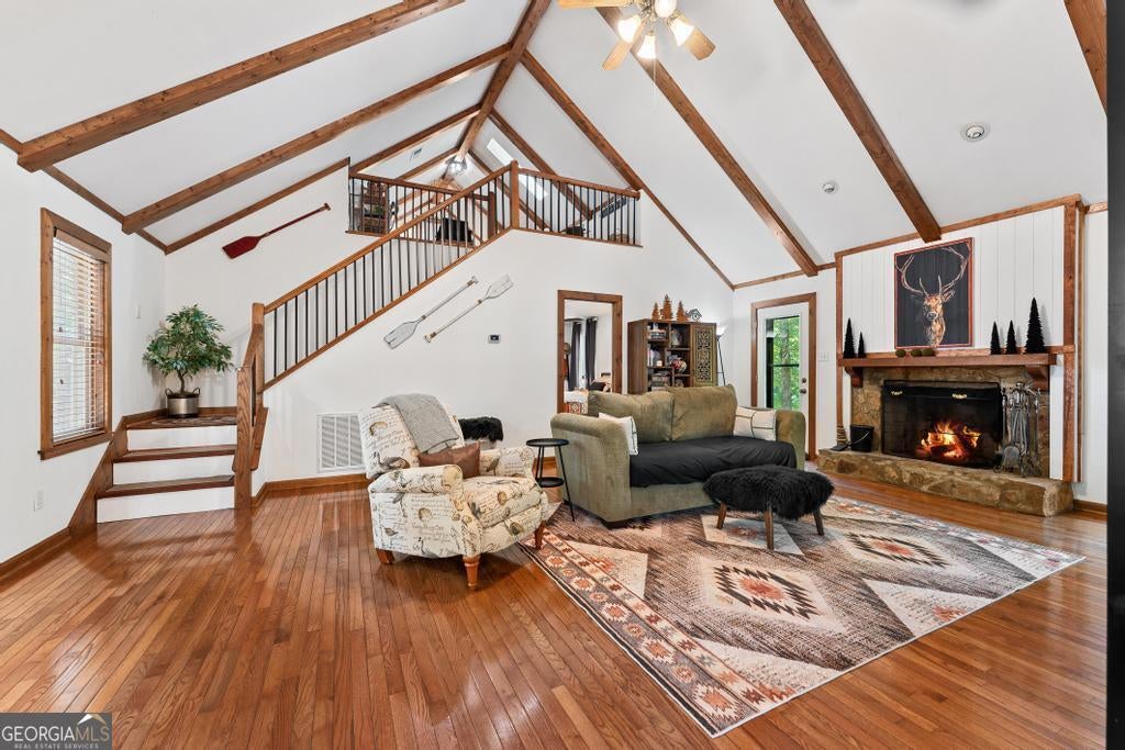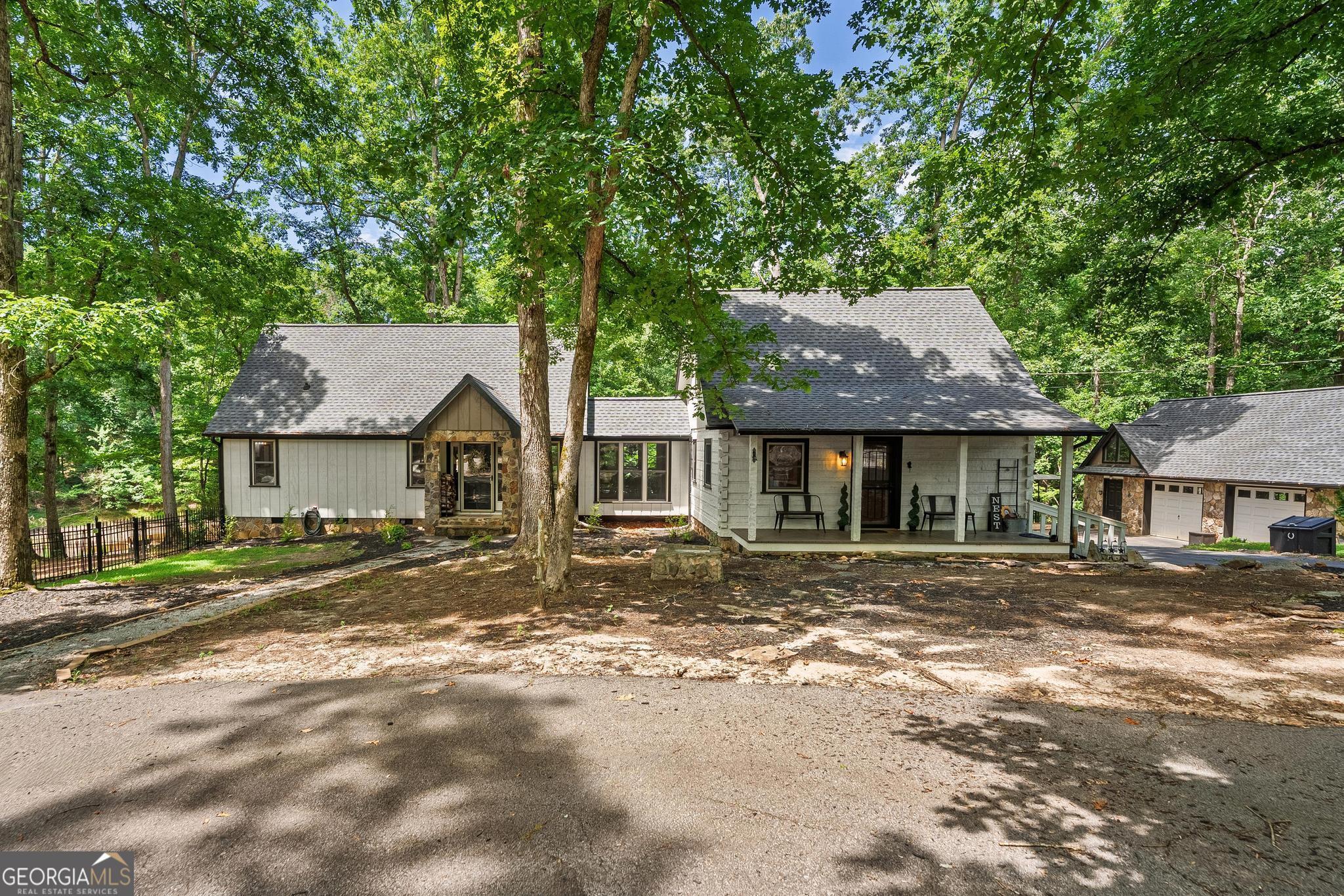 Must see this Charming Log Cabin with Acreage, Peaceful Pond Views, and Lake Access. Nestled on 18.712 acres in the scenic Paynes Creek area of Hartwell, this rustic home was originally built in 1989 as a log cabin weekend getaway. Over the years, it has been thoughtfully expanded and renovated, blending rustic charm with modern comforts. The original one-bedroom log cabin side has been transformed into a chef's delight kitchen, perfect for culinary enthusiasts or large family meals. This side also includes a cozy bedroom, a sunroom that invites in natural light, and a well-appointed bathroom. The upper floor features two additional bedrooms, providing ample space for family and guests. In 1998, the cabin was expanded with a two-story annex, which boasts a spacious living room with vaulted ceilings, hardwood floors, and a stunning stone fireplace. A loft area that sleeps two more overlooks the living space, and the master suite features a walk-in closet and a recently renovated private bath for a true retreat. The two sections of the home are connected by a glassed-in breezeway, and both wings offer front porches. The back of the property features a serene pond, shared with the adjacent landowner, creating a peaceful backdrop and offering wonderful wildlife views from your own back porch. See deer, turtles, herons, and more daily from your back porch, or walk down to the cove for the ultimate fishing honey pot! Use the trails in your woods for hiking or ATV fun! Launch your canoe or kayaks from your access to a private beach lake lagoon, or put a boat in just half a mile away at the Paynes Creek Boat Ramp. A marina with rental slips is only a short distance away! Properties like this one don't come around often. With its peaceful setting, spacious layout, and beautiful surroundings, this home offers the perfect blend of tranquility and convenience for year-round living or a serene weekend escape. Lake Lot is red zone and not Dockable. High Speed Fiber optic internet has been installed at the property Nov 2025. Don't let this unique property slip away- call agent today!