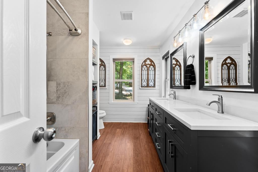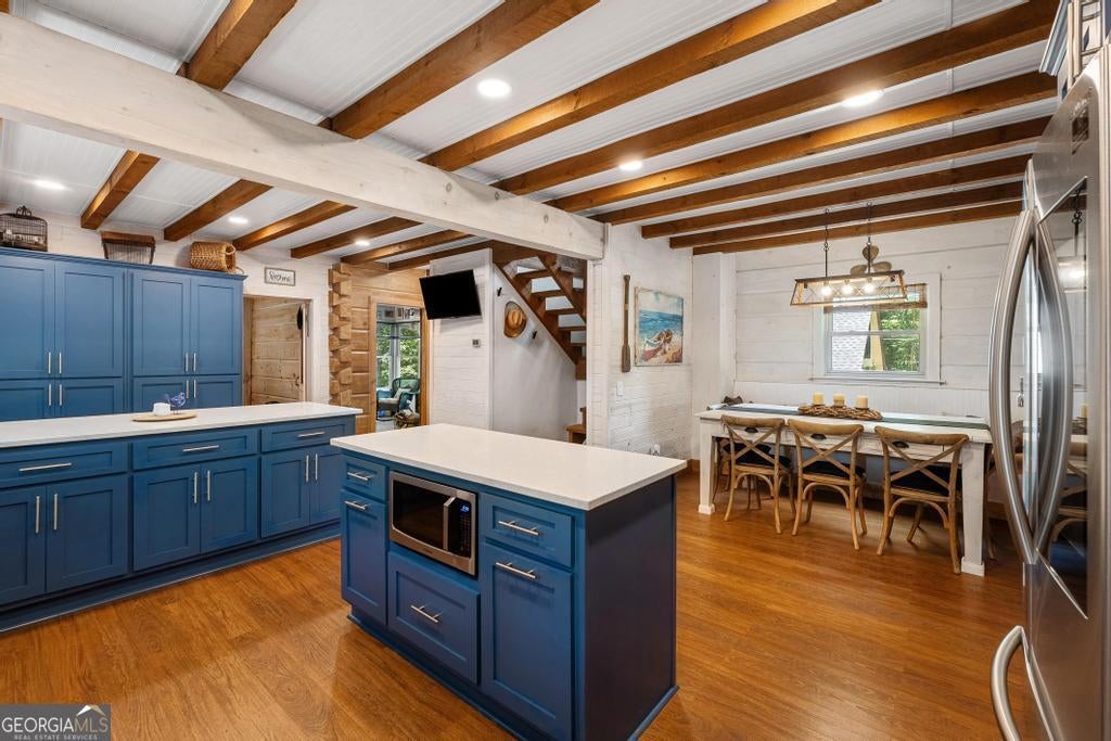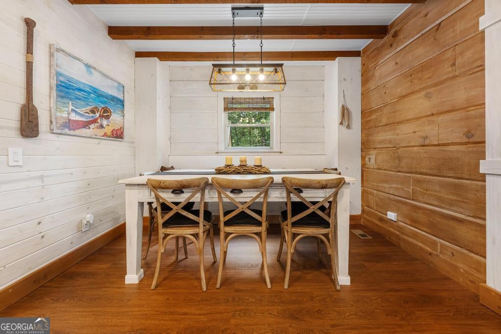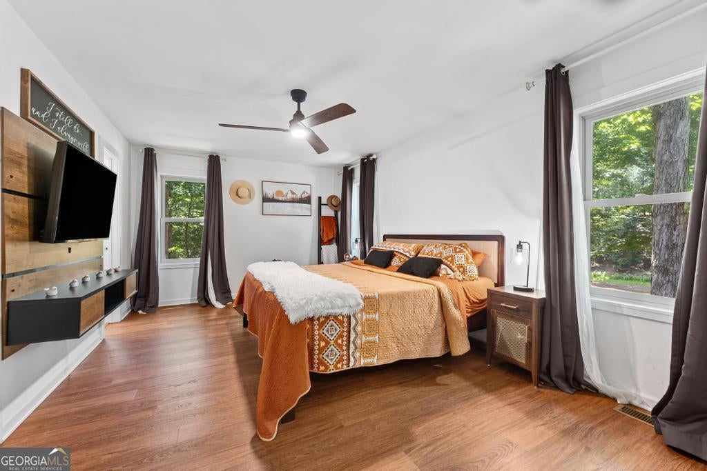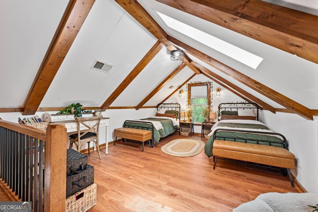 Must see this Charming Log Cabin with Acreage, Peaceful Pond Views, and Lake Access. Nestled on 18.712 acres in the scenic Paynes Creek area of Hartwell, this rustic home was originally built in 1989 as a log cabin weekend getaway. Over the years, it has been thoughtfully expanded and renovated, blending rustic charm with modern comforts. The original one-bedroom log cabin side has been transformed into a chef's delight kitchen, perfect for culinary enthusiasts or large family meals. This side also includes a cozy bedroom, a sunroom that invites in natural light, and a well-appointed bathroom. The upper floor features two additional bedrooms, providing ample space for family and guests. In 1998, the cabin was expanded with a two-story annex, which boasts a spacious living room with vaulted ceilings, hardwood floors, and a stunning stone fireplace. A loft area that sleeps two more overlooks the living space, and the master suite features a walk-in closet and a recently renovated private bath for a true retreat. The two sections of the home are connected by a glassed-in breezeway, and both wings offer front porches. The back of the property features a serene pond, shared with the adjacent landowner, creating a peaceful backdrop and offering wonderful wildlife views from your own back porch. See deer, turtles, herons, and more daily from your back porch, or walk down to the cove for the ultimate fishing honey pot! Use the trails in your woods for hiking or ATV fun! Launch your canoe or kayaks from your access to a private beach lake lagoon, or put a boat in just half a mile away at the Paynes Creek Boat Ramp. A marina with rental slips is only a short distance away! Properties like this one don't come around often. With its peaceful setting, spacious layout, and beautiful surroundings, this home offers the perfect blend of tranquility and convenience for year-round living or a serene weekend escape. Lake Lot is red zone and not Dockable. High Speed Fiber optic internet has been installed at the property Nov 2025. Don't let this unique property slip away- call agent today!
