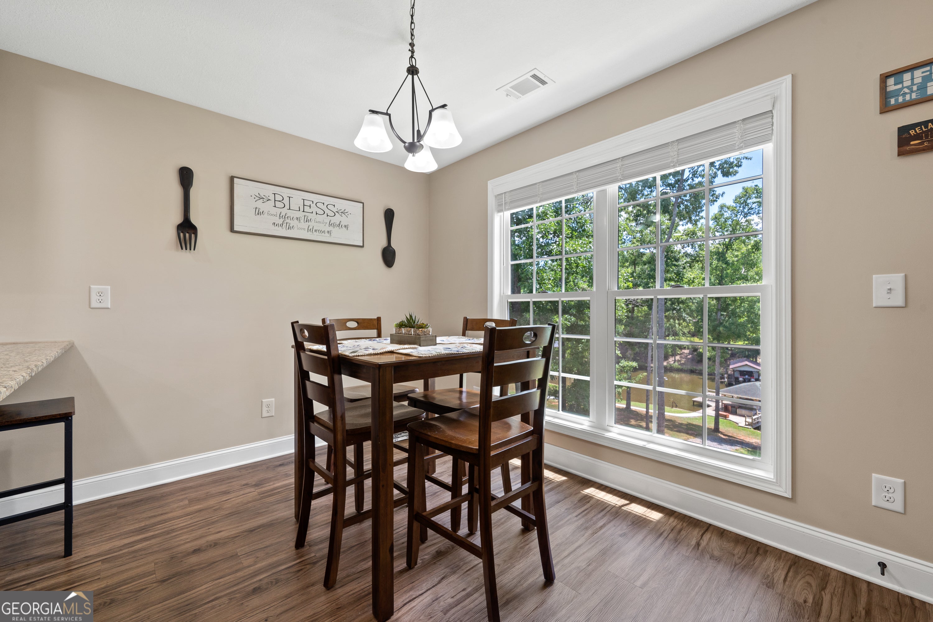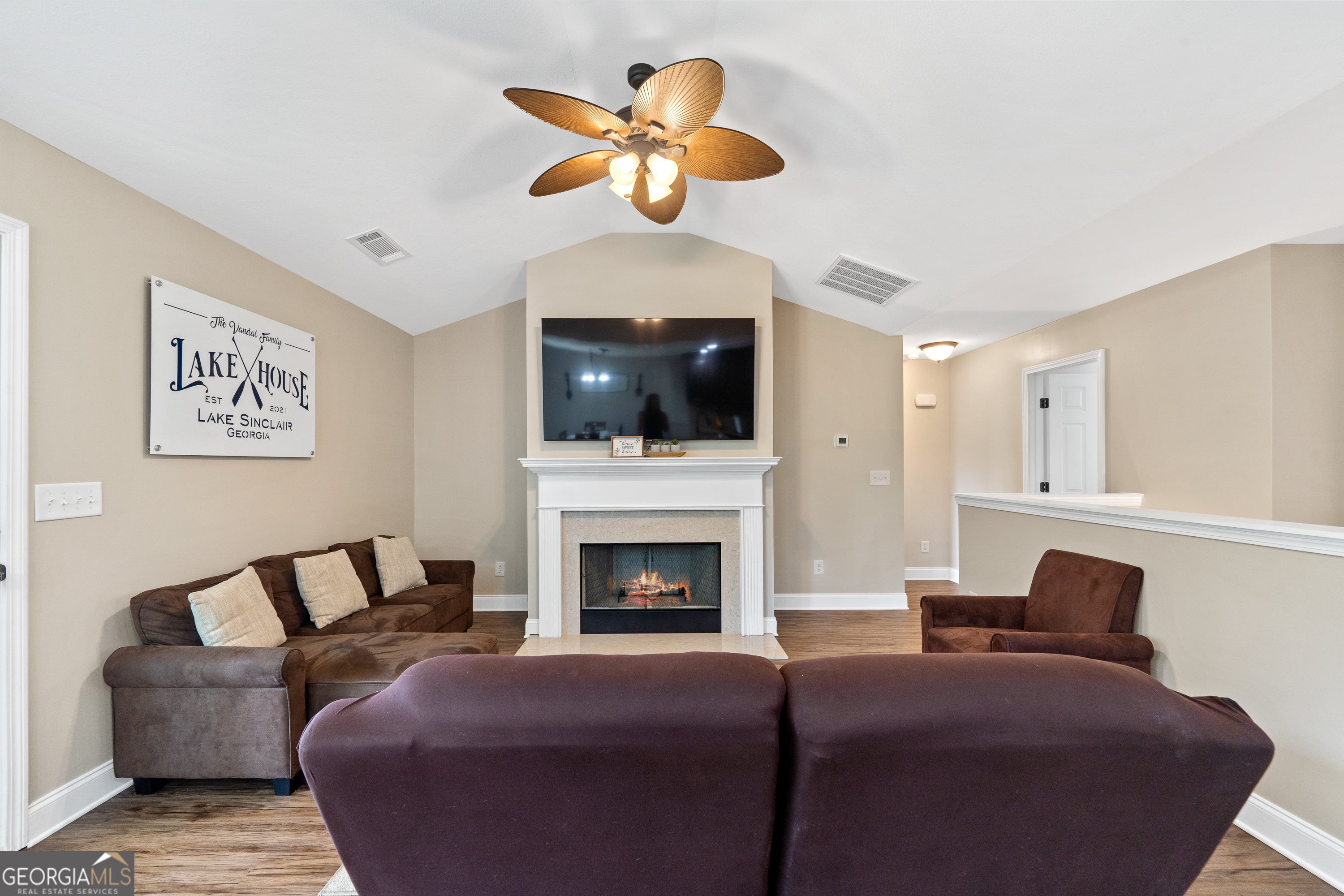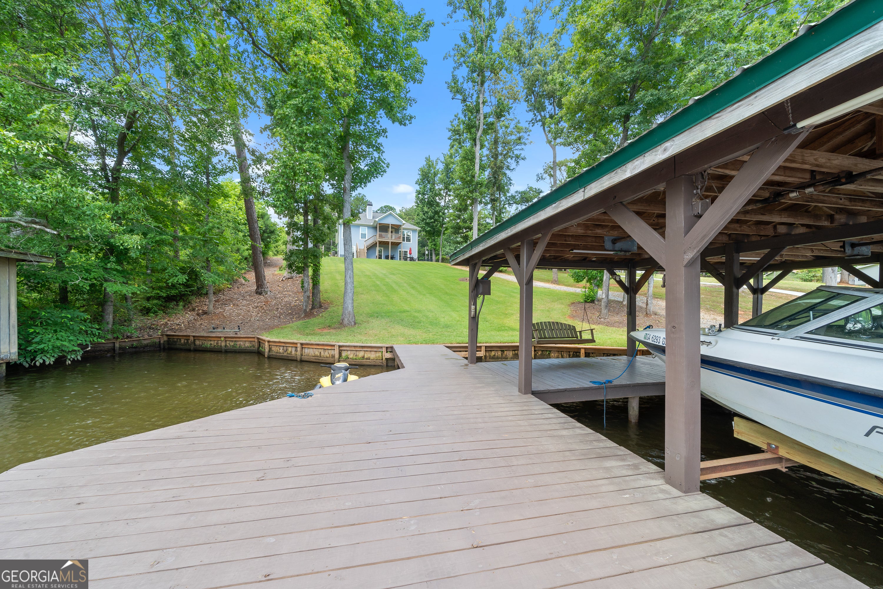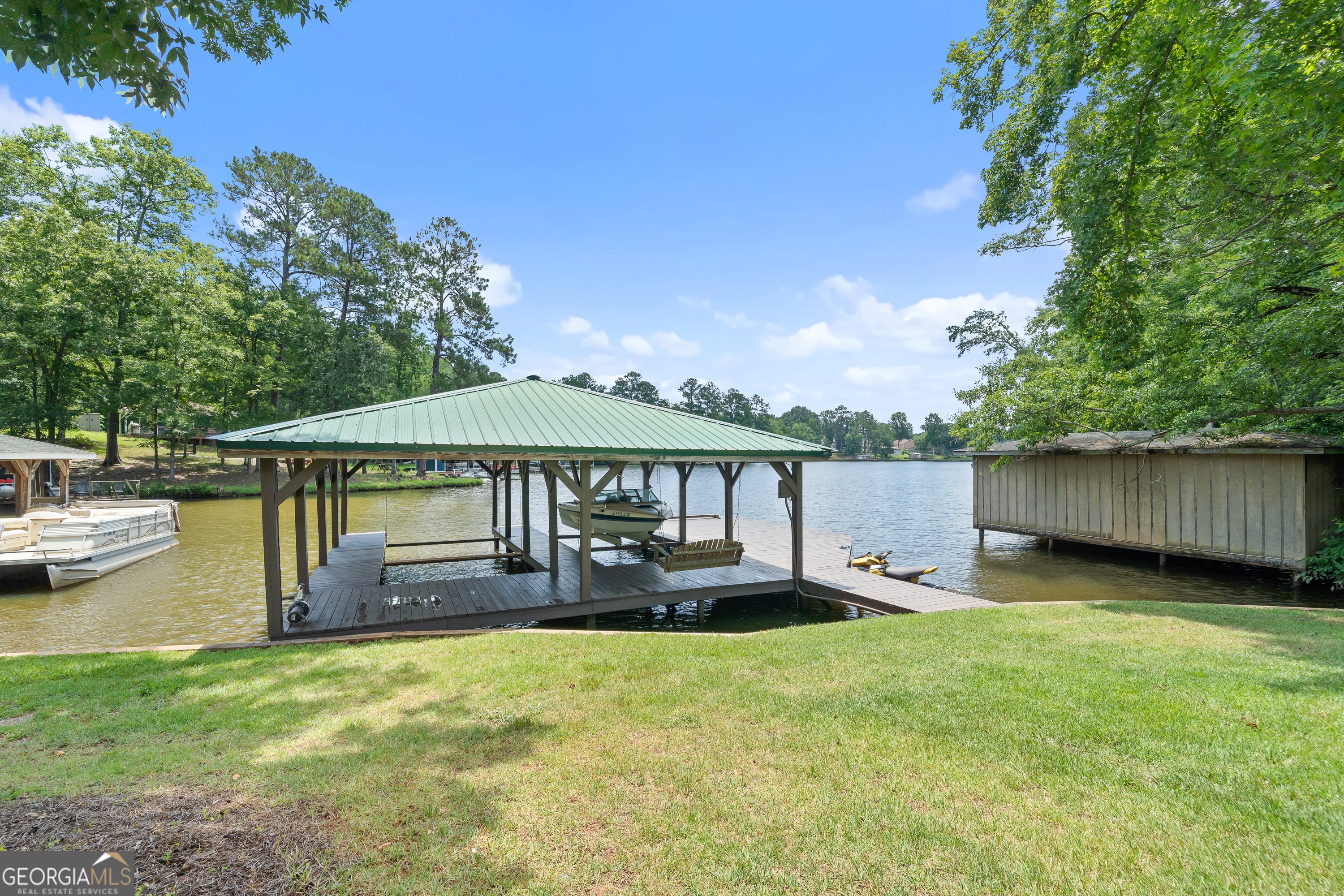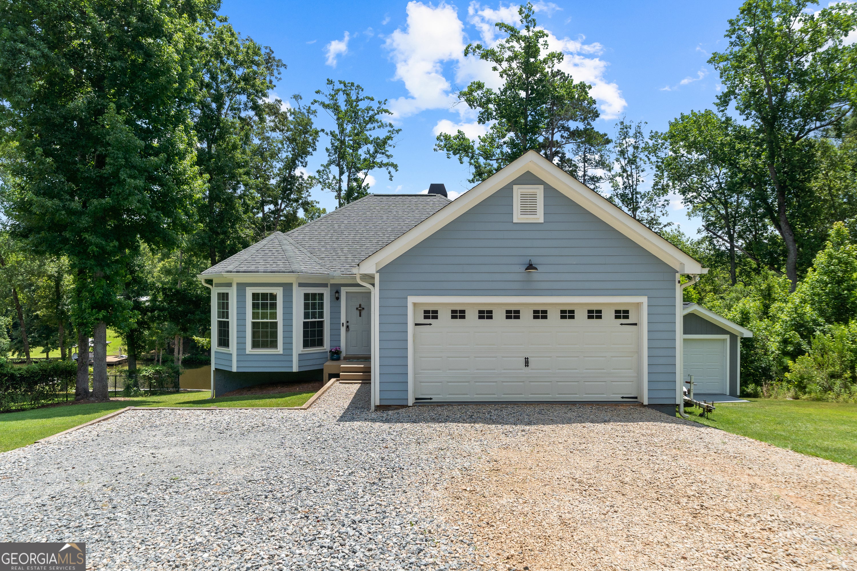 *Motivated Sellers* Welcome to this newly built home, situated on a quiet street, overlooking a serene cove on Lake Sinclair, and minutes from Twin Bridges Marina. Built in 2020, this home features a daylight basement, Max Dock, a 12x25 stick-built workshop, 50-year architectural shingles, and 5 feet of deep water with great fishing at the dock. Plenty of room to relax and enjoy your gently sloped yard, or sit and relax on your 10x12 covered back deck overlooking the water. The interior of the home is immaculate, with freshly painted walls throughout. The primary bedroom is located on the main floor with a walk-in closet and bathroom. Two bedrooms are located in the daylight basement, which has another 447 square feet of unfinished potential. Sellers are willing to negotiate all furnishings throughout the house! Home is priced $75k below appraised value! Do not miss out on your chance to own some prime real estate on Lake Sinclair!
