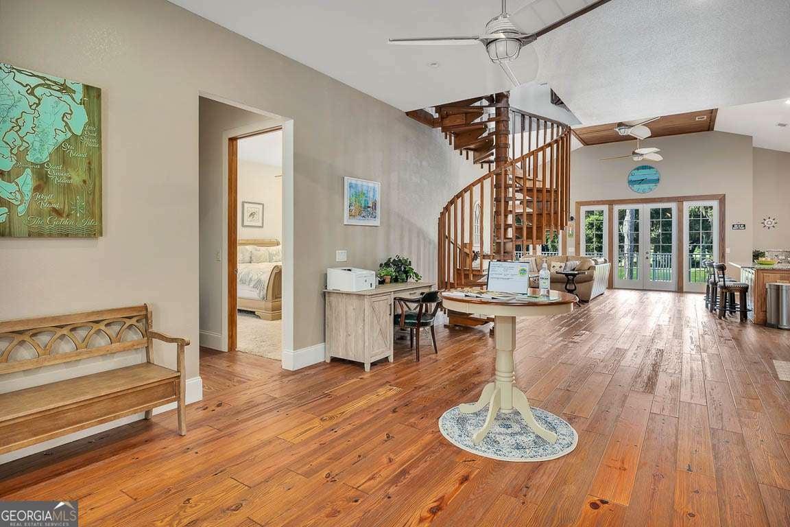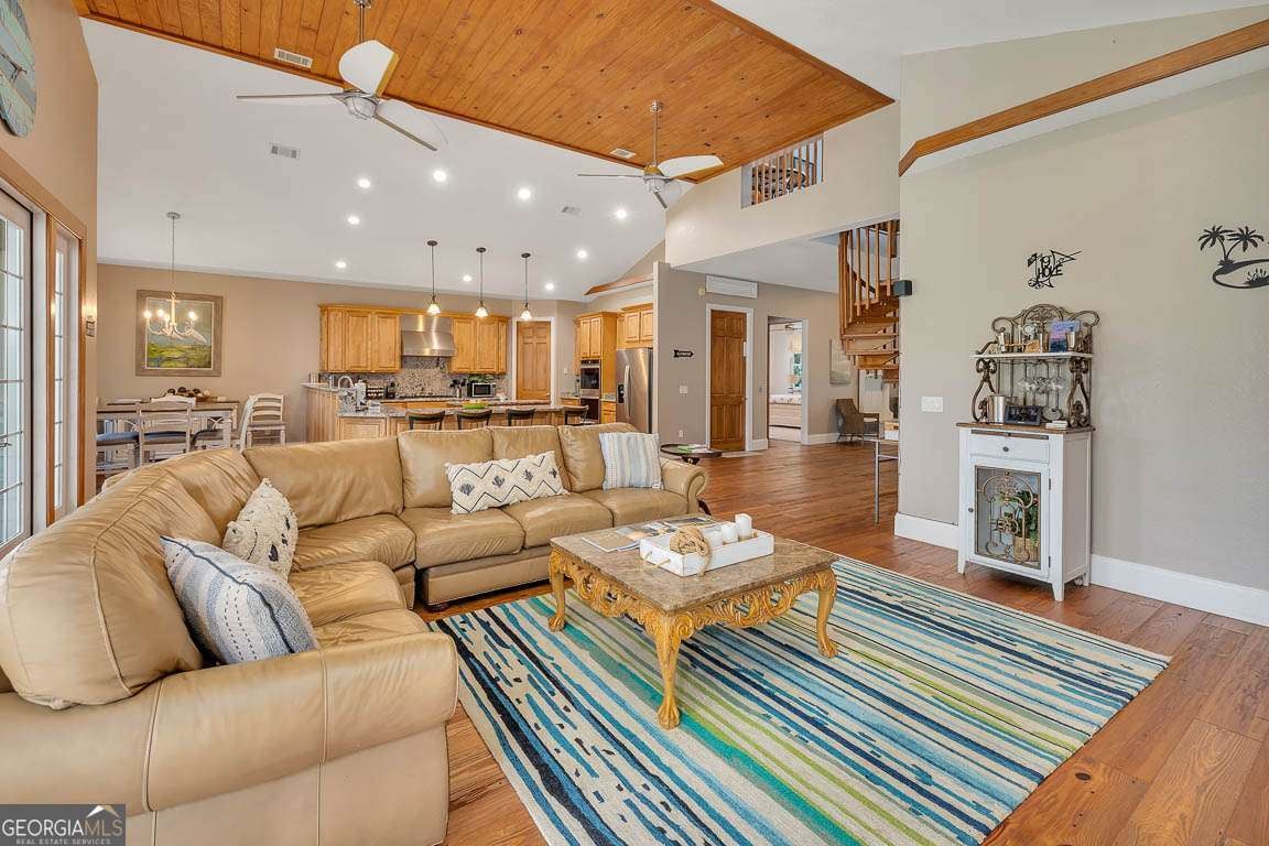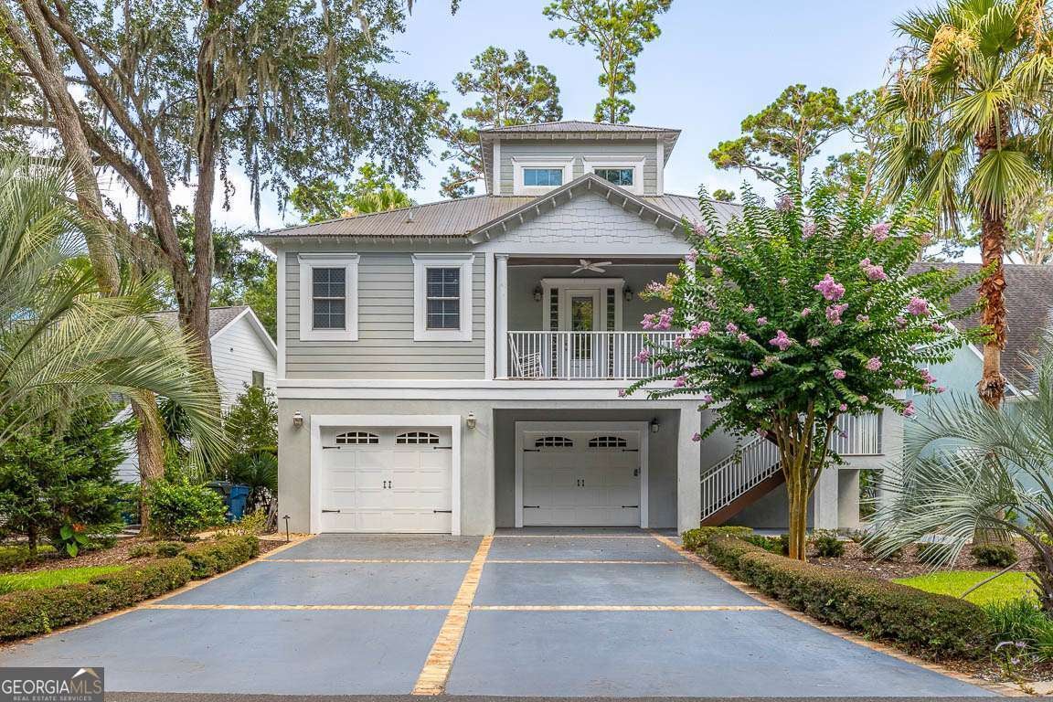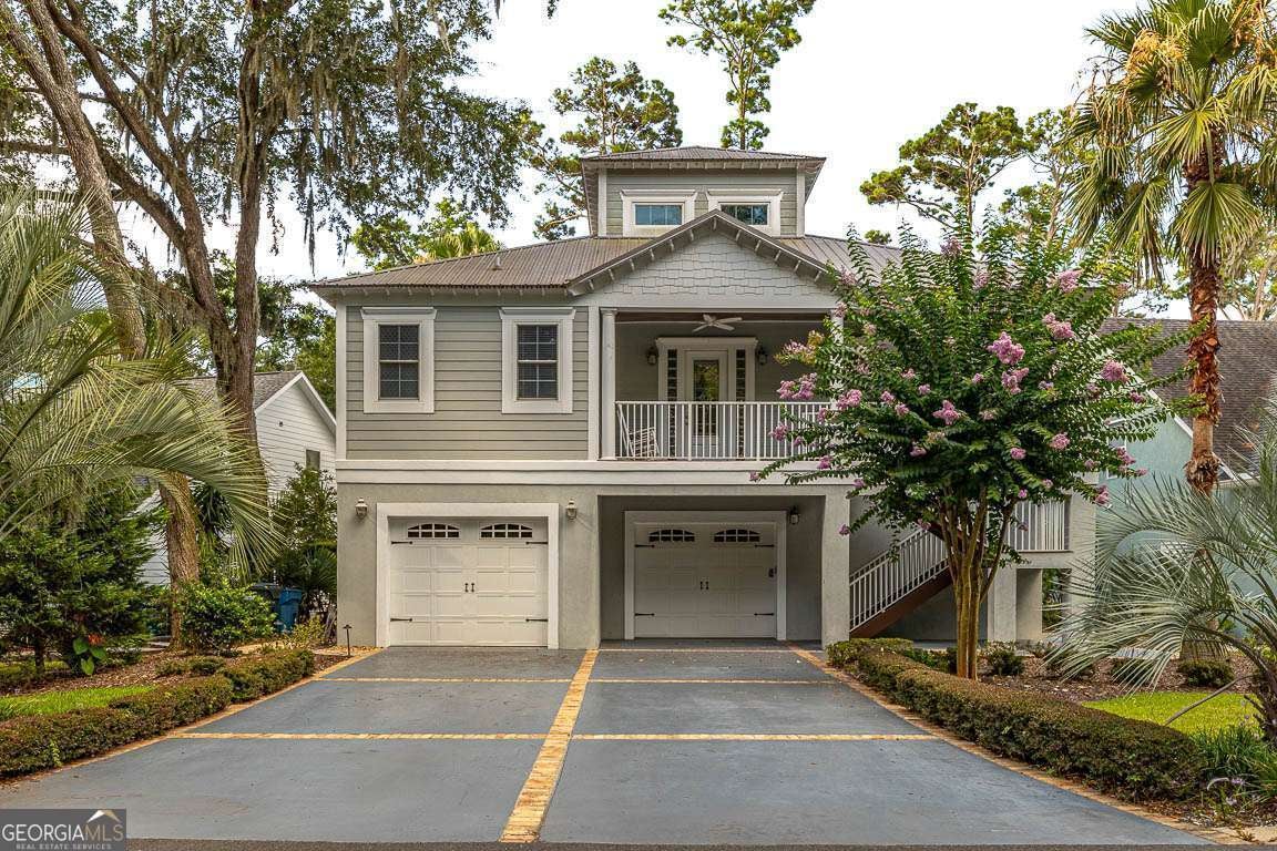 This custom-designed dream home offers the perfect blend of elegance, comfort, and functionality. Featuring 3 spacious bedrooms and 3.5 baths, the home boasts beautiful hardwood floors throughout the main living areas, adding warmth and sophistication. The chef's kitchen is outfitted with premium granite countertops, European maple cabinetry, and stainless-steel appliances-including a separate gas cooktop. A generous prep island, breakfast bar, breakfast area, and walk-in pantry complete the ideal kitchen layout. The inviting living area includes a wood-burning brick fireplace and expansive glass windows that provide serene views of the 7th hole of the King and Prince Golf Course. A custom spiral staircase leads to a loft/flex space, offering endless possibilities for a home office, library, or additional bedroom. The luxurious primary bathroom features a classic claw-foot tub, large walk-in showers, and custom cabinetry for a spa-like experience. Downstairs, the massive garage provides ample parking and houses a game room, while a full bedroom and bath on the lower level create the perfect private guest suite. An elevator services all levels of the home for added convenience. Outdoor living is elevated with multiple balconies overlooking the golf course, Hardiplank siding for durability, low-maintenance aluminum railings, and a metal roof that combines style with longevity.