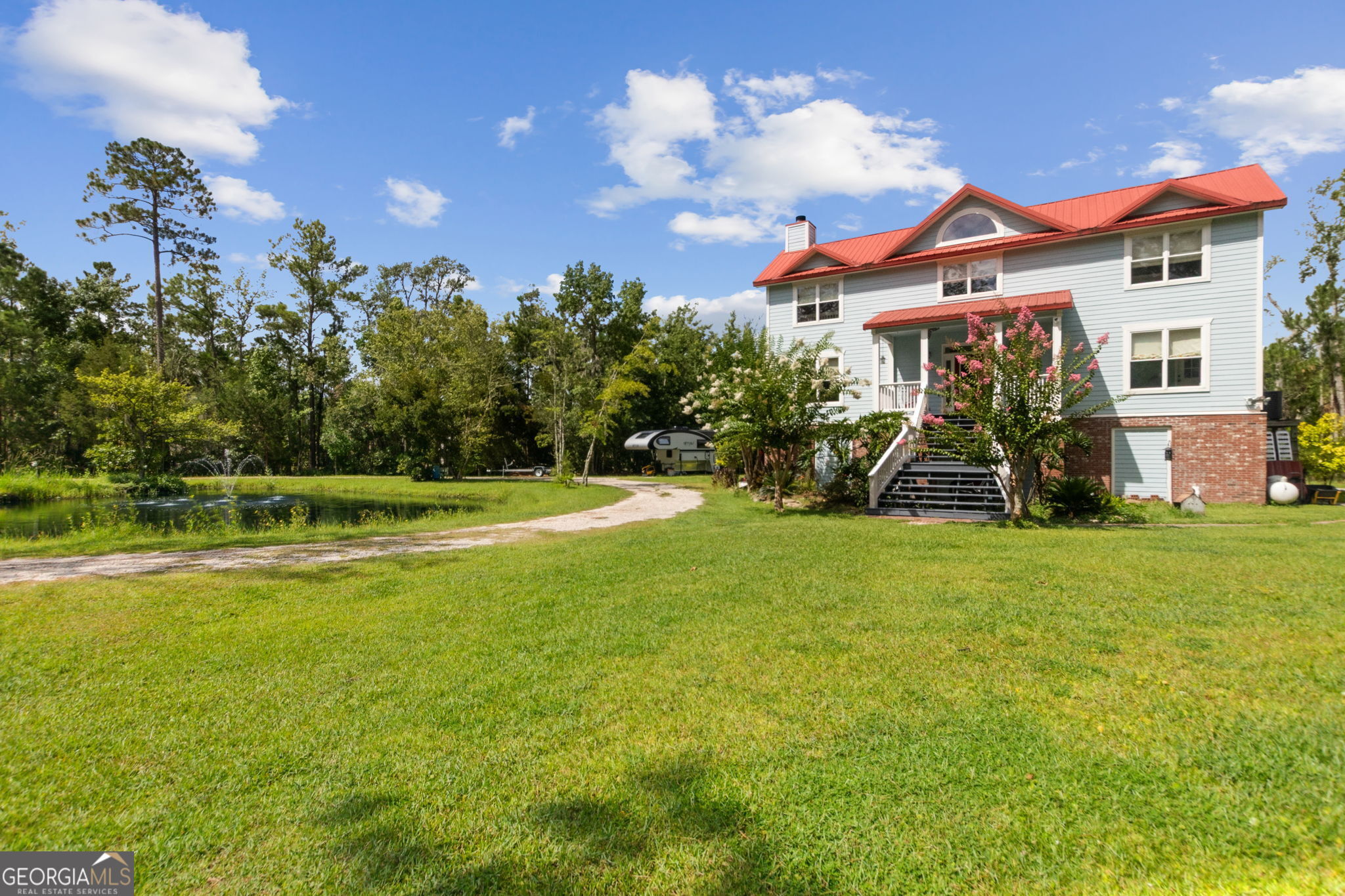 Marsh views, luxurious vibes - your coastal dream home awaits! Tucked behind the gates of the sought-after Misty Harbor community, this three-story stunner sits on 2.5 acres of private, marshy paradise-and yes, it comes with its own dock slip for your boat (or future boat dreams). Inside, it's all about easy coastal elegance. The main-level primary suite is a retreat in itself, with an en suite that's ready for long soaks and lazy mornings. Separate soaking tub, tiled shower, and double vanities make life easier. Upstairs, three more bedrooms and a wrap-around loft area offer room to spread out, lounge around, or host all your favorite people. The kitchen is a total showstopper! Think granite countertops, a breakfast bar made for pancake mornings, a center island perfect for charcuterie spreads, and custom cabinetry with personality. Oversized windows flood the space with natural light, while the fully enclosed Florida room and marsh-view deck give you front-row seats to nature's best backdrop. This home even has its own private pond with a fountain! Even cooler, this home has an RV hookup with 50amp power. All this, just a short stroll from the community pool, boat amenities, and the kind of coastal charm you only find in Misty Harbor. Whether you're entertaining, relaxing, or plotting your next sunset cruise, this coastal gem brings the luxury-and the fun.