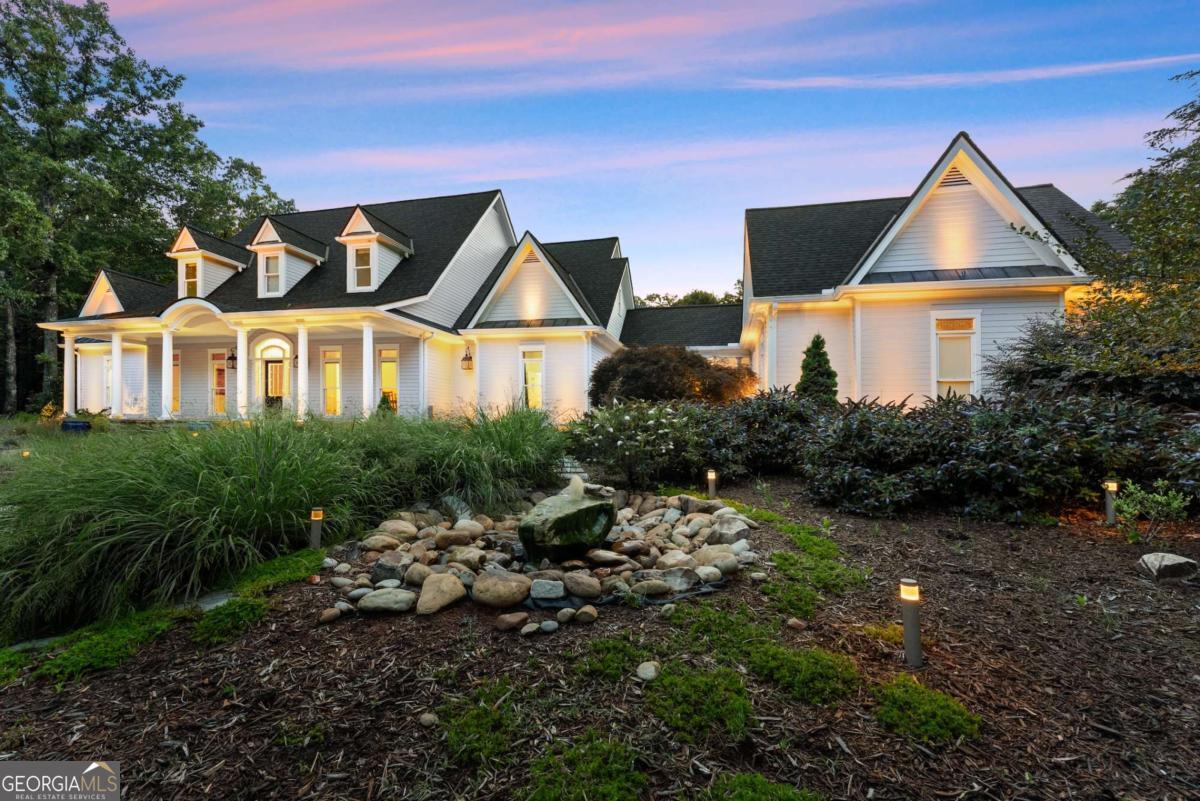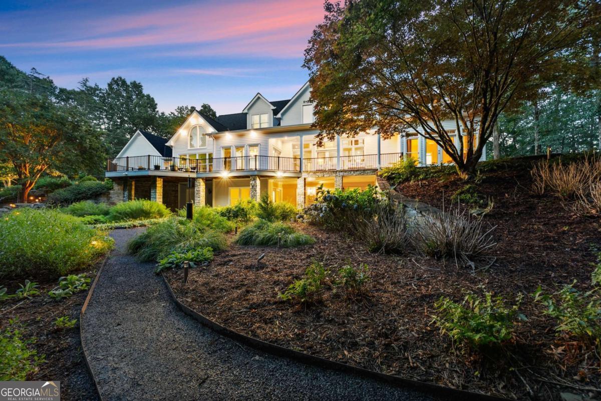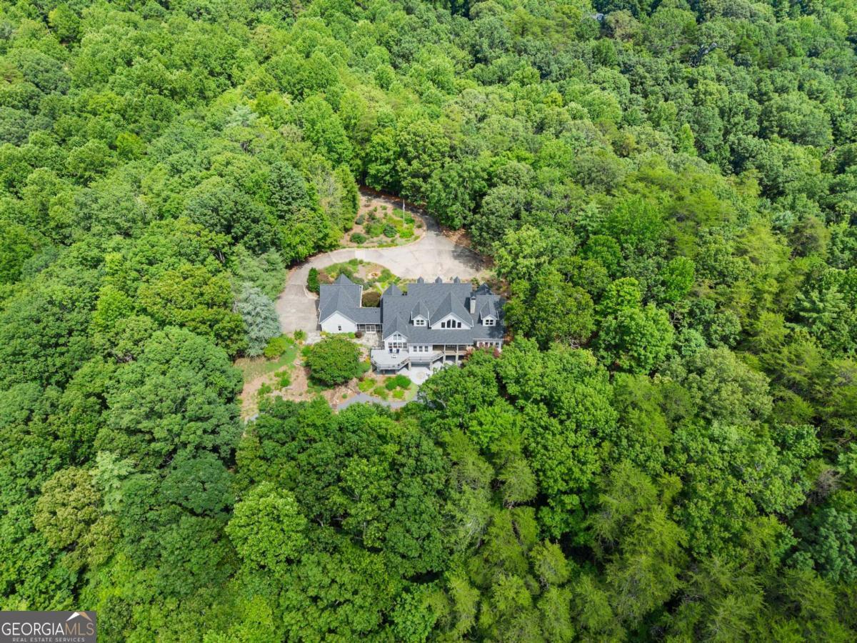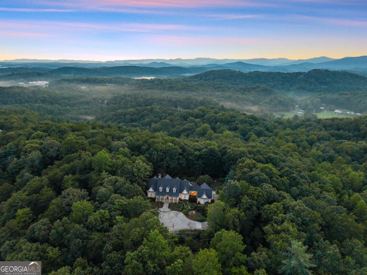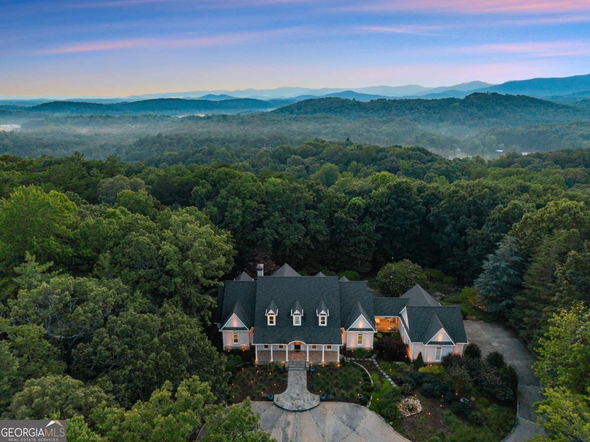 Perched on over 14 stunning acres, this breathtaking estate blends timeless elegance with unmatched tranquility in the heart of Dahlonega. Welcome to 77 Old River Road-a refined mountain retreat offering stunning views, total privacy, and a lifestyle of peace and sophistication. As you arrive, the stately driveway winds through professionally designed landscaping and leads to a grand Southern-style residence that captures the essence of North Georgia mountain living. Inside, the main level unfolds with warmth and elegance-featuring an open-concept layout, hardwood floors, soaring ceilings, and designer lighting. The expansive primary wing on the main floor includes a private fireplace, a newly updated spa-like bathroom, and access to a private deck with postcard-worthy views of the backyard oasis. A secondary ensuite bedroom, formal library/office, welcoming living room with fireplace, and gourmet kitchen with a breakfast nook and keeping room provide space for both relaxing and entertaining. Step out to the screened porch or enjoy the tranquil koi pond below-this is serenity redefined. Upstairs, discover a second luxurious primary suite, with custom cabinetry, additional guest bedrooms with flexible space for hobbies or work, and a cozy bonus room that could function as another office, or movie theater. Downstairs, the fully finished terrace level is an entertainer's dream, second family room, bonus space perfect for a theater, gym, or game room, and walk-out access to the outdoors. Outdoors, custom-crafted railings line peaceful walking paths, and multiple porches and decks invite gatherings under the stars. The estate includes ample parking with the three car garage and no HOA restrictions-offering freedom and comfort, just minutes from Downtown Dahlonega. Recently renovated with high-end finishes and featuring dual primary suites, this rare gem is perfect for those seeking luxury, privacy, and the magic of mountain living.