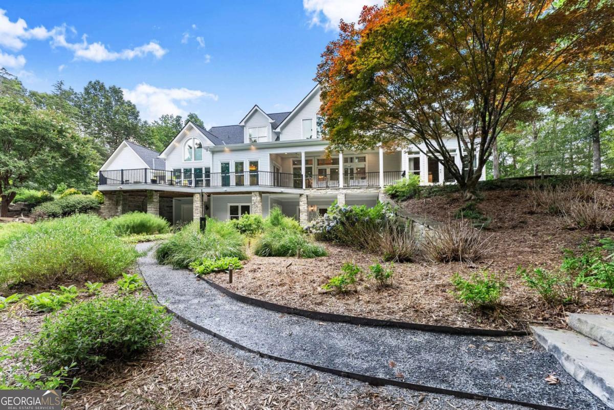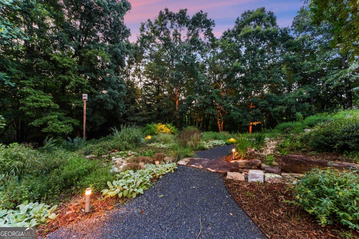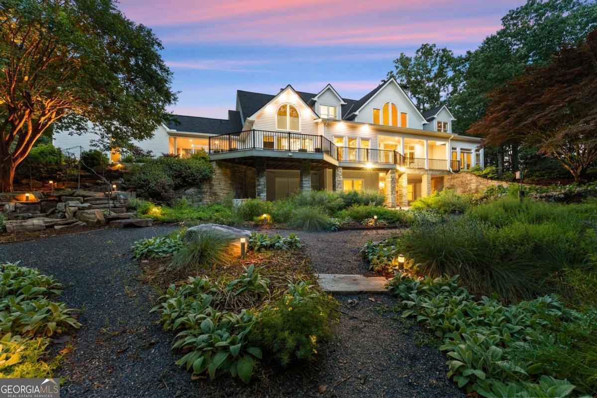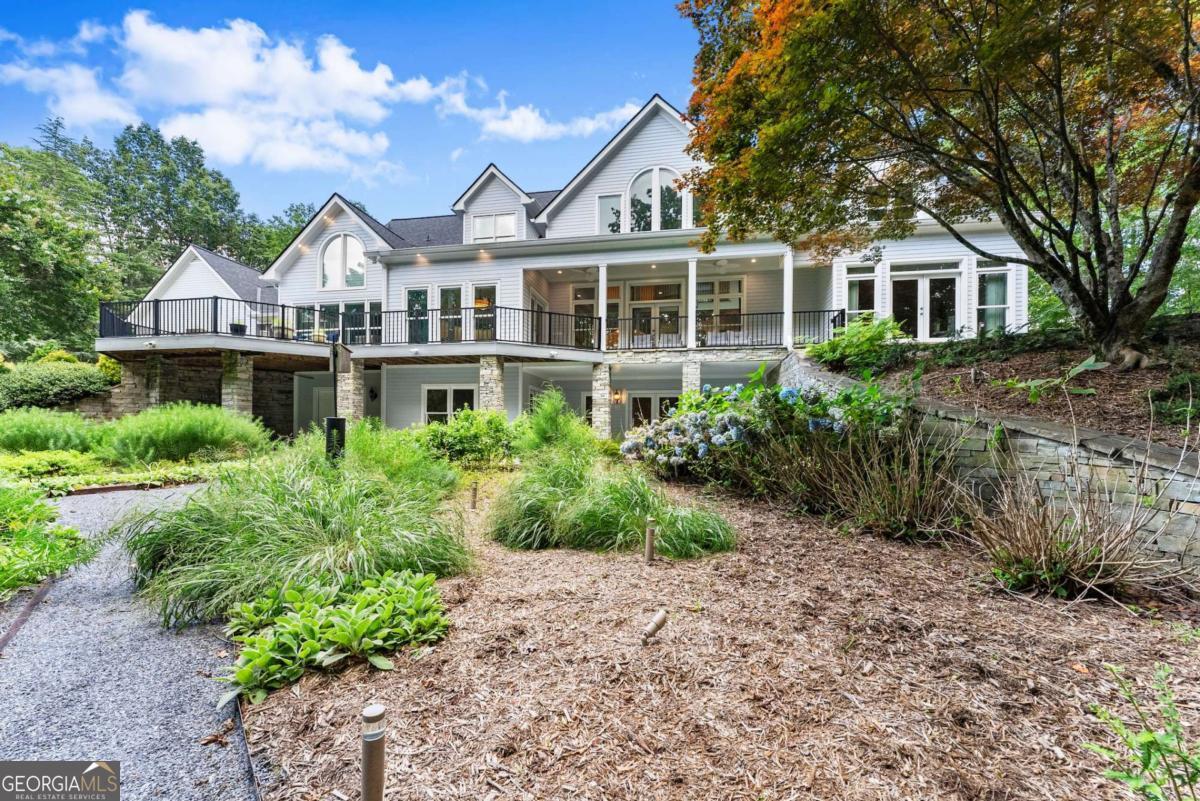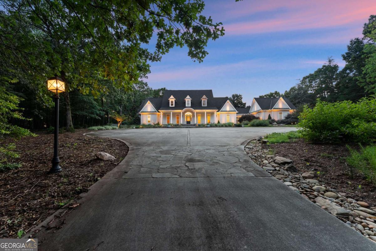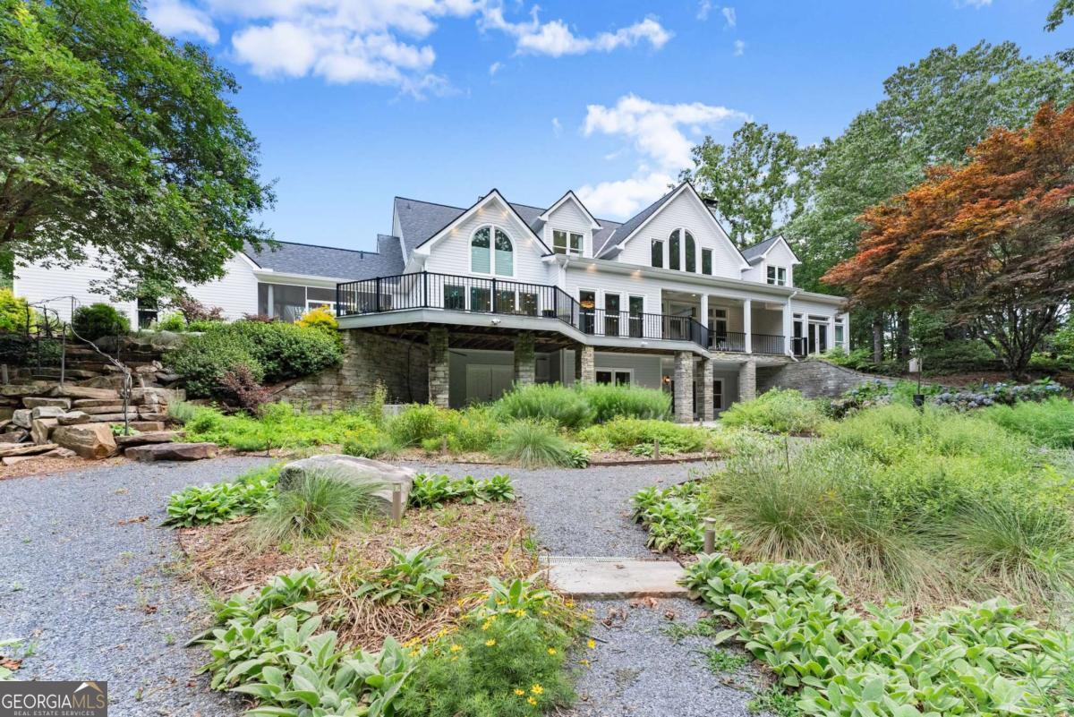 Perched on over 14 stunning acres, this breathtaking estate blends timeless elegance with unmatched tranquility in the heart of Dahlonega. Welcome to 77 Old River Road-a refined mountain retreat offering stunning views, total privacy, and a lifestyle of peace and sophistication. As you arrive, the stately driveway winds through professionally designed landscaping and leads to a grand Southern-style residence that captures the essence of North Georgia mountain living. Inside, the main level unfolds with warmth and elegance-featuring an open-concept layout, hardwood floors, soaring ceilings, and designer lighting. The expansive primary wing on the main floor includes a private fireplace, a newly updated spa-like bathroom, and access to a private deck with postcard-worthy views of the backyard oasis. A secondary ensuite bedroom, formal library/office, welcoming living room with fireplace, and gourmet kitchen with a breakfast nook and keeping room provide space for both relaxing and entertaining. Step out to the screened porch or enjoy the tranquil koi pond below-this is serenity redefined. Upstairs, discover a second luxurious primary suite, with custom cabinetry, additional guest bedrooms with flexible space for hobbies or work, and a cozy bonus room that could function as another office, or movie theater. Downstairs, the fully finished terrace level is an entertainer's dream, second family room, bonus space perfect for a theater, gym, or game room, and walk-out access to the outdoors. Outdoors, custom-crafted railings line peaceful walking paths, and multiple porches and decks invite gatherings under the stars. The estate includes ample parking with the three car garage and no HOA restrictions-offering freedom and comfort, just minutes from Downtown Dahlonega. Recently renovated with high-end finishes and featuring dual primary suites, this rare gem is perfect for those seeking luxury, privacy, and the magic of mountain living.