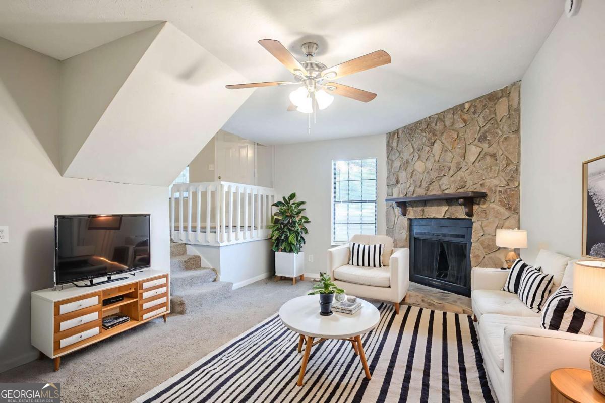 Welcome home to a charming split-level in Stone Mountain with a bright, open living space and a cozy fireplace that sets the tone the moment you walk in. The kitchen is clean and functional with white cabinets and solid surface counters, connecting easily to the dining area for everyday meals or weekend hosting. Three bedrooms upstairs give you room to spread out, while the lower level offers flexible space for laundry, storage, or whatever you need. Outside, enjoy a fenced backyard and a private deck that's perfect for relaxing. Easy access to local shops, restaurants, and parks