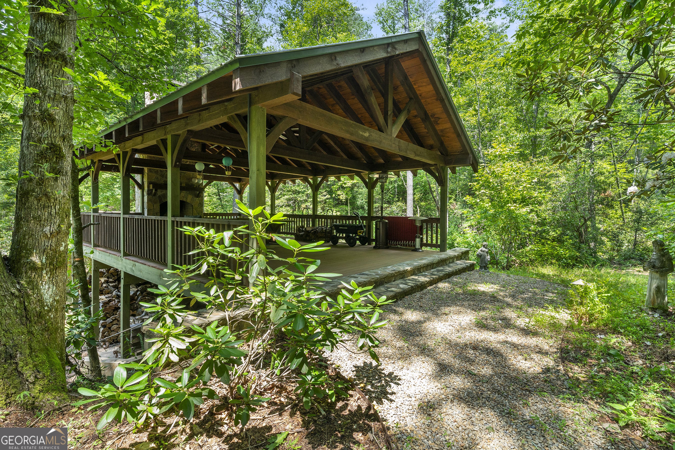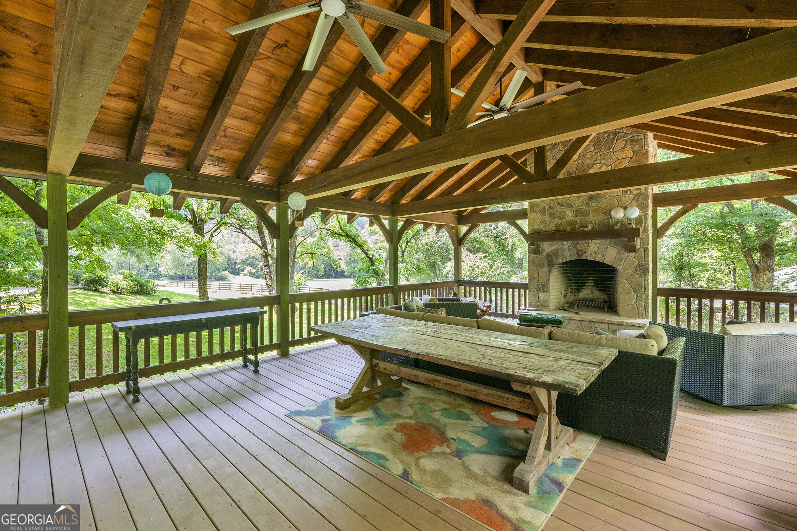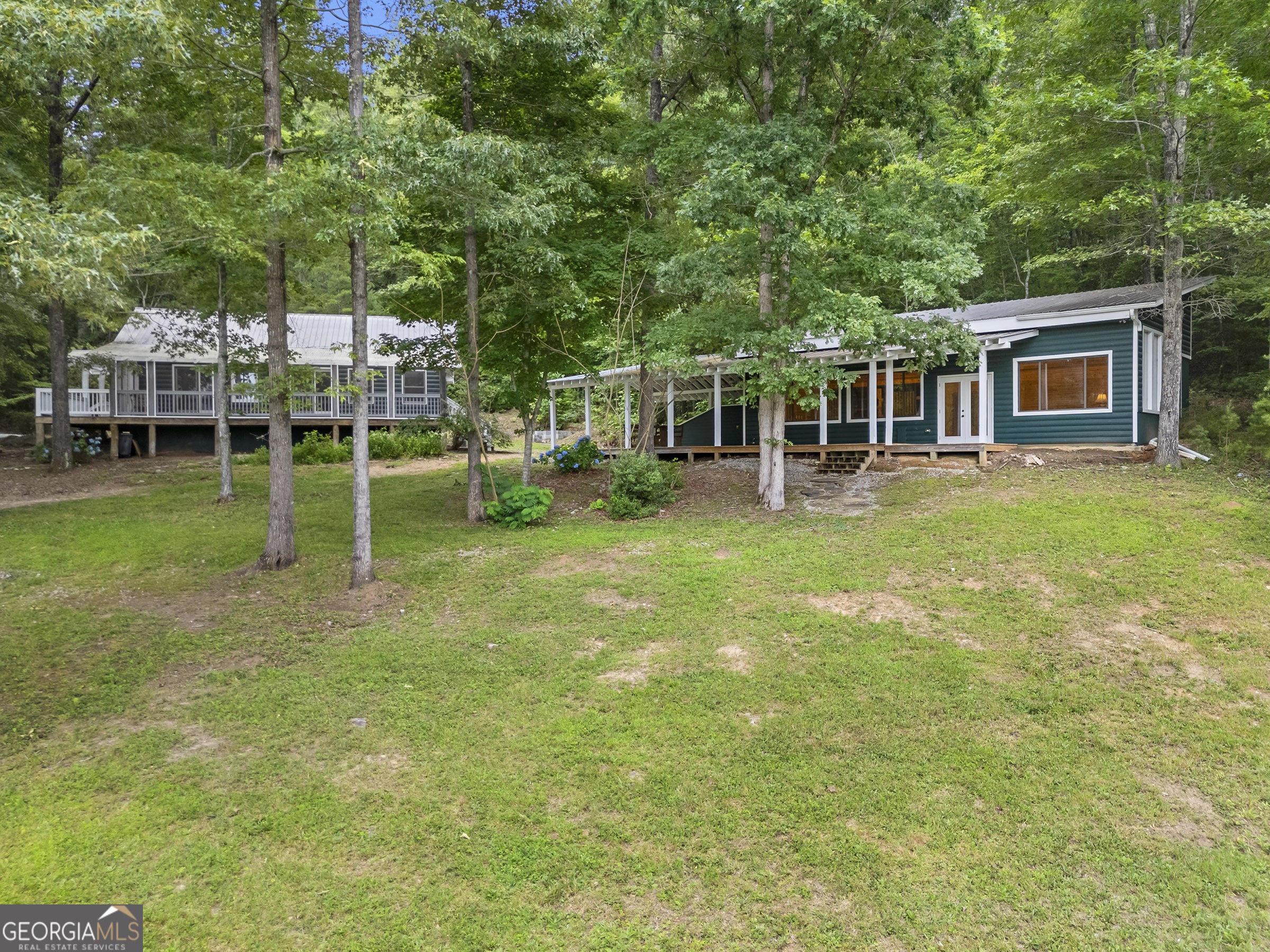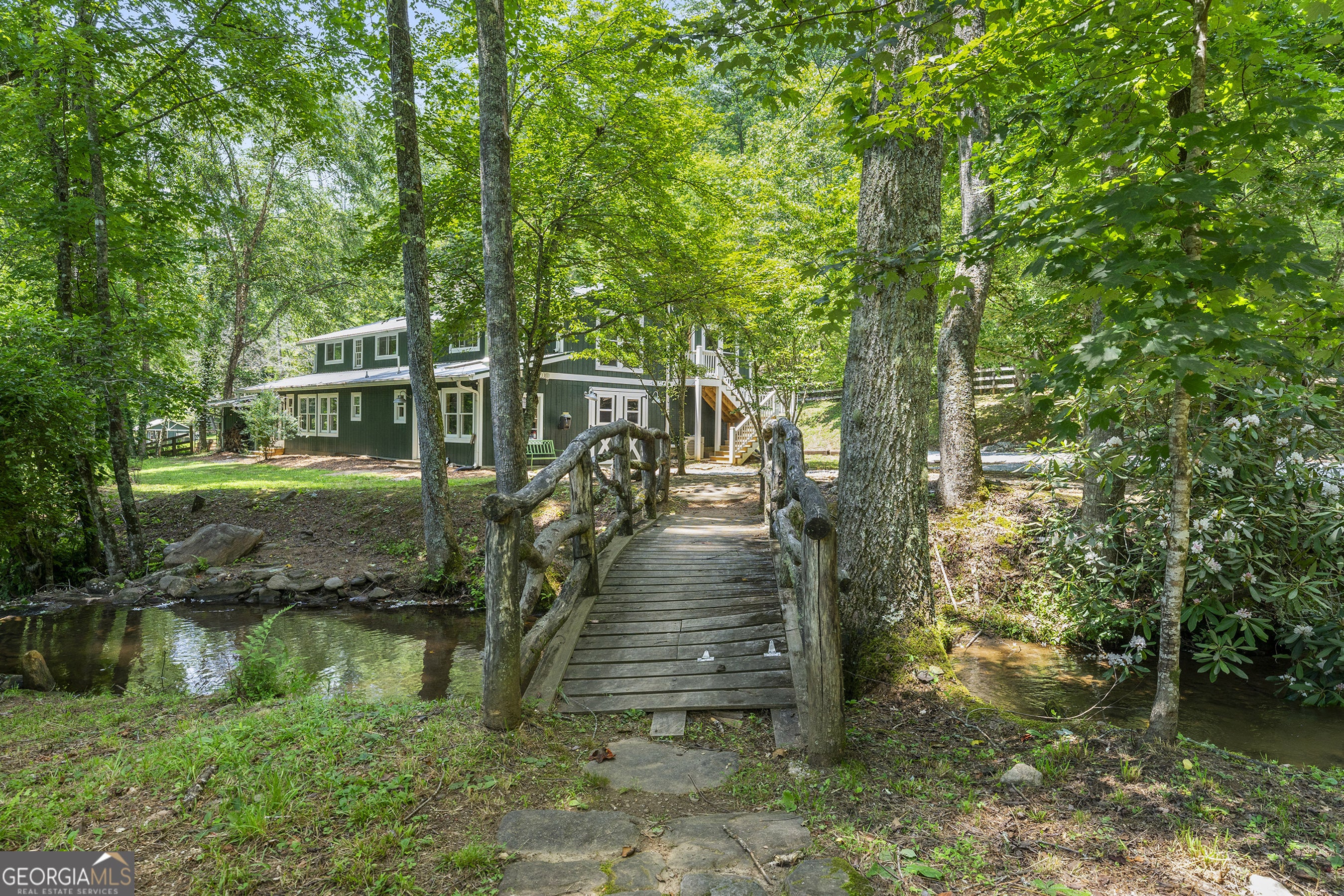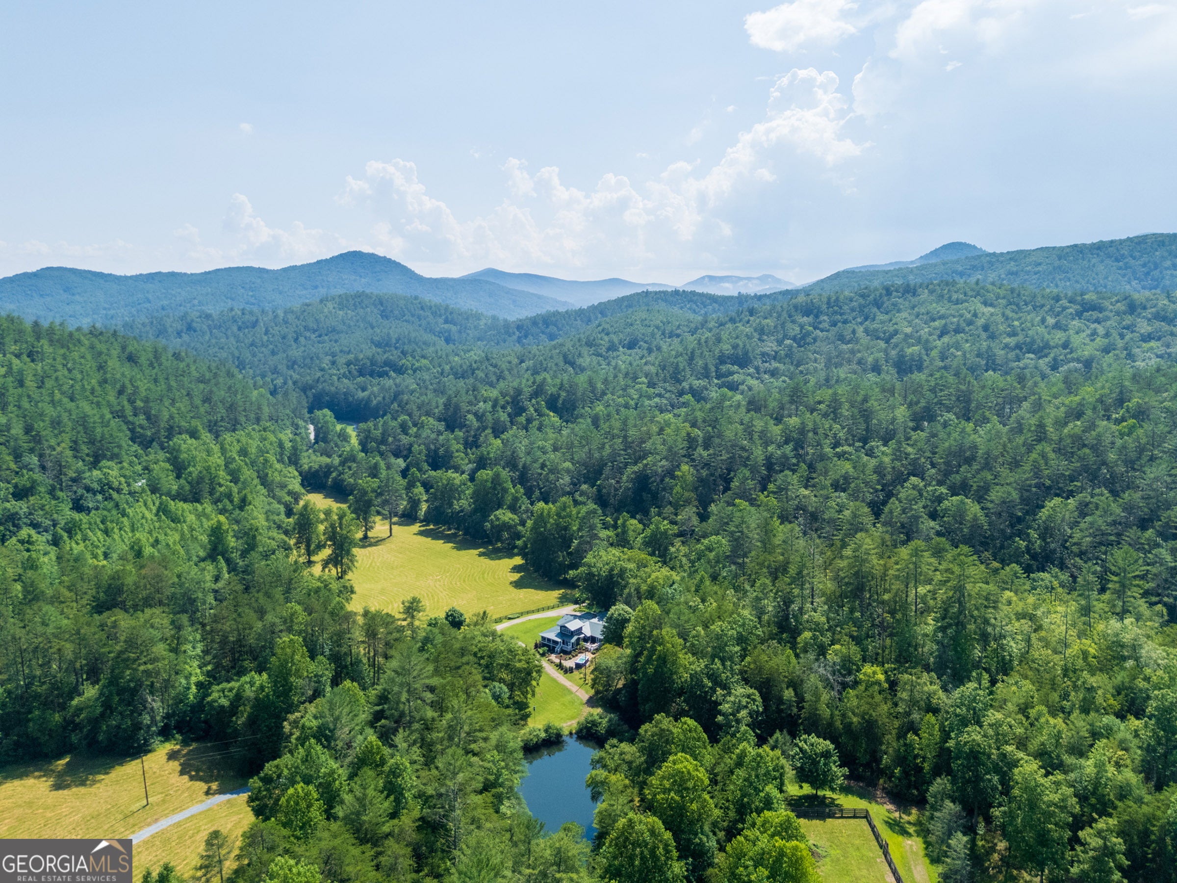 Welcome to Seven Winds, a 93-acre legacy estate where natural beauty meets inspired living in the heart of the North Georgia mountains. Bordering thousands of acres of National Forest, this remarkable property offers total seclusion and endless opportunities for adventure, recreation, and connection. Miles of private riding and ATV trails wind through rolling pastures, wooded hollows, and open meadows, leading to three stocked ponds, a trout stream with multiple cascading waterfalls-all without ever leaving home. Throughout the property, a collection of thoughtfully updated structures showcases a relaxed, camp-inspired spirit true to Rabun County. The main residence features four bedrooms and four baths, blending rustic character with modern comforts. A separate four-bedroom, four-bath guesthouse and a charming one-bedroom cabin create the perfect setting for multi-generational living, hosting extended family and friends, or welcoming guests for retreats. Additional spaces include a dedicated yoga or workshop studio, an artist barn with a gym and music room, a greenhouse, a small animal barn with fencing, multiple outdoor storage sheds, and a riding arena ready for equestrian pursuits. Gather around the standalone fireplace pavilion, unwind by the elevated infinity pool, or simply explore the land's countless hidden corners. Whether you envision a private equestrian haven, an inspiring creative sanctuary, or an unforgettable family compound, Seven Winds offers a rare canvas for your dreams. The property is conveniently located near several regional airports and private-use airstrips. Its equidistant location between Athens, Greenville, Atlanta, and Asheville makes accessing your East Coast "Yellowstone" effortless. This is more than a property-it is an opportunity to build a lasting legacy in one of Georgia's most treasured landscapes, where every sunrise and sunset reveal the Earth's true wonder.