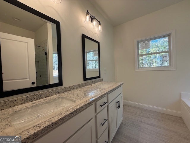 - Interior FeaturesHigh Ceilings, Master On Main Level, Soaking Tub, Pulldown Attic Stairs, Double Vanity, Separate Shower, Split Bedroom Plan, Tray Ceiling(s), Vaulted Ceiling(s), Walk-In Closet(s)
