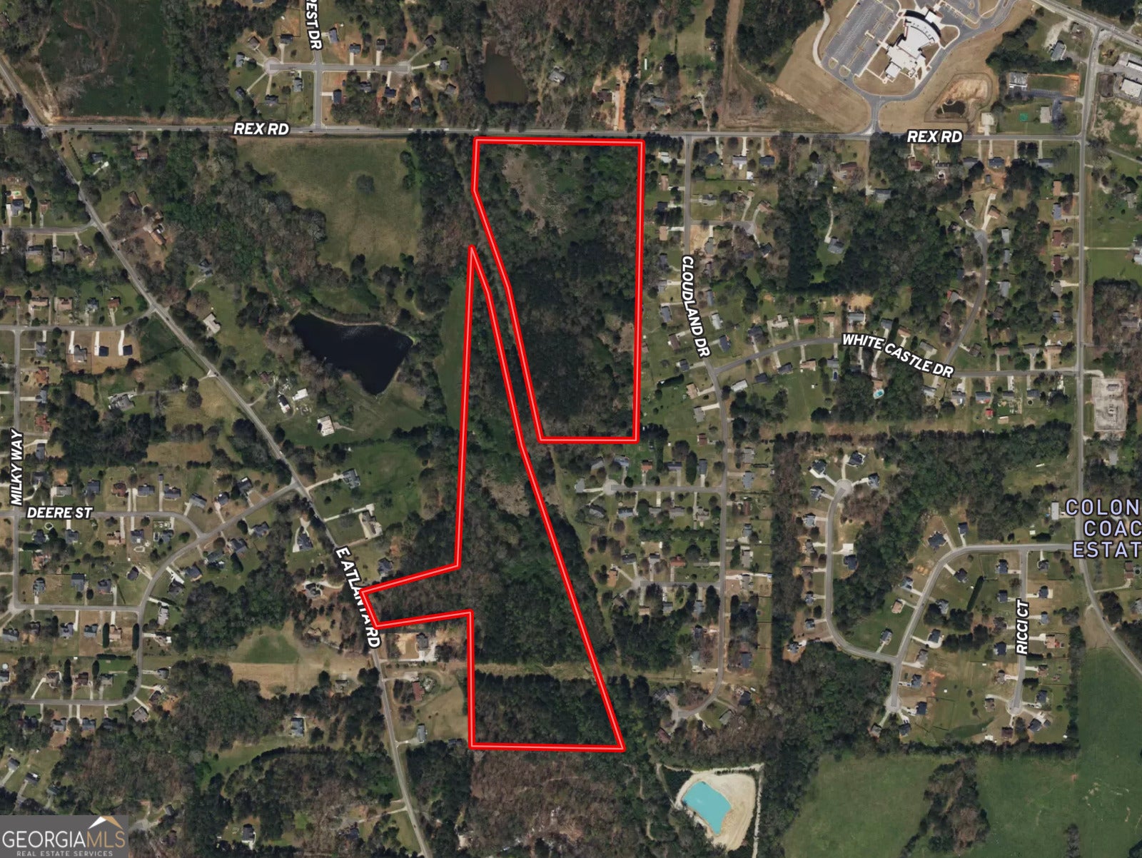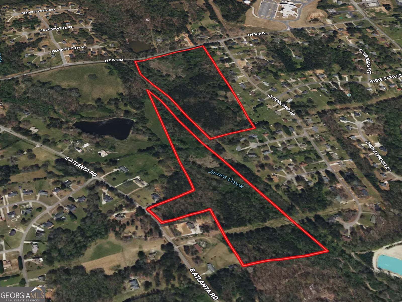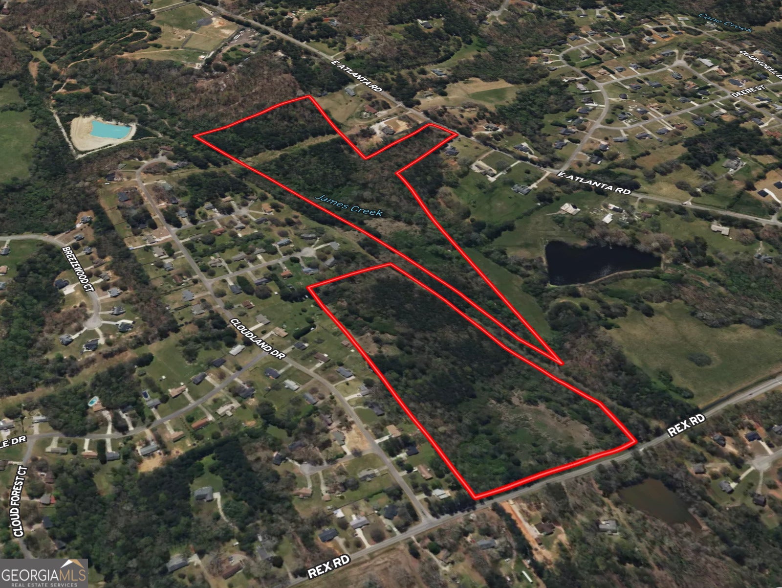 48+/- acres of Residential land located just 10 minutes from I-675 and 20 minutes from the Atlanta Airport. Offering approximately 800 foot of road frontage along Rex Road, plus additional 180+/- foot of frontage on East Atlanta Road, this property provides excellent access and visibility. Split by the beautiful James Creek with large poplars and oaks along the bank, with gentle topography tracking down towards the creek, this tract is awaiting your vision of a homestead or development. Currently unimproved with no structures, with utilities at the street. Mulching work is scheduled for July to clear trails and pasture for access and cleanup. More Pics coming soon. Call to schedule your visit. Licensed Georgia agent must be present when buyer is on property.