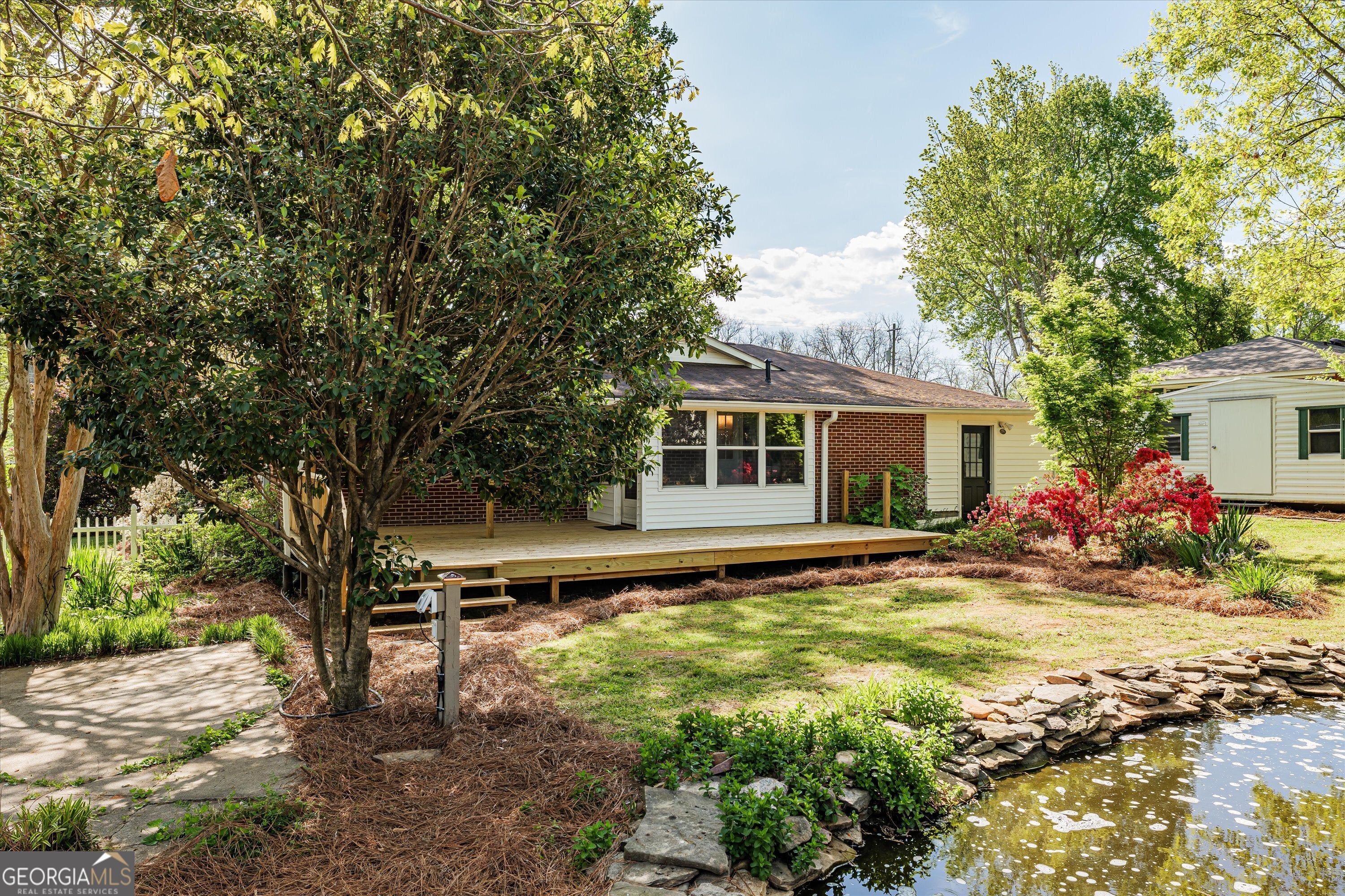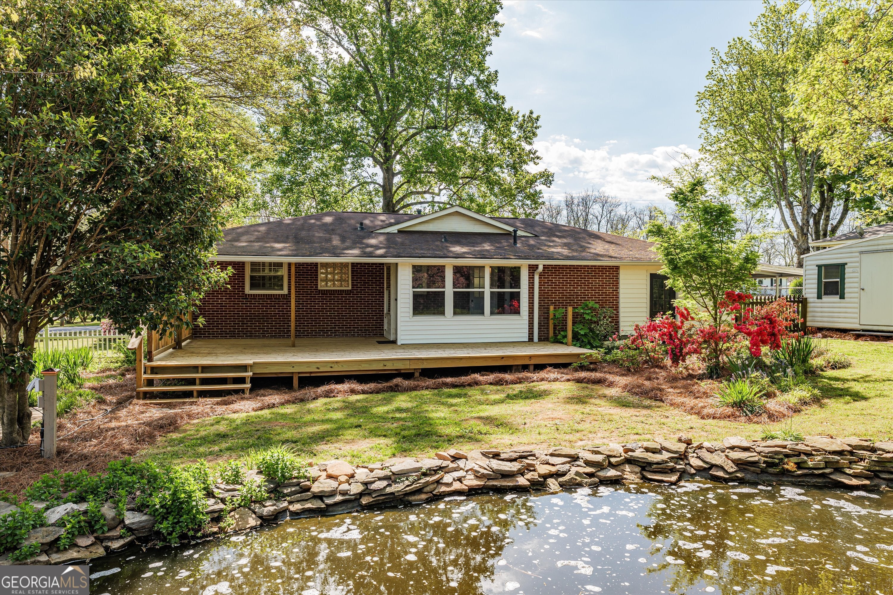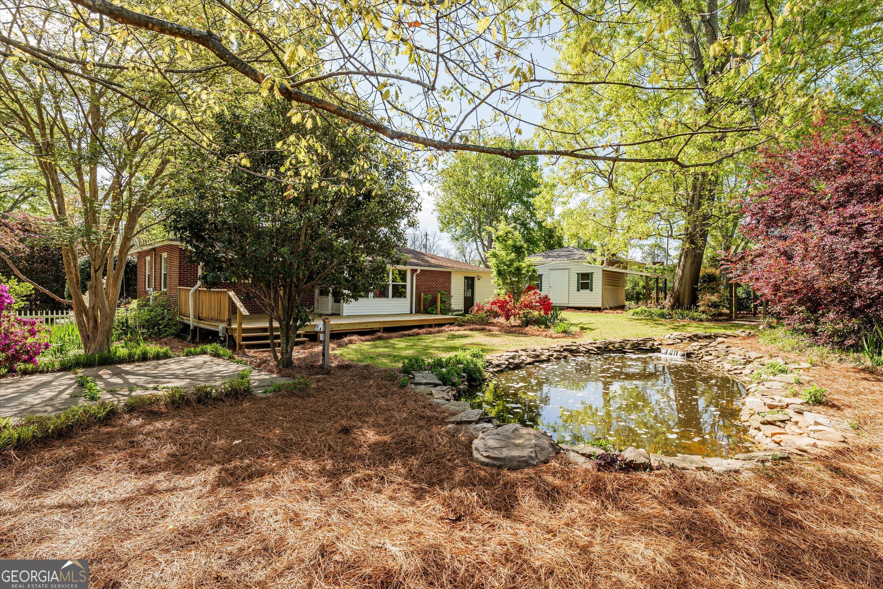 Welcome to your dream home in Washington, Georgia! This stunning four-bedroom, two-bathroom brick ranch features a newly updated interior with fresh paint and hardwood floors throughout. Step into the spacious kitchen featuring all-new stainless steel appliances, perfect for the chef in the home. Relax and unwind in the beautiful backyard oasis! Complete with a large deck and a tranquil waterfall cascading into a Koi pond (no koi), creating a serene atmosphere for outdoor gatherings or peaceful moments alone. Brand new HVAC recently installed. Conveniently situated on a corner lot, this property offers ample space and privacy. Additional highlights include a large storage shed for all your organizational needs. Don't miss the opportunity to make this charming home yours! Note: Washington, GA is approx. 45 min from Athens and Augusta. Amazon, Ft Eisenhower. etc. If schools and square footage are important, please verify.