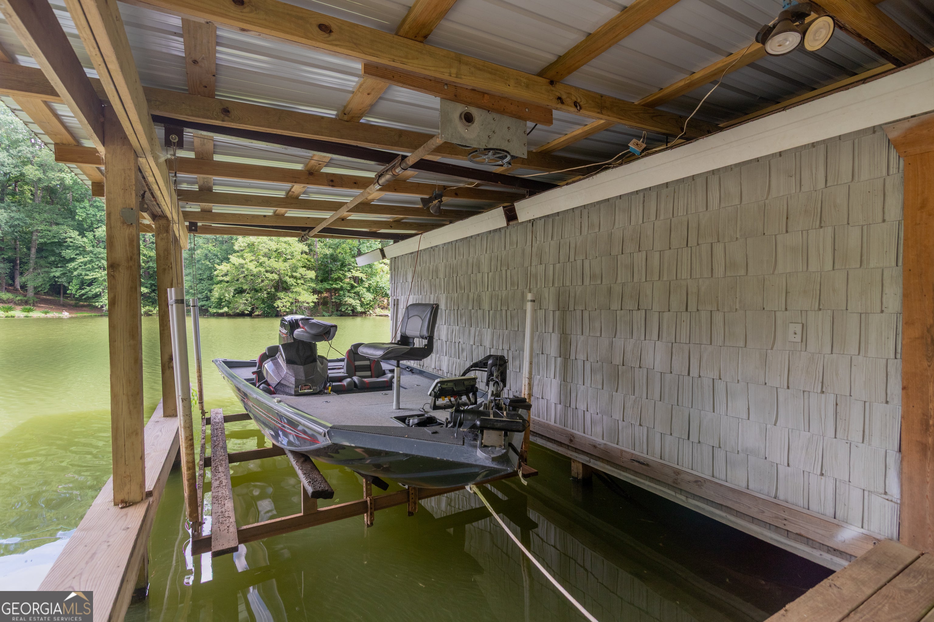 Don't miss out on the opportunity to own this cozy, well-maintained two bedroom, one bath lake house located in a quiet, no-wake cove on beautiful Lake Harding. Enjoy easy acccess to big water and seasonal long range views from all rooms. The property features a spacious deck ideal for relaxing or entertaining as well as a double boathouse with lifts to protect your watercraft, The dock provides an opportunity to fish, swim or just chill out by the water's edge and enjoy the sunset. The HVAC is approximate 3 years old and a new metal roof has been ordered.; the water heater is tankless thereby providing hot water on demand. A large parking pad with a utility shed also serves as an area to enlarge the home (Drawings available). The property is move-in ready. Come enjoy classic lake life in a peaceful setting !!