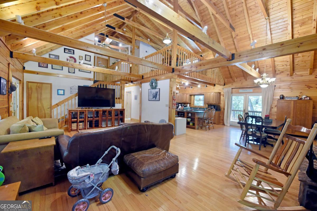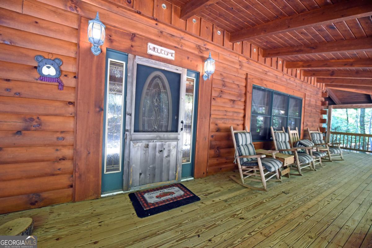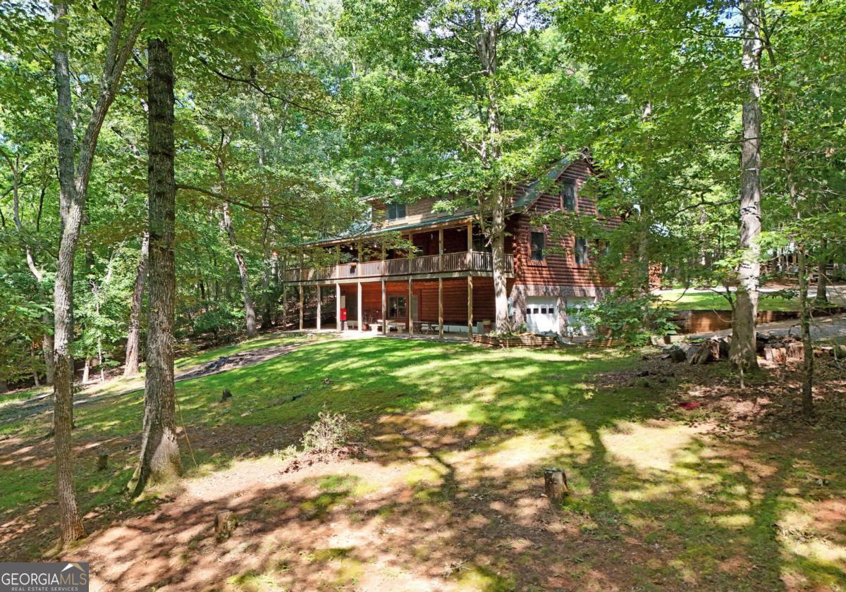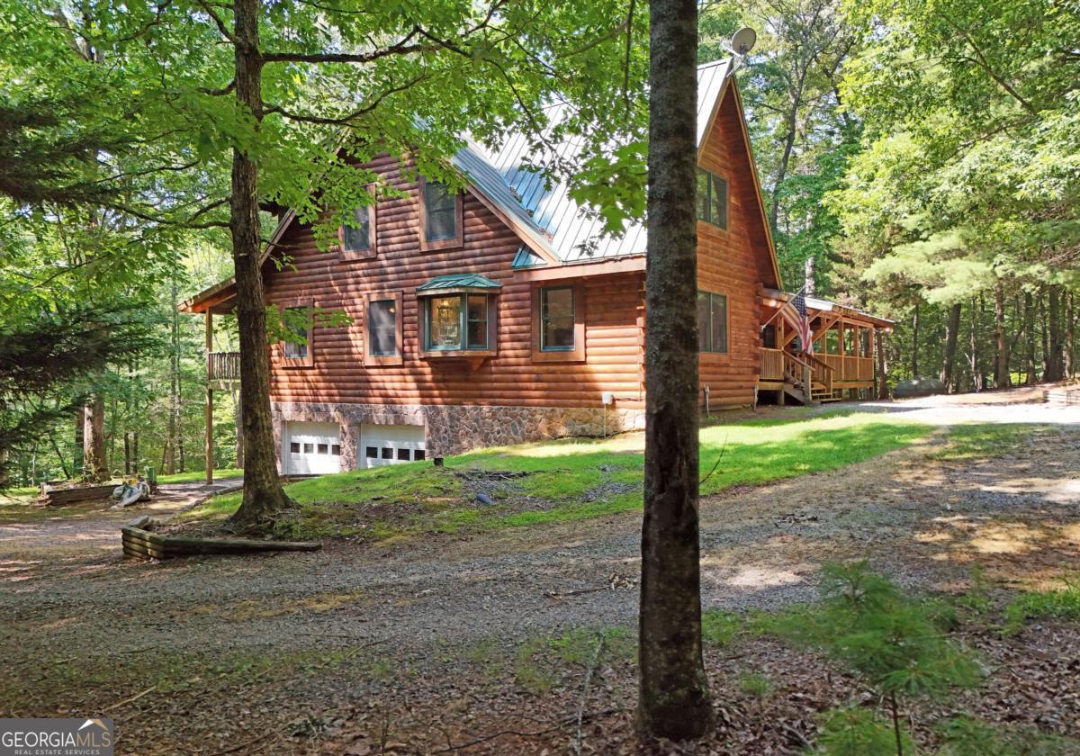 BIG BEAUTIFUL LOG HOME. Over 5400 sq ft including bsmt. 4BR/2.5BA featuring Open Great room with exposed beams, wood burning fplc w/ gas starter, Oak floors, dining area seating for Large table. The kitchen offers an oversized Central island with propane cooktop. Wall oven, wall micro, d/w and fridge. Built in desk and work station. 2 BRs on the main which includes the primary bedroom. Full bath has jetted tub, sep shower, dbl van, bayed feature window . Large walk-in closet. There is a mudroom which has a large bank of cabinets and storage. Upstairs features a large loft overlooking the great room and dining area. 2 spacious bedrooms have vaulted ceilings with exposed beams. Full bath. Full unfinished basement that is stubbed and rough wired, plumbed for a full bath, and has 2 car parking. The entrance porch is a 3/4 wrapped covered porch offering multiple areas for outdoor seating. Gentle 2 acre yard scattered with trees, fire pit area, wood storage shed. Close to Lake Nottely boat ramp off Lake Cove Lodge Rd. Approx 10 miles to town.