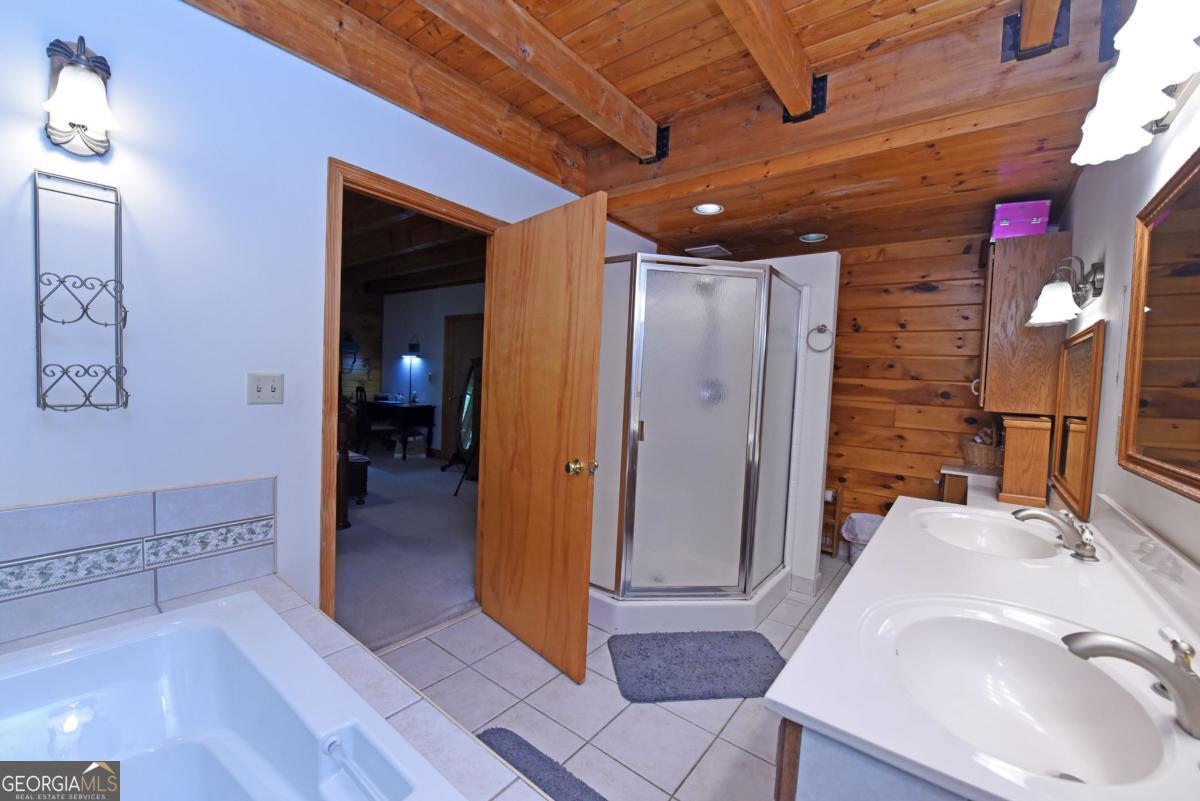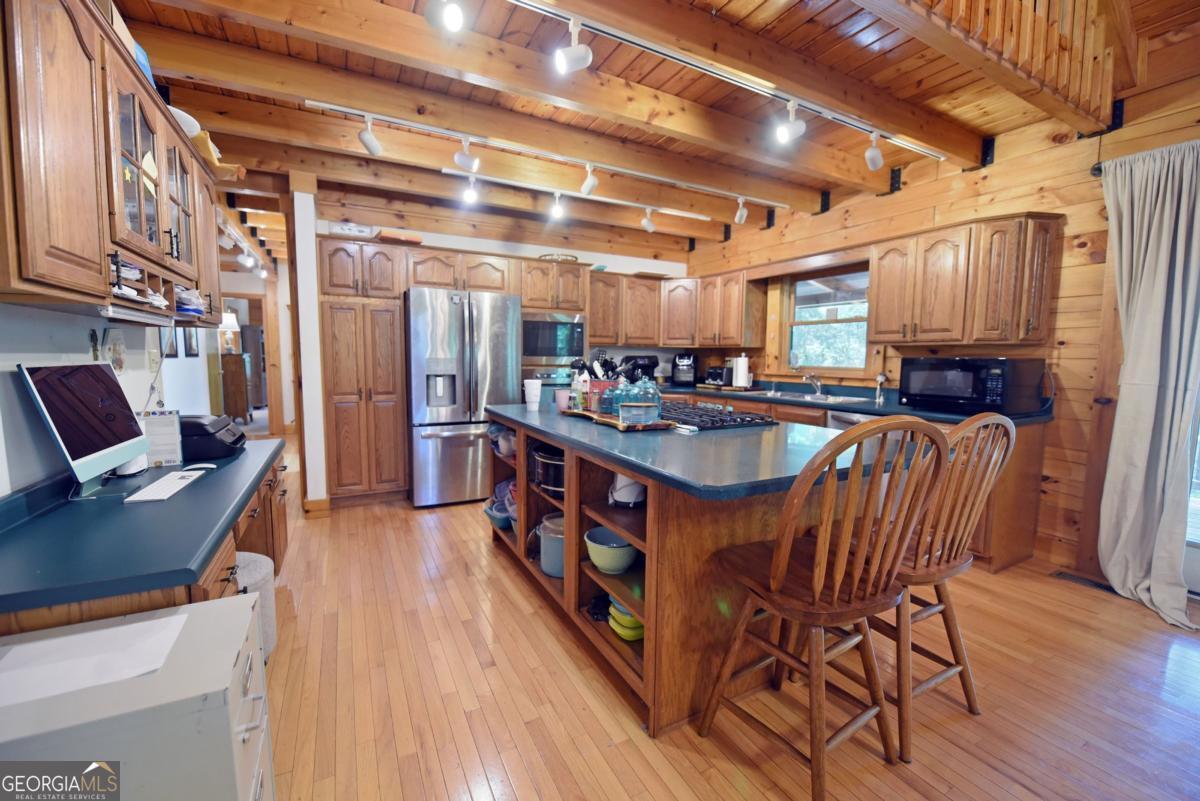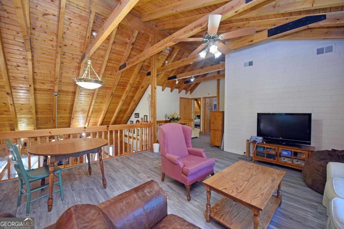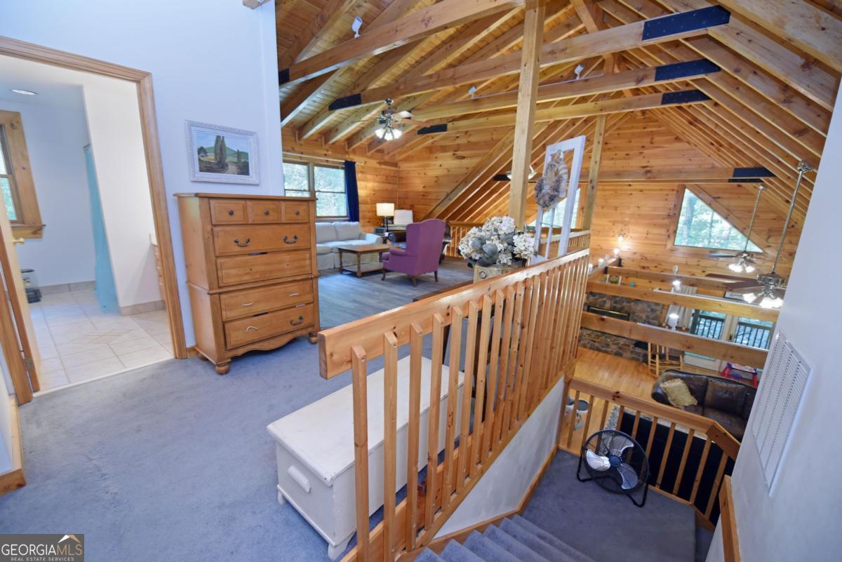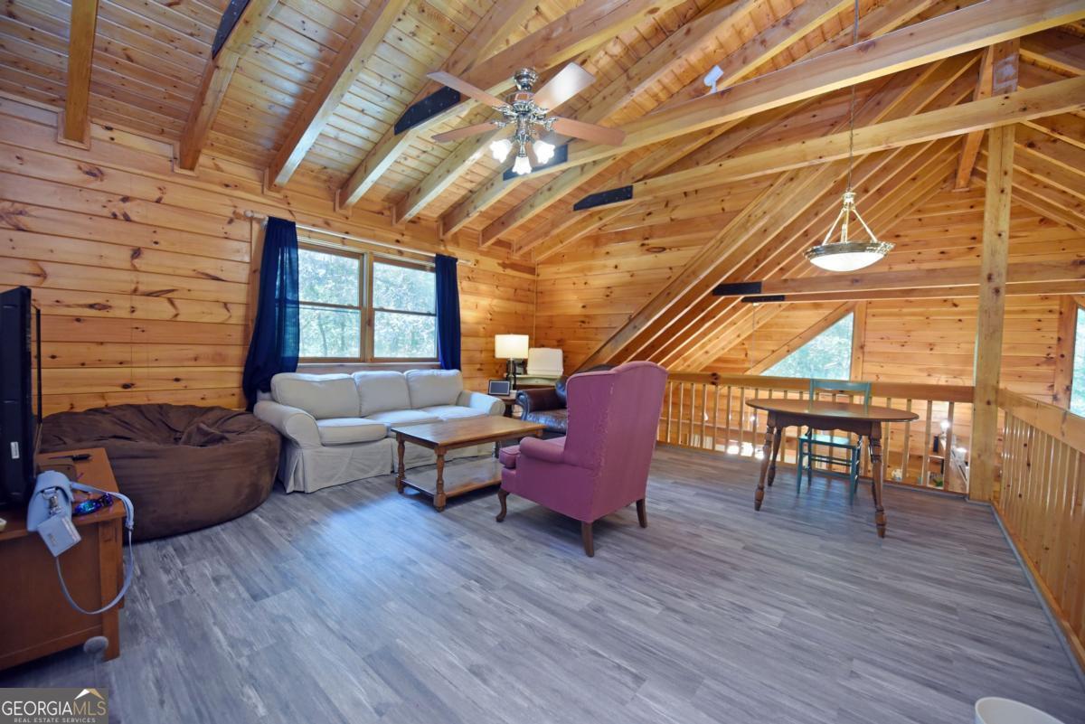 BIG BEAUTIFUL LOG HOME. Over 5400 sq ft including bsmt. 4BR/2.5BA featuring Open Great room with exposed beams, wood burning fplc w/ gas starter, Oak floors, dining area seating for Large table. The kitchen offers an oversized Central island with propane cooktop. Wall oven, wall micro, d/w and fridge. Built in desk and work station. 2 BRs on the main which includes the primary bedroom. Full bath has jetted tub, sep shower, dbl van, bayed feature window . Large walk-in closet. There is a mudroom which has a large bank of cabinets and storage. Upstairs features a large loft overlooking the great room and dining area. 2 spacious bedrooms have vaulted ceilings with exposed beams. Full bath. Full unfinished basement that is stubbed and rough wired, plumbed for a full bath, and has 2 car parking. The entrance porch is a 3/4 wrapped covered porch offering multiple areas for outdoor seating. Gentle 2 acre yard scattered with trees, fire pit area, wood storage shed. Close to Lake Nottely boat ramp off Lake Cove Lodge Rd. Approx 10 miles to town.