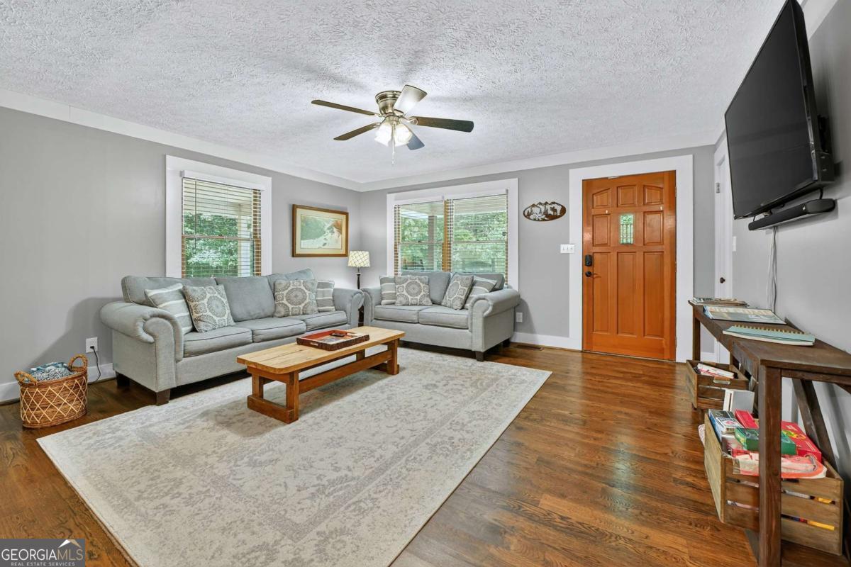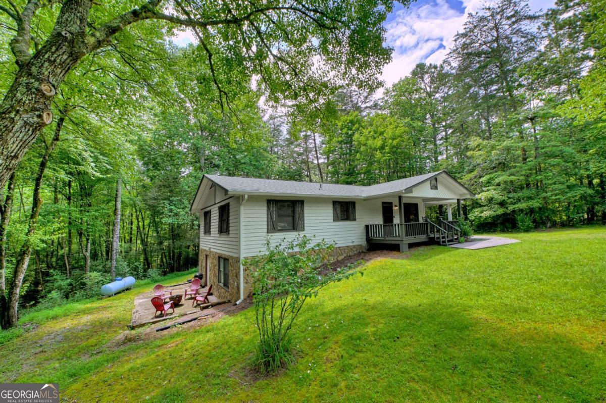 This charming 2 bedroom, 2 bathroom home offers one-level living with original hardwood floors, laundry on the main, and an easy-flow layout full of character. Tucked on a private lot just 2 minutes from downtown Blue Ridge and Lake Blue Ridge Marina, the location could not be more convenient. Enjoy the level lawn, fire pit, and attached carport for everyday ease and outdoor enjoyment. Downstairs, a full unfinished basement includes a working kitchen and full bathroom-making it move-in ready for future expansion, an in-law suite, or added living space. With a strong history as a successful short-term rental and priced to sell, this home is ideal as a primary residence, vacation getaway, or income-producing investment.