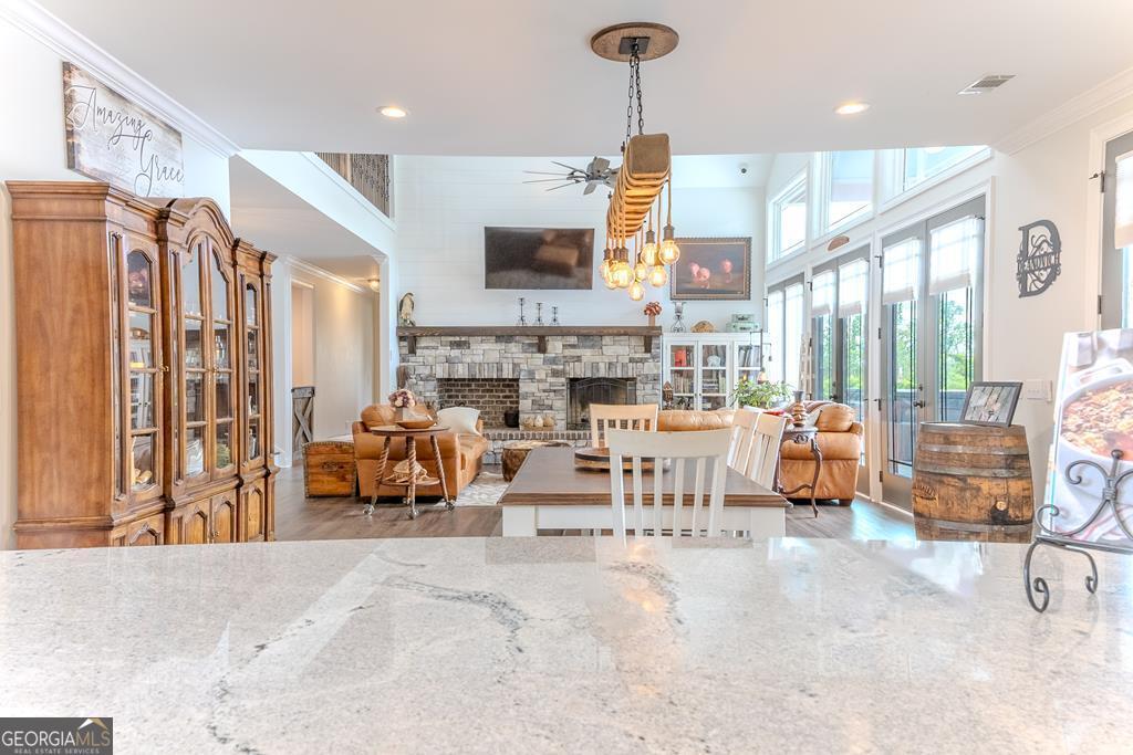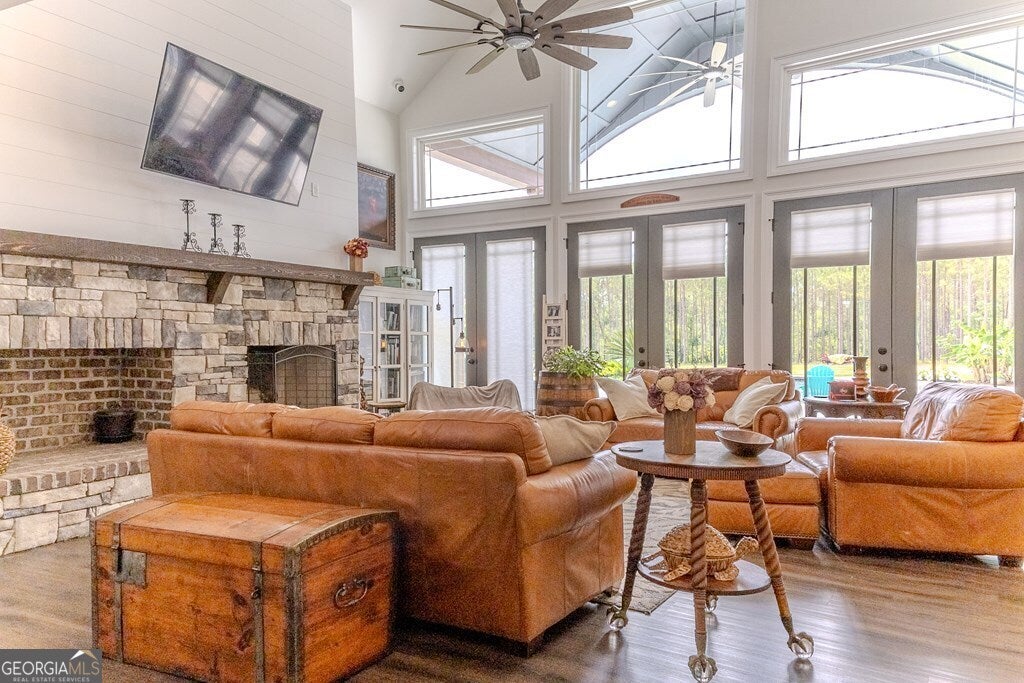 65 ACRES, 7 ACRES Stocked Pond, Fenced Pastures, Gunite Pool and Two Houses. The Main Dwelling is 5 bedrooms, 4.5 baths total of 4468 heated sq ft. with a complete studio apartment above the 3-car garage. This house has it all! The Gourmet Kitchen is large and open with a 60"Pro Wolf Double oven with grill, Bosch dishwasher, Fisher & Payket double 34 ft dual bottom mount refrigerators, Scottsdale icemaker, pot filler, deep farm sink, granite countertops and 5-seat island. The custom alabaster cabinetry with white backsplash, cedar shelving, and oversized walk-in pantry. The living room area has large windows overlooking the pool and large back porch, a stone fireplace, and a wrought iron stairway that leads to the second floor. The second floor has 2 bedrooms with a jack and jill bathroom, and a 3rd bedroom with a separate bathroom with tile shower and walk-in closet. The upstairs loft area overlooks the living room. Flowing from the living room you enter the 1st office through French doors with large windows overlooking the fields and pond with built-in shelving. The downstairs master bedroom has wooden vaulted ceiling beams and French doors opening onto the back patio/ pool area. The bookcase /doorway unlocks the hidden 2nd office/safe room. The master bathroom has dual vanities, soaker tub, and tile shower. In the hallway, even the pets have a house underneath the stairs. Sitting above the 3-car garage is the Studio Apartment. This 820 sq ft. consists of a bedroom, bathroom, kitchen, laundry room, living room, and balcony. Retreat to the back porch for a cool swim in your 16x32 granite pebble pool with 16x12 beach entry, 5 in-pool bar stools, 2 umbrella holders, & lights. Or retreat to the front porch to overlook the 7-acre stocked pond, pastures, and abundant wildlife. 2 wells (3 irrigation systems). Whole House Generac, fiber-optic internet, and surround sound speakers. The second home is a 2022 Lake House Destiny Floor 32x70 plan, 3 bedrooms & 2 baths. MUST SEE !!!