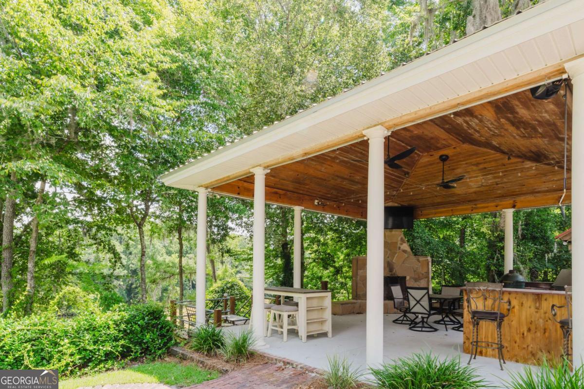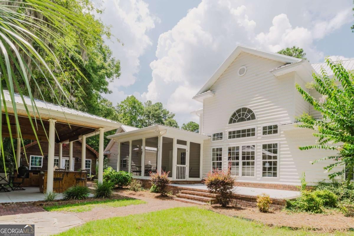 Enjoy breathtaking views of the Savannah River from this beautifully updated Lowcountry retreat on a generous .78-acre deep-water lot. This 4-bedroom, 2.5-bath home has a light-filled living space, features hardwood floors, built-in shelving, tall windows, and a gas fireplace in the great room. The chef's kitchen offers granite counters, a gas range, wine cooler, and custom pull-out cabinetry. The main-floor primary suite boasts river views, a walk-in shower, and generous storage. Three spacious guest rooms and two full bath are located upstairs. Outdoor living is unmatched with a screened porch, large patio, and a incredible outdoor kitchen-complete with granite counters, built-in grill, fireplace, and TV. Additional highlights include a metal roof and HVAC, carport with workshop, sprinkler system, and private dock access with a community boat ramp.