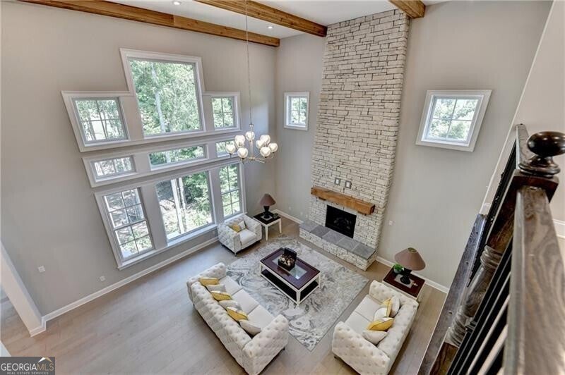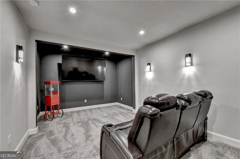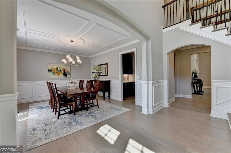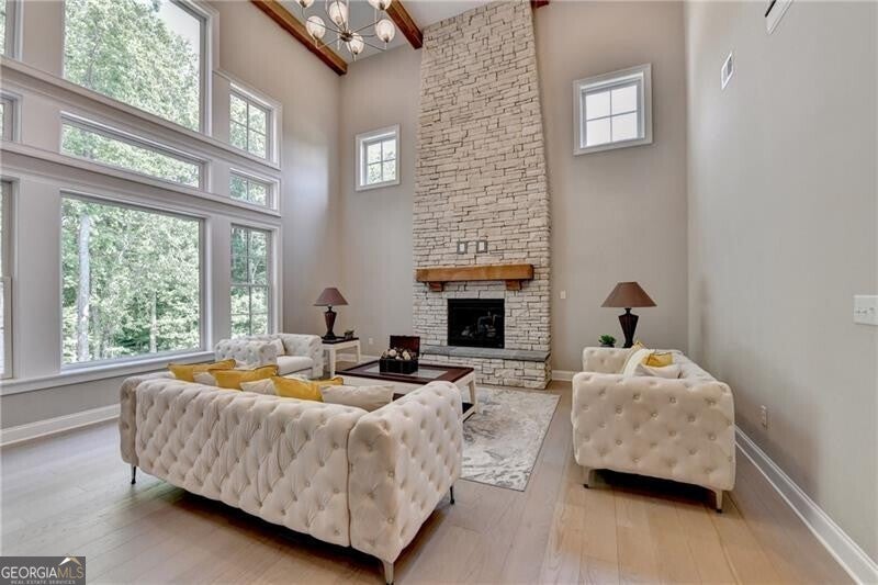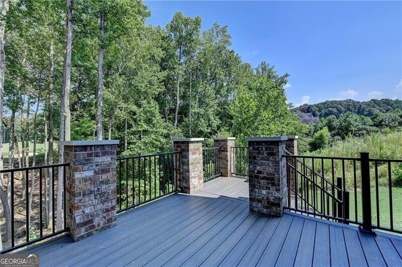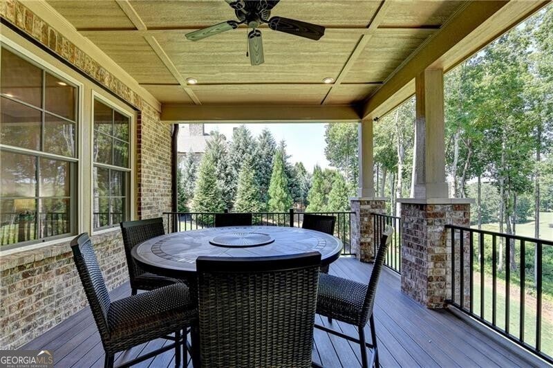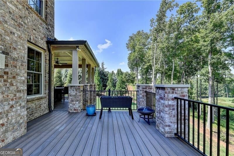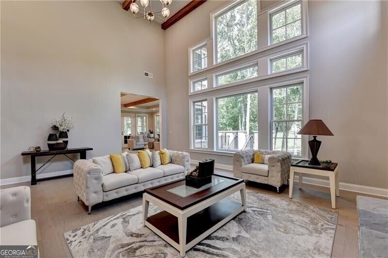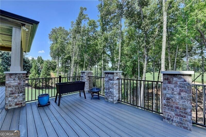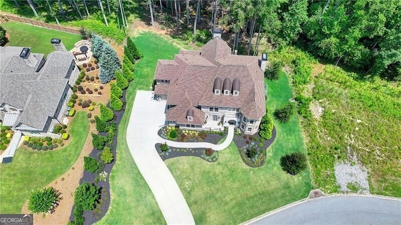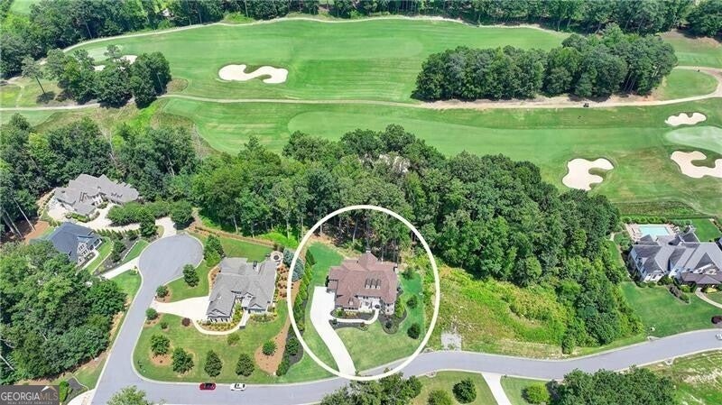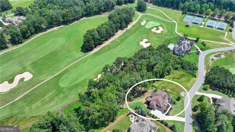 Welcome to this stunning, nearly-new home situated on the 9th fairway of the Rees Jones-designed Echelon Golf Club! Boasting over 8,000 square feet of exquisite finishes, this residence offers space and luxury for everyone. Step into the impressive two-story foyer with a grand staircase and beautiful white oak flooring throughout the main level. To your right, you'll find a spacious home office with glass French doors and a closet for convenient storage. To the left, the banquet-sized dining room provides the perfect setting for memorable gatherings and entertaining. A well-appointed butler's pantry features custom cabinetry and quartz countertops, making it easy to serve friends and family. The chef's kitchen is a true dream, equipped with stainless steel appliances, including a six-burner Cafe gas cooktop, double ovens, built-in microwave, pot filler faucet, and a French door refrigerator. The enormous center island offers ample counter space and seating, while custom-painted cabinetry ensures storage for all your culinary needs. An adjacent walk-in pantry with solid wood shelving provides even more space for your family's essentials. Open to the kitchen is the inviting keeping room, complete with a stone fireplace and tray ceiling. Step out onto the spacious covered composite deck or the open deck ideal for grilling and enjoying breathtaking views of the pristine golf course. The two-story great room features another stone fireplace and soaring glass windows overlooking the fairway. A guest bedroom with a full bath and a powder room are conveniently located on the main level. Upstairs, accessible by one of two staircases, you'll discover four generous bedrooms. The Primary Suite offers a grand entrance, a large bedroom, an elegant sitting room with fireplace, white oak flooring, and a spa-like bath with a glass-enclosed shower, separate soaking tub, dual vanities, and beautiful custom cabinetry with linen storage. One bedroom has a private bath, while the other two share a bath, each with its own vanity. The finished terrace level is perfect for entertaining large groups, featuring an expansive wet bar with dishwasher, under-counter refrigeration, custom cabinetry, quartz countertops, and a full-size refrigerator. Walk out to a deck overlooking the golf course, or enjoy the recently added home theater ideal for sports and movie nights! Echelon Golf Club is ranked 11th out of 400 Georgia courses by Golf Digest, offering players a formidable test of skill across rolling hills, varied elevations, and stunning vistas on its 600-acre property.