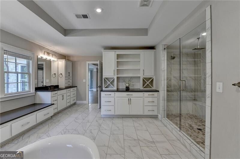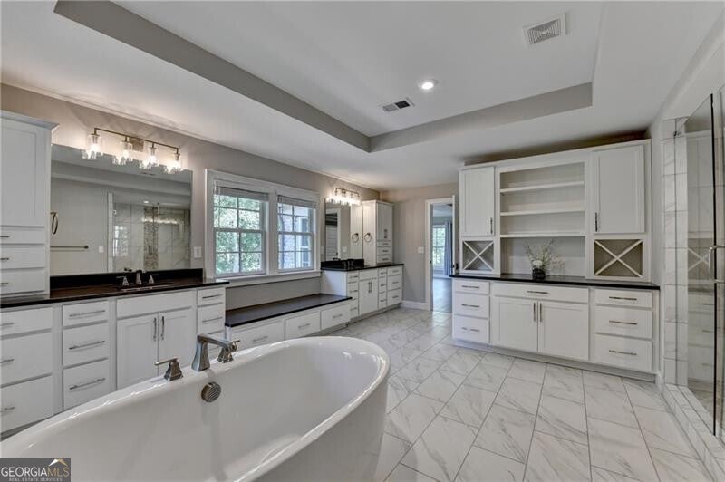 - Interior FeaturesDouble Vanity, High Ceilings, Separate Shower, Tray Ceiling(s), Vaulted Ceiling(s), Walk-In Closet(s), Wet Bar