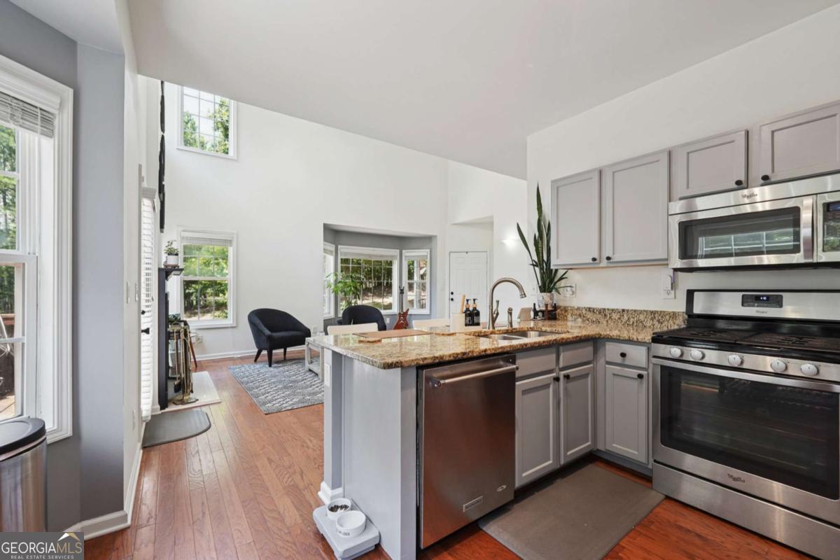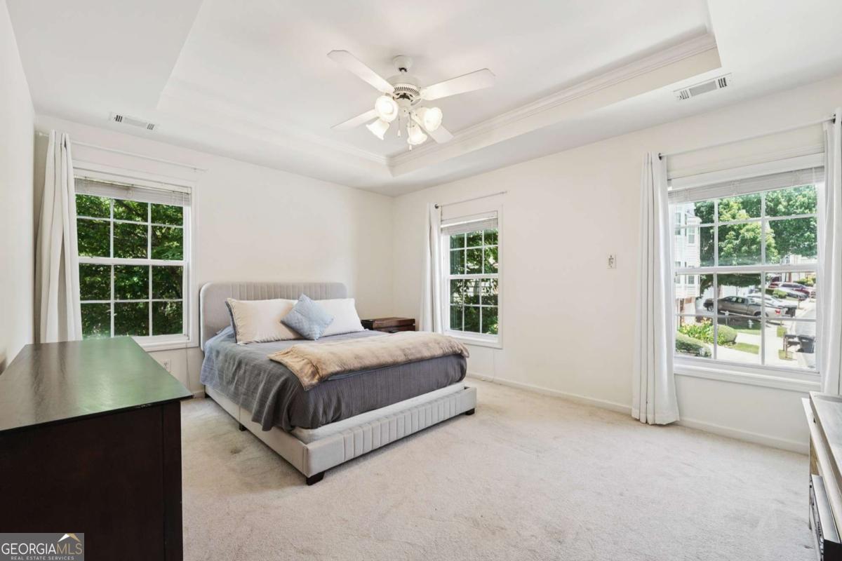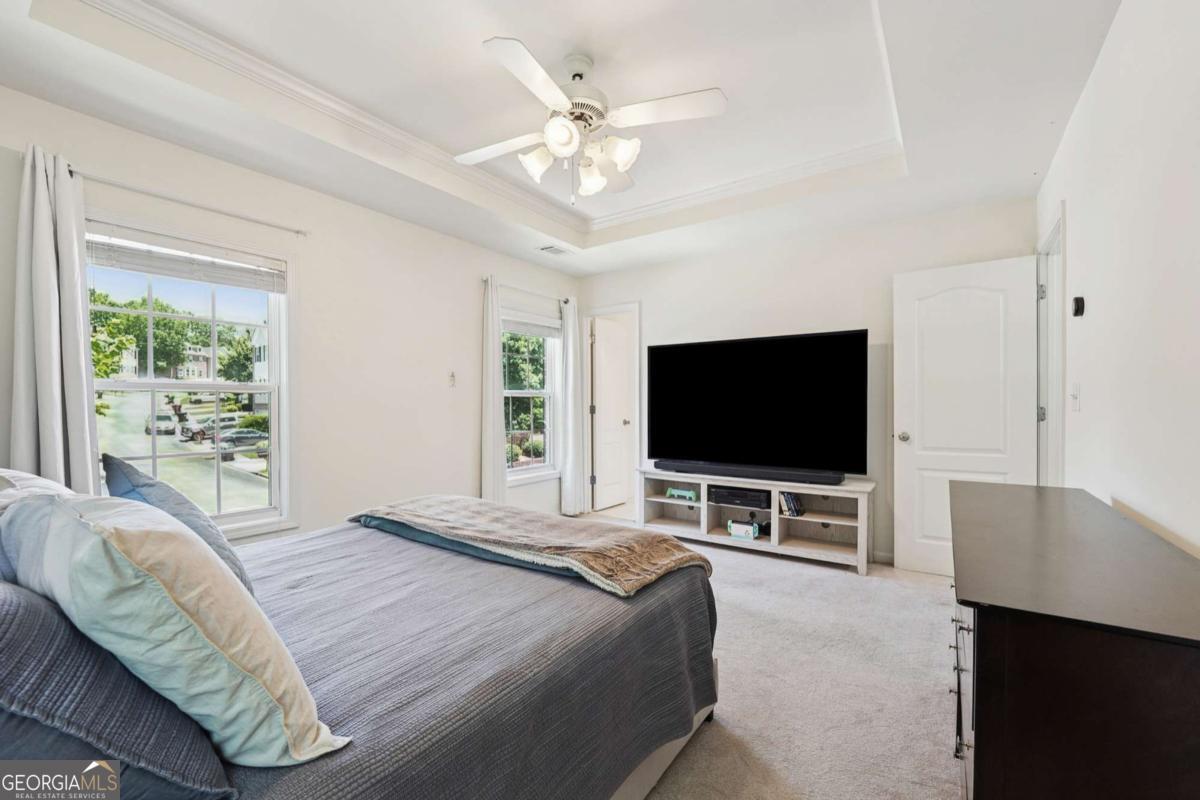 NEW HVAC INSTALLED ON JULY 10, 2025!! Discover your dream retreat in this rare corner-end townhome in the heart of Sugar Hill! Step inside to find rich hardwood flooring across the main level, paired with a bright neutral palette that radiates warmth and style. The chef's kitchen is a showstopper, boasting sleek stainless appliances, rich stained cabinets, and a built-in microwave-perfect for whipping up your favorite meals or hosting lively gatherings. The expansive open floor plan effortlessly connects the kitchen to the living area, creating an inviting space ideal for entertaining or cozy nights at home. Upstairs you'll find the stunning owner's suite, where elegant trey ceilings set the tone for comfort, complemented by a spa-like ensuite featuring a soaking tub, double vanities, and a large shower that promises pure relaxation. Two spacious secondary bedrooms offer ample room for family, guests, or a home office, while a beautiful loft with bay windows provides a charming hideaway for movie nights or quiet reading. Step outside to a large back deck, your personal oasis for morning coffee or evening soirees. Perfectly located with quick access to I-20, you're just moments from vibrant local shopping, dining, and scenic parks (Gary Pickle Park), Dogs parks (Settle Bridge Park and Ridge Lake Park). Lake Lanier (3 miles), supermarkets (Kroger, Publix next to the neighborhood) all while zoned for top-rated schools. Schedule your showing today and embrace the Sugar Hill lifestyle you've been looking for! Additional features: Garage door with Wireless system (can be open with MyQ app) Ring Door Camera allows to view who is outside and will ring on the phone as well (paid subscription allows to record videos and set areas for the notifications) Security system on the main doors. Smart Thermostats allows to use the Google nest app to control the AC units and join electricity provider discounts. All lights were changed for LED to reduce electricity bill. Extra private space for the parking next to the house. Tennis court resurfaced a month ago.