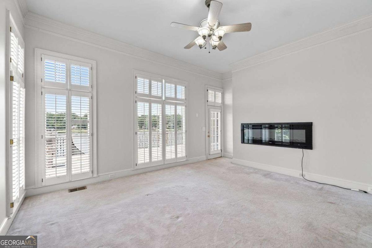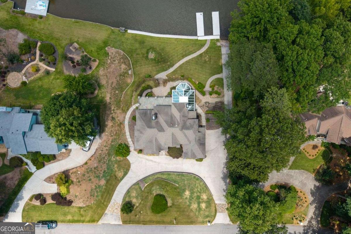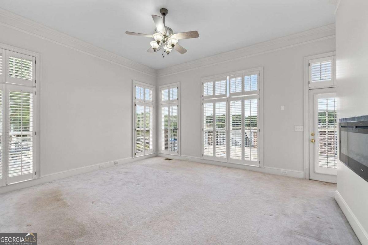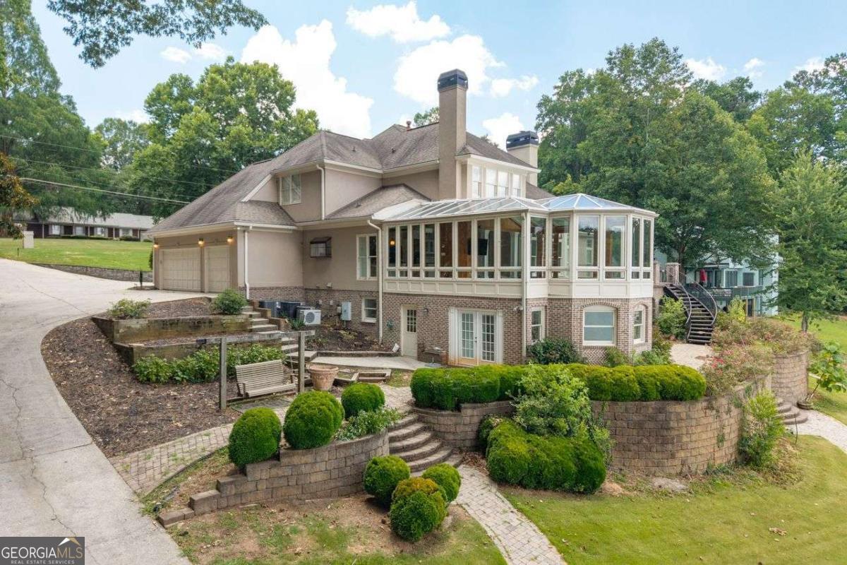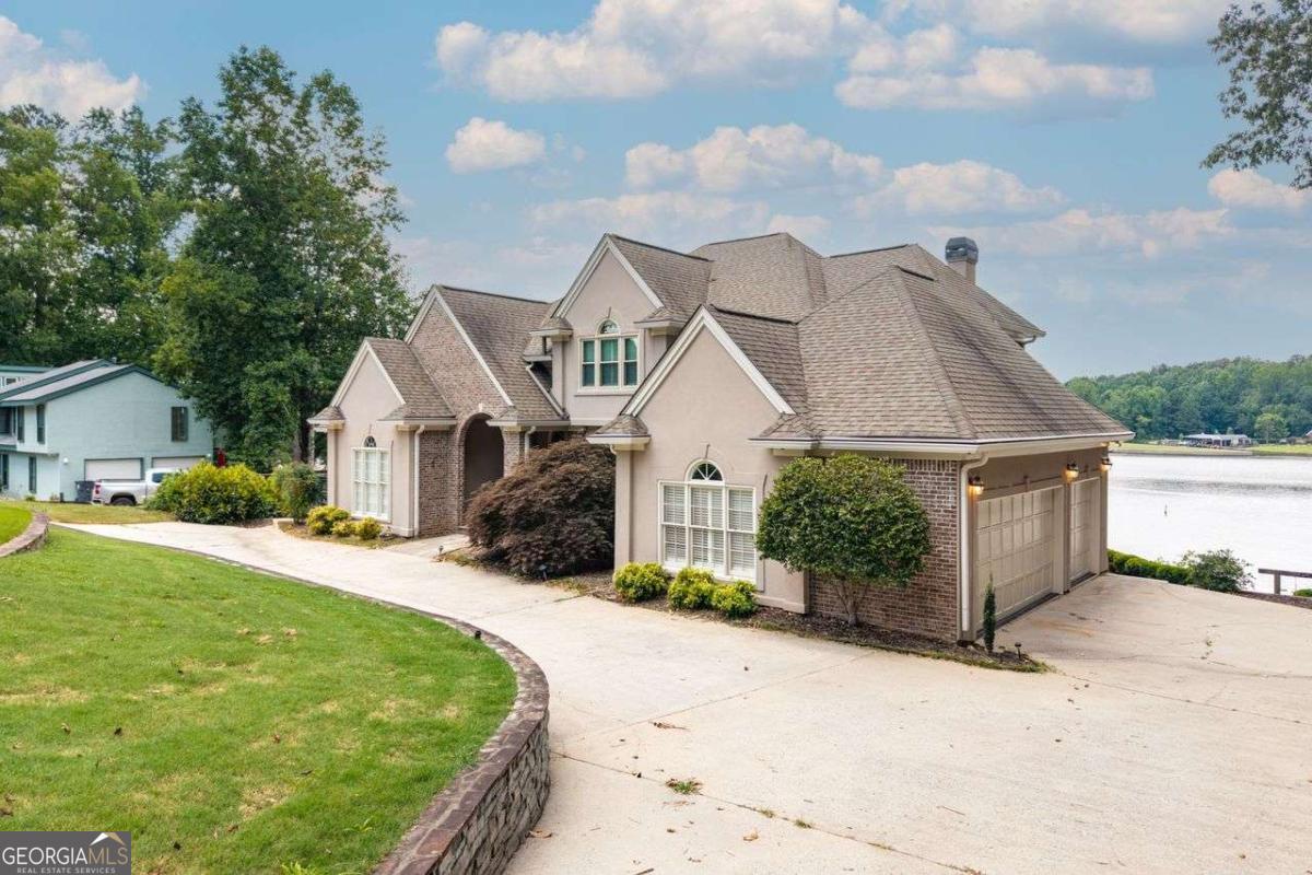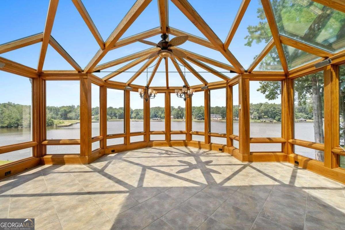 Welcome to a lifestyle of refined elegance and serene waterfront living. Nestled in the highly sought-after Lake Spivey community, this magnificent residence is a masterclass in architectural beauty and sophisticated comfort. From the moment you step into the soaring two-story foyer with its floating staircase and an abundance of natural light, you'll be captivated by the sense of grandeur and grace that defines every inch of this home. Designed for both everyday living and luxurious entertaining, the open-concept eat-in kitchen is a culinary dream featuring gleaming granite countertops, crisp white cabinetry, dual ovens, and a stunning three-sided fireplace that also warms the adjoining custom sunroom. Here, walls of windows frame panoramic lake views, creating a seamless indoor-outdoor ambiance that invites relaxation. The main level showcases thoughtful functionality with a formal dining room, a refined study or office, and a gracious living area - all adorned with fine finishes and classic design elements. The primary suite is a true private retreat with its own fireplace, a spa-inspired ensuite bath boasting double vanities, a soaking garden tub, and a separate glass-enclosed shower. Downstairs, the daylight terrace level offers a spacious additional family room with fireplace, flexible rooms ideal for guest suites, a home gym, or a second office - perfectly suited to your evolving needs. Step outside to your private boat dock and embrace the rare opportunity to own direct access to one of Georgia's most cherished private lakes. Whether you're boating at sunset, entertaining on the water, or simply enjoying the view, every moment here feels like a luxurious escape.
