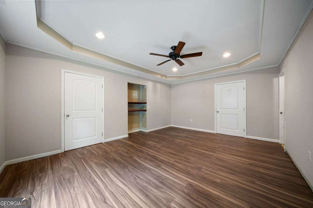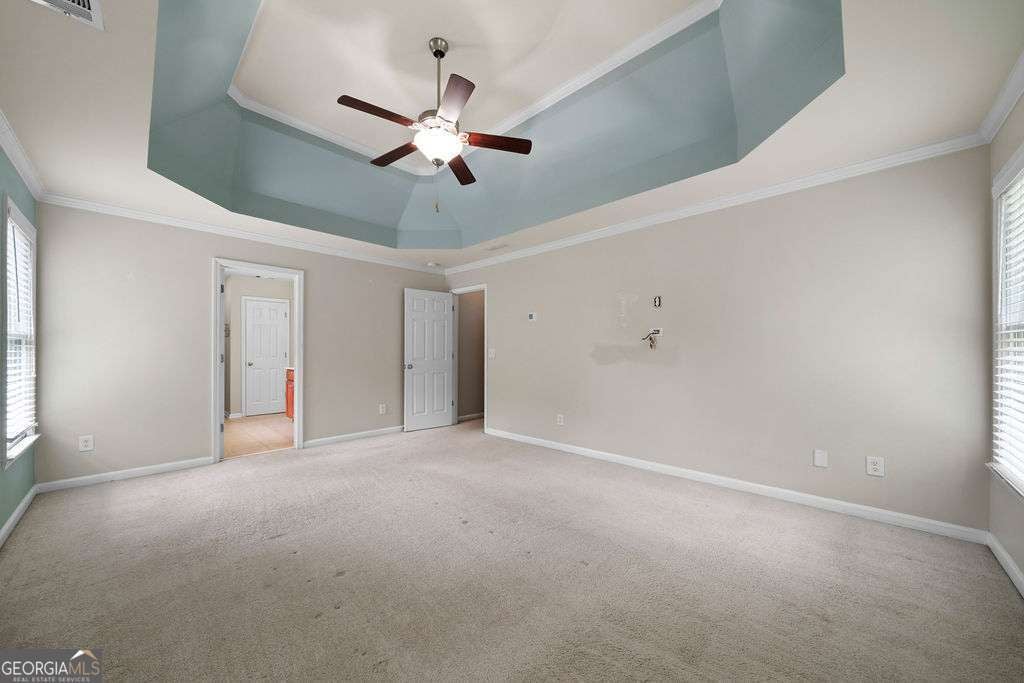 - Interior FeaturesDouble Vanity, High Ceilings, Pulldown Attic Stairs, Separate Shower, Soaking Tub, Tile Bath, Tray Ceiling(s), Walk-In Closet(s)