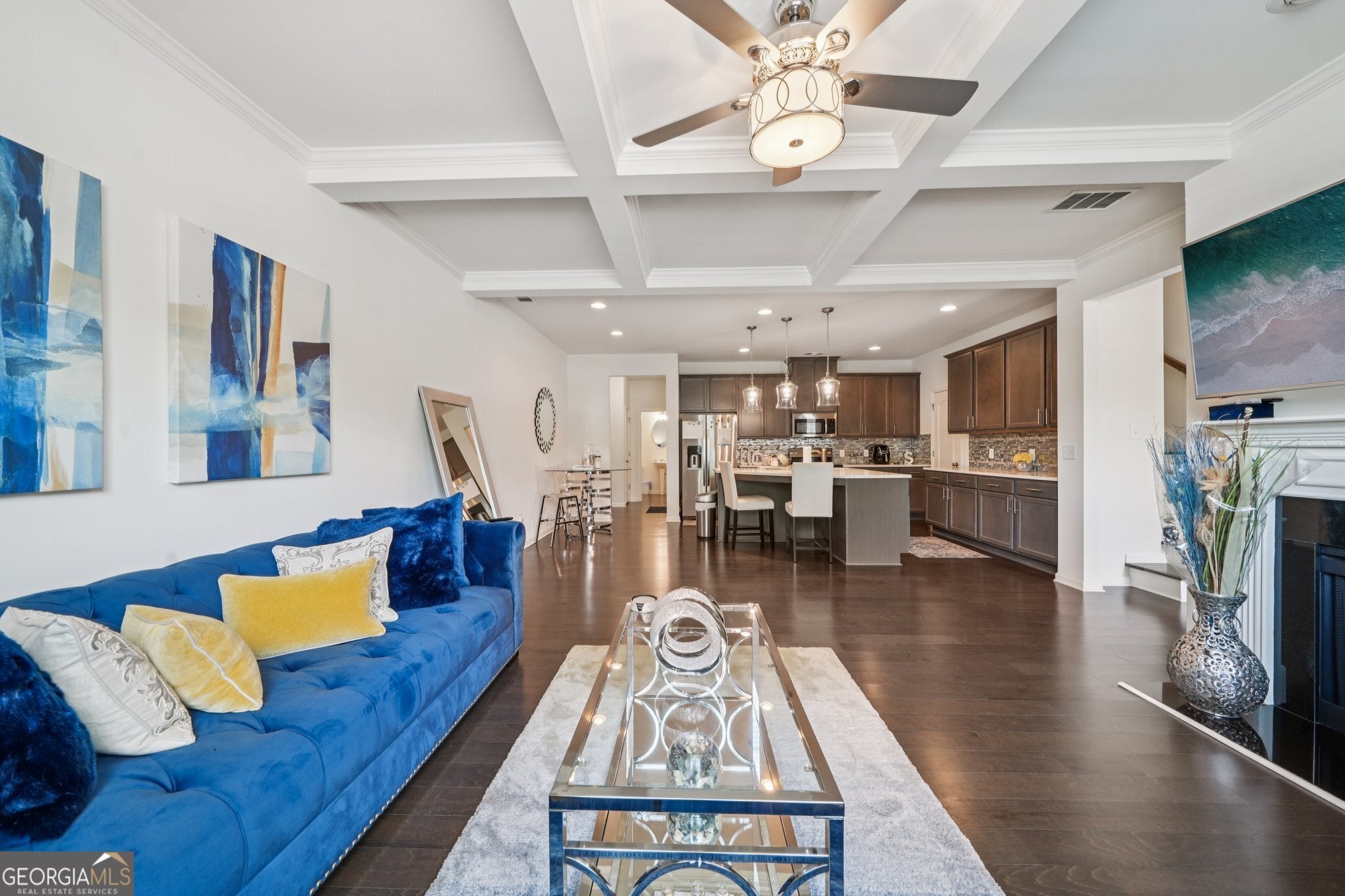 Move-In Ready Luxury Living at its Finest! This is a gorgeous Townhome in Renaissance at South Park - Why wait to build when you can move right in? Welcome to your dream home in the highly desirable Renaissance at South Park-where luxury finishes, low-maintenance living, and resort-style amenities give you the freedom to live life on your terms. This beautiful 3-bedroom, 2.5-bath townhome was designed for those who want both style and convenience. Enter through a spacious foyer into an elegant, open-concept layout perfect for entertaining or relaxing in comfort. Rich hardwood floors, striking columns, and coffered ceilings create a timeless, upscale vibe. Gather around the cozy fireplace or host with ease in the chef's kitchen featuring granite countertops, 42" cabinets, a sleek tiled backsplash, and an oversized island ideal for meals with family and friends. Upstairs, discover a large, flexible loft space-perfect for a home office, media room, or game area. The expansive primary suite is your personal retreat, accessed through French doors and offering a sitting area for unwinding, dual vanities, a spa-like garden tub, separate walk-in shower, and a spacious walk-in closet. Two additional bedrooms and a large laundry room ensure there's room for everyone and everything. Enjoy truly carefree living with an HOA that covers exterior maintenance, grounds, termite bond, and more-so you can travel, entertain, or just relax without the usual homeowner worries. Renaissance at South Park is more than a place to live-it's a lifestyle. Take advantage of resort-style amenities including a pool, tennis courts, clubhouse, playground, and scenic walking trails. Located less than 15 minutes from ATL Airport and close to Trilith Studios entertainment in Fayetteville, plus shopping, dining, and parks in Fairburn, you'll have everything you need at your fingertips. Homes in this community are moving fast, and it's easy to see why. Don't miss out on the chance to make this stunning, move-in ready townhome yours. Schedule your private tour today before it's gone! Live freely, entertain effortlessly, and enjoy the best of low-maintenance luxury at Renaissance at South Park. Your next chapter awaits. Start Building Your Dream Life Now~