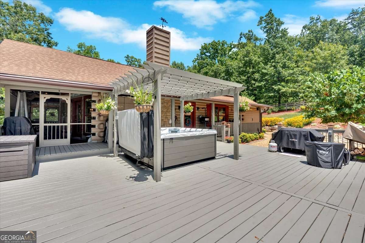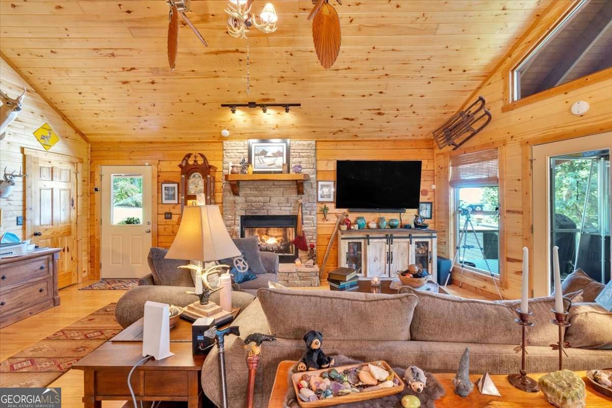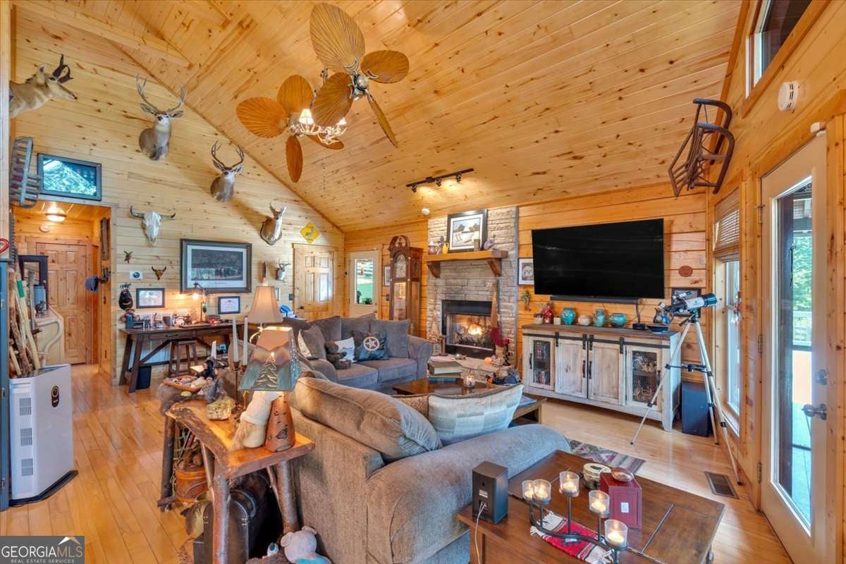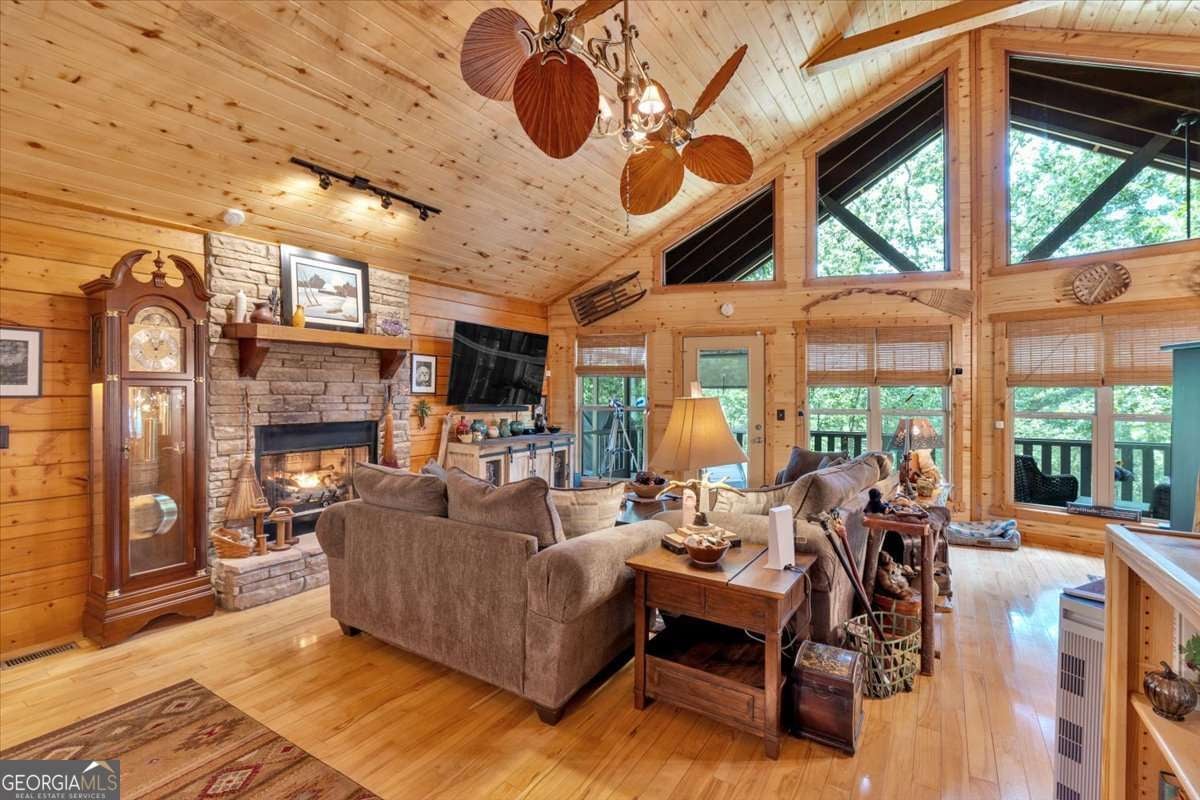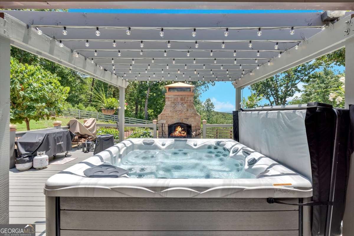 Authentic Log Cabin Retreat with with Spectacular Mountain Views! Solar Power & 2200kw Generac Generator....Outdoor Oasis in Talking Rock Creek Resort!!! Escape to the mountains and experience the charm of true log cabin living in this meticulously maintained 1,501 sq ft retreat, nestled on 4.99 private, beautifully landscaped acres in the desirable gated community of Talking Rock Creek Resort. With two additional lots available, this property offers room to expand or preserve as added privacy. This spacious 2-bedroom, 2-bath cabin is loaded with upgrades and thoughtfully designed to blend rustic charm with modern comfort. Inside, you'll find granite countertops, rich wood finishes, and an open-concept layout that flows into a serene screened-in porch, perfect for enjoying year-round mountain air. Step outside into a true outdoor oasis, featuring: *Hot tub under the stars *Pergola for shaded relaxation *Beautiful rock wood-burning fireplace ideal for cool evenings *Immaculate landscaping that creates a peaceful, park-like setting Energy efficiency meets off-grid peace of mind with a Generac Solar System, complete with 15 solar panels, an inverter, and a powerful 9 kW battery bank. Located in Talking Rock Creek Resort, you'll have access to pools, tennis courts, hiking trails, a private lake, and more. Whether you're seeking a full-time home, weekend getaway, or income-producing property, this log cabin delivers unmatched character, privacy, and sustainability. This home is a rare find, schedule your private showing today and experience the magic of mountain living! Minutes to Carters Lake and Marina! Short Term Rentals allowed and very profitable year round! Fall is coming up, don't wait!