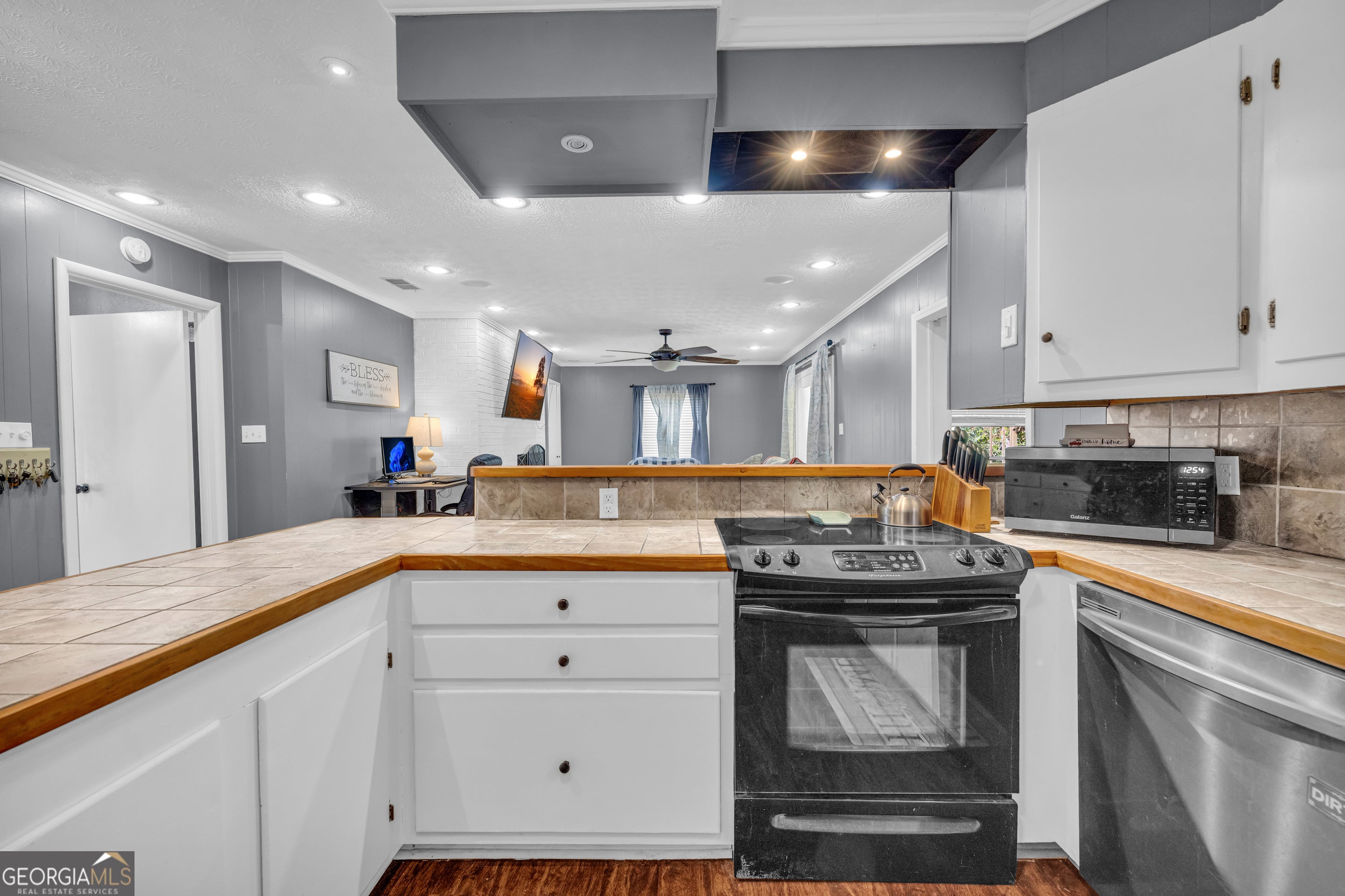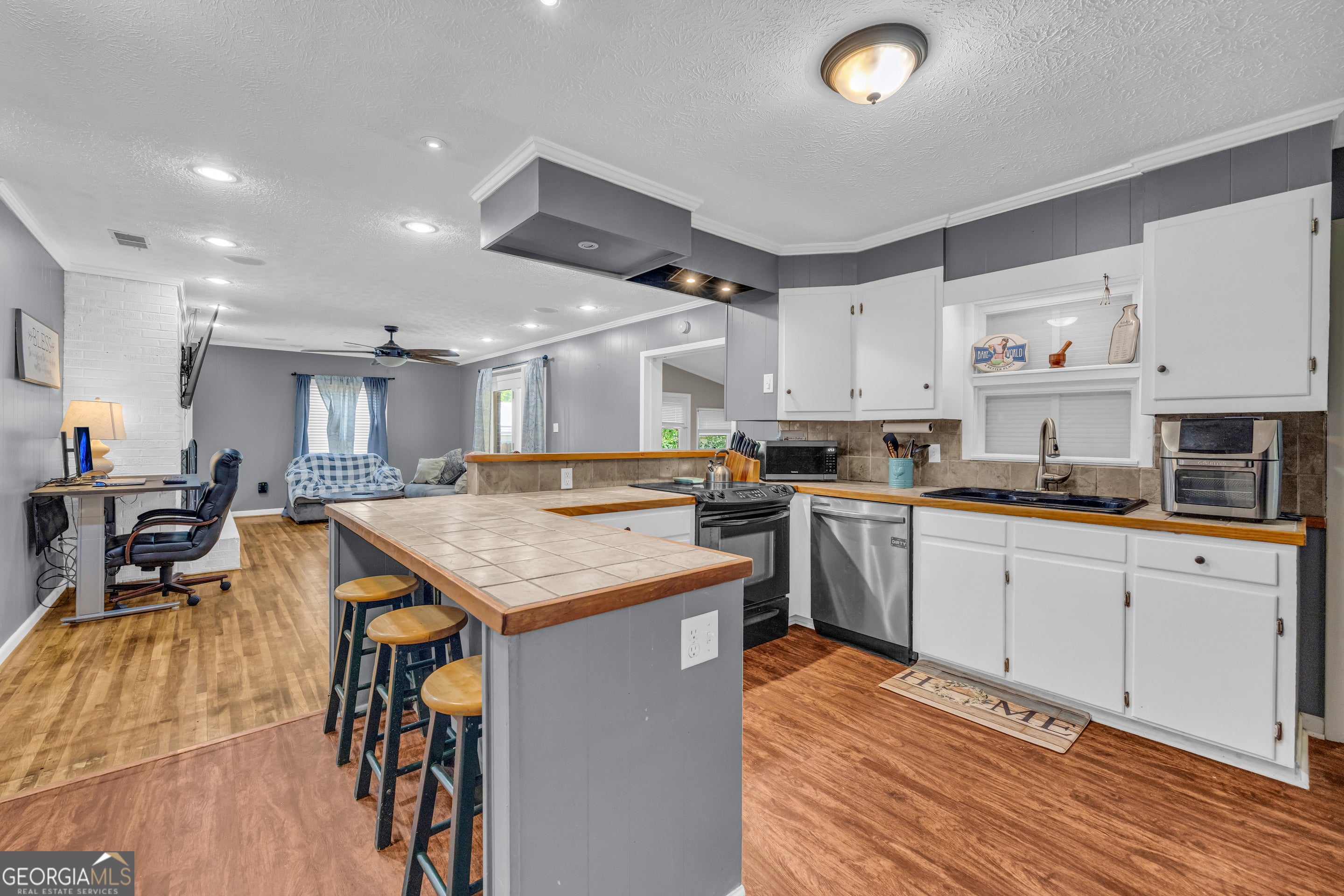 Discover this inviting 4-bedroom, 2-bathroom, 4 sided brick gem, perfectly situated under a mile from vibrant downtown Hartwell. The 4th bedroom is a flex room that can be used as an office, dinning room, or family room to fit your needs. Walking distance to the YMCA and all that downtown Hartwell has to offer. Step inside to find gleaming hardwood floors, a versatile office or flex space, and a spacious master suite. The modern kitchen shines with sleek tile countertops, a stylish backsplash, a breakfast bar, and ample pantry storage. Cozy up by fireplaces in both the living and dining areas, perfect for chilly evenings. Outside, enjoy a large private fenced backyard, covered front and back porches, a carport, and a paved driveway. Just 10 minutes from Lake Hartwell's recreational delights, this home is ready to become your family's haven. Please note some photos are virtually staged to help imagine the potential of this home.