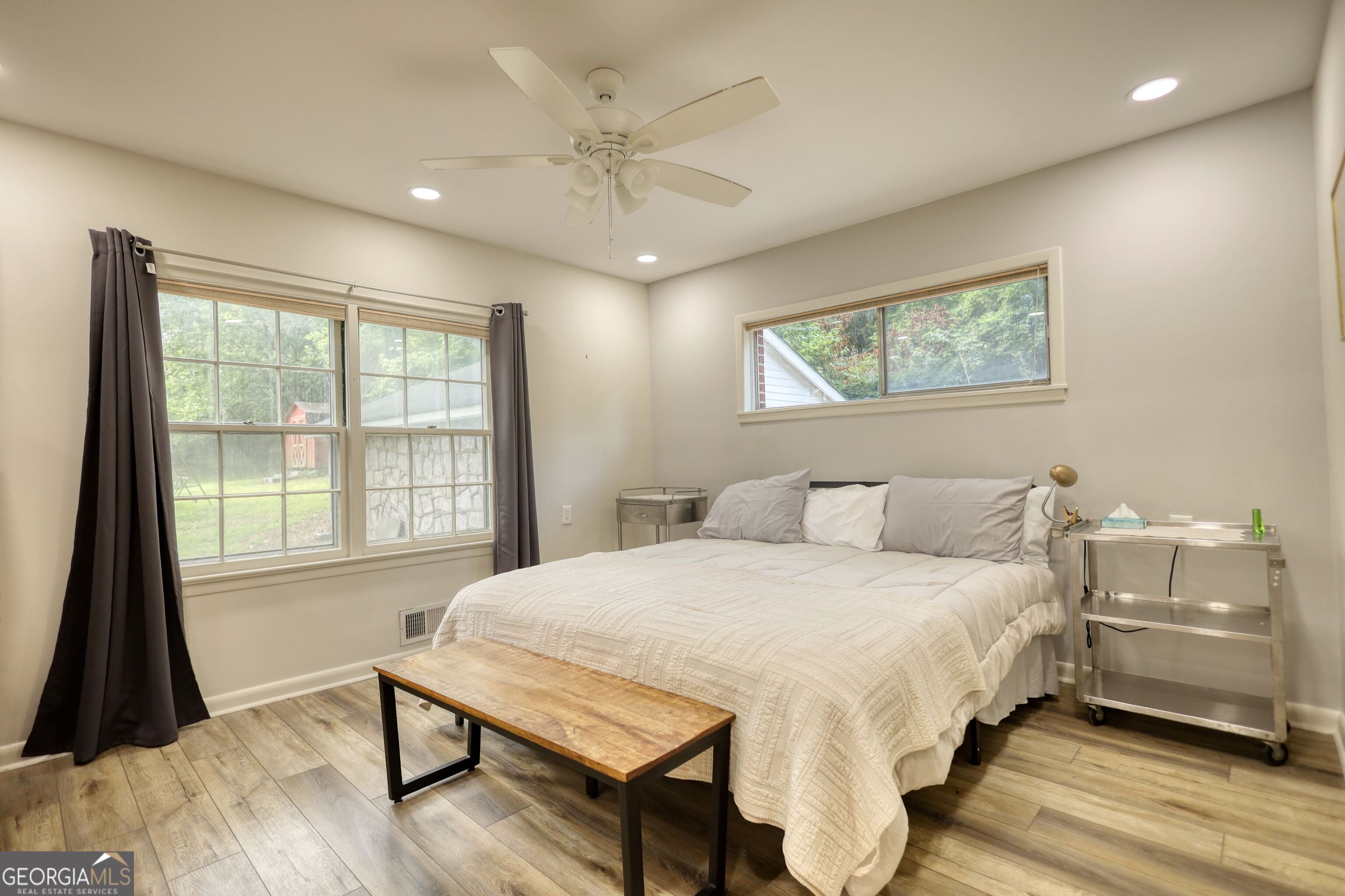 Welcome to your next chapter in Conyers, where charm, space, and thoughtful upgrades come together in this beautifully updated traditional home. All furnishings are chosen for style, function, and comfort, blending modern needs with classic charm. The home is turnkey, yet flexible: purchase as seen for a seamless transition or request a blank slate. Set on land once part of an old pecan orchard, this property is anchored on granite and surrounded by mature trees, a white picket fence, and a peaceful stream-offering the perfect blend of nature and accessibility. Inside, you'll find a layout designed for real living, with multiple living spaces on the main level and a finished basement-ideal for large families, multi-generational living, or anyone needing space to grow and create. This beautifully furnished home is thoughtfully curated for comfortable, everyday living, not staged as a rental. Every bedroom features new, quality beds (king, queen, and twins), inviting living spaces, and all the essentials-right down to kitchenware, iron and board, and even unique treasures. The kitchen is open and bright, featuring abundant cabinet space, stainless steel appliances, a center island, and even a full walk-in pantry. There are two refrigerators and existing washer/dryer upstairs and downstairs-both locations have a washer and dryer already installed for added flexibility. The sunroom is a serene retreat, perfect for morning coffee or evening reading, while the cozy brick fireplace in the main living area invites warm gatherings year-round. The oversized Owner's Suite boasts a massive wall to wall closet and a magazine-worthy, fully renovated bathroom with stunning floor-to-ceiling tile and marble herringbone shower floors. Master bedroom and bath is handicap accessible. Original hardwood floors-newly refinished-run through the bedrooms, and new flooring throughout the main living area giving the home timeless warmth. The full basement includes its own private entrance and existing laundry area, making it perfect for a separate living space, home office, game room, or creative studio. Included in the sale is a distinctive antique dental cabinet-filled with vintage tools-serving as both a unique conversation piece and a testament to the home's character. If desired, furnishings and collectible items can be removed prior to closing, letting you personalize the space! Additional highlights include: Detached garage + full workshop space! Full attic for extra storage! Granite foundation for both home and garage! NO HOA! Easy access to I-20 for a quick Atlanta commute! Walking distance to local shops and conveniences! Whether you're dreaming of city access with a country feel, a home with room for everyone, or a space to put down roots and make your own-this home offers endless potential and uncommon value. Homes with this much versatility and soul don't last long. Schedule your tour today!