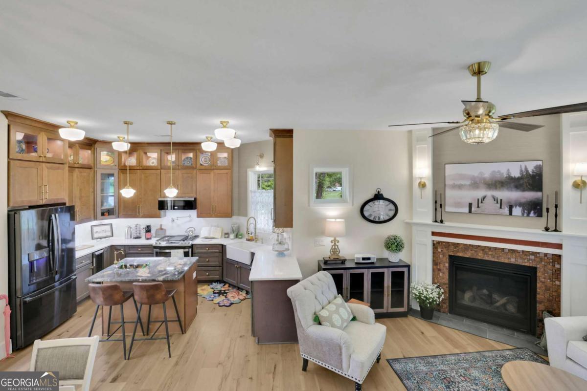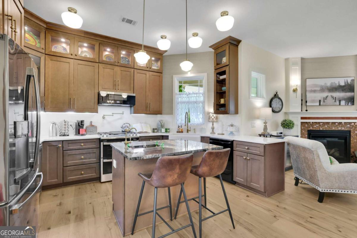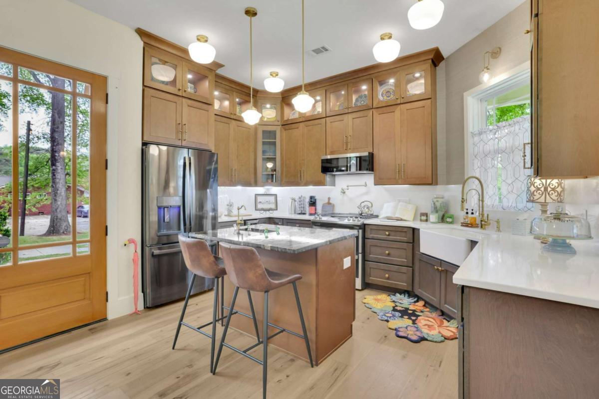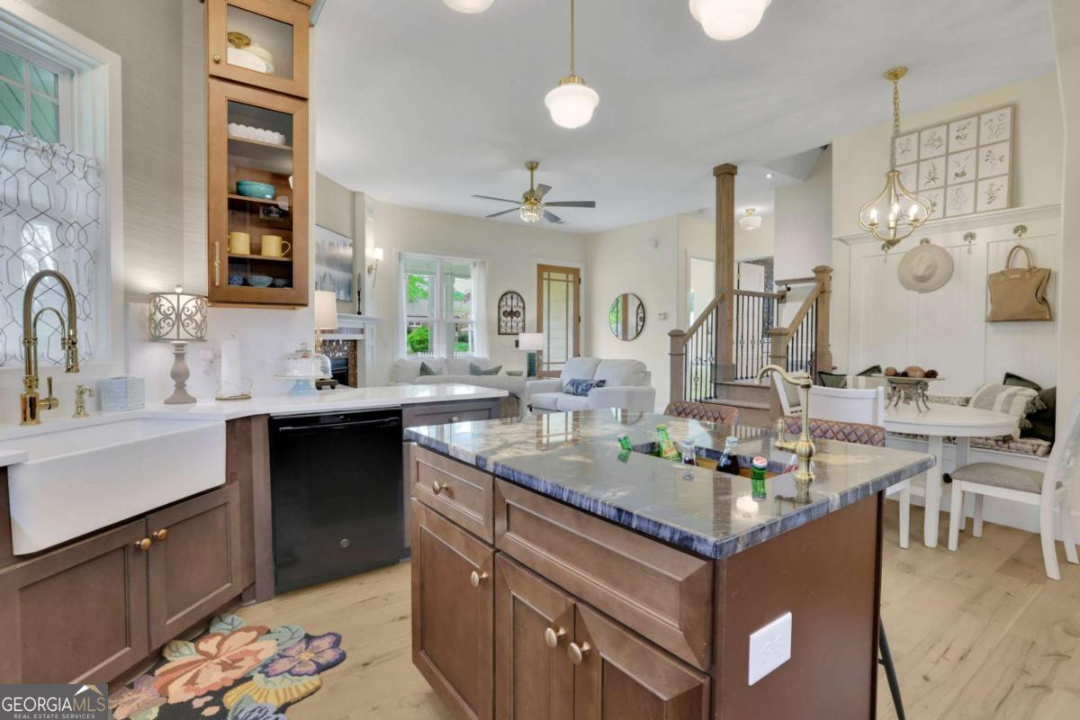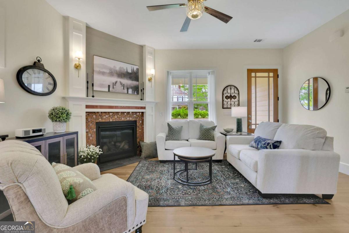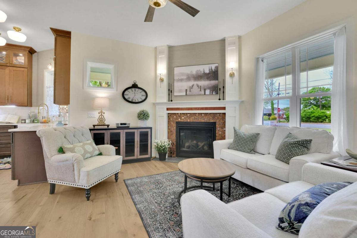 Welcome to this stunning two-story Craftsman style home, perfectly blending timeless character with thoughtful modern upgrades. Located in the heart of Austell, this newly constructed 3 bedroom 2 bathroom home offers 1,900 square feet of stylish, functional living space. Step inside to an open concept main floor that's ideal for both entertaining and everyday living. The chef's kitchen features sleek modern cabinetry, stone countertops, brand new appliances, and a large center island with a beverage sink and bar seating. A dedicated wine pantry with cooler is the perfect touch for those who love to entertain. The dining area offers built in seating with storage, while the cozy sitting area with gas fireplace invites you to relax and unwind. Upstairs, you will find the spacious primary suite complete with a walk in closet and a spa inspired bathroom featuring a double vanity and a luxurious soaking tub. Full separate tile shower creates a relaxing space to enjoy. A secondary living space with gas fireplace is perfect flexibility for a home office work space, entertainment area, or study. Separate laundry room has built in cabinets for storage, and a counter with utility sink that can also be used as a coffee bar. The two secondary bedrooms are located on the main floor, both with built in window seating with storage, large closets, and large windows for exceptional lighting. The main floor also includes a full bathroom with double vanity, and a beautifully tiled shower surround and tub. The detached garage offers additional parking as well as storage. The deck and porch are made with durable Hardie plank, for low maintenance curb appeal. Gas grill connections are already there, just waiting for you to connect and start entertaining! The partial wrap around front porch offers plenty of space for your personal touches to relax and make it your own. The home is professionally landscaped, complete with an irrigation system for easy upkeep. This home has many extra features such as additional lighting in all rooms, ceiling fans, and thoughtful design and craftmanship. Beautiful design, comfort, and location makes this home a one of a kind. Close to shopping, dining, parks, and highways creates an unbeatable Don't miss out and schedule your tour today!