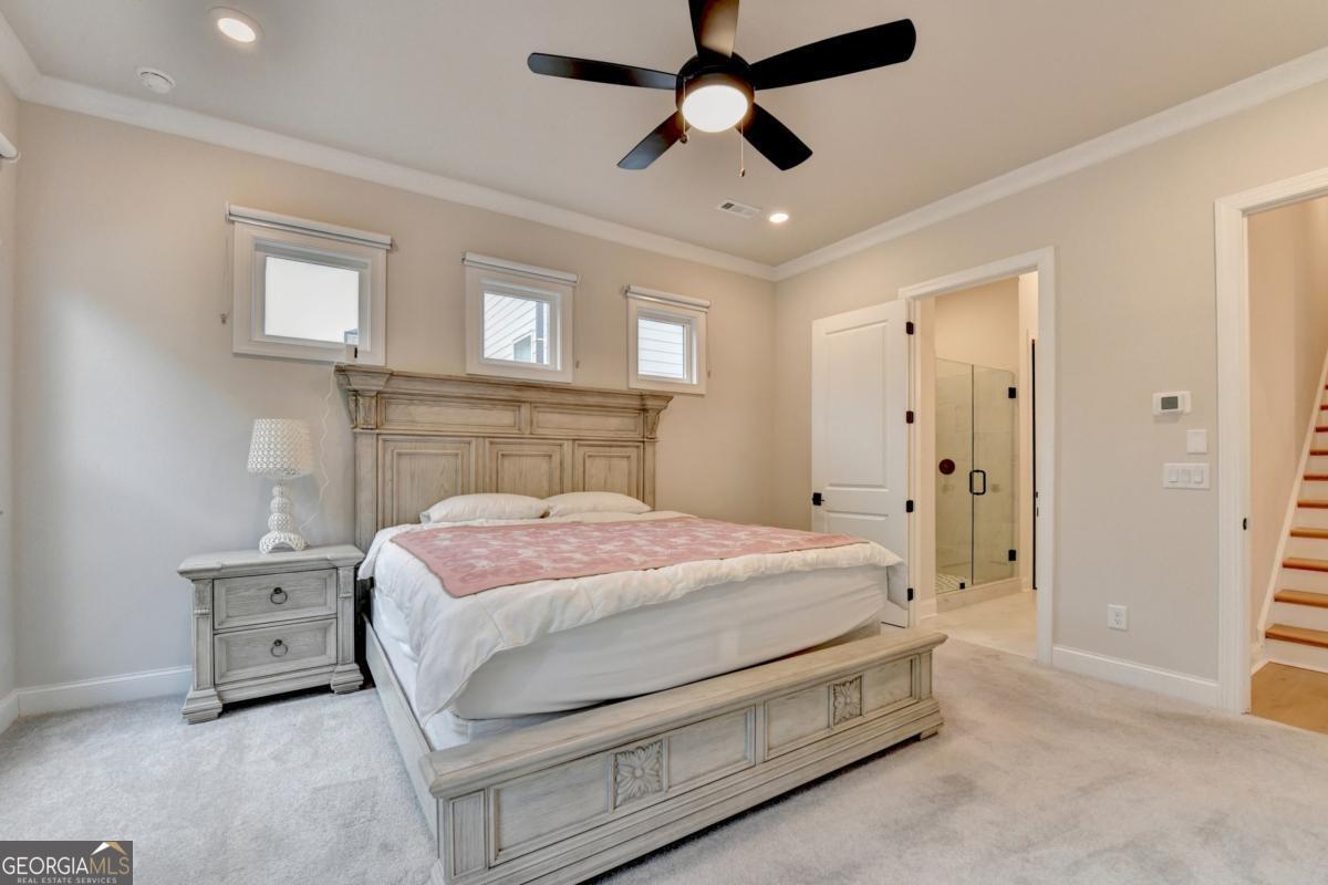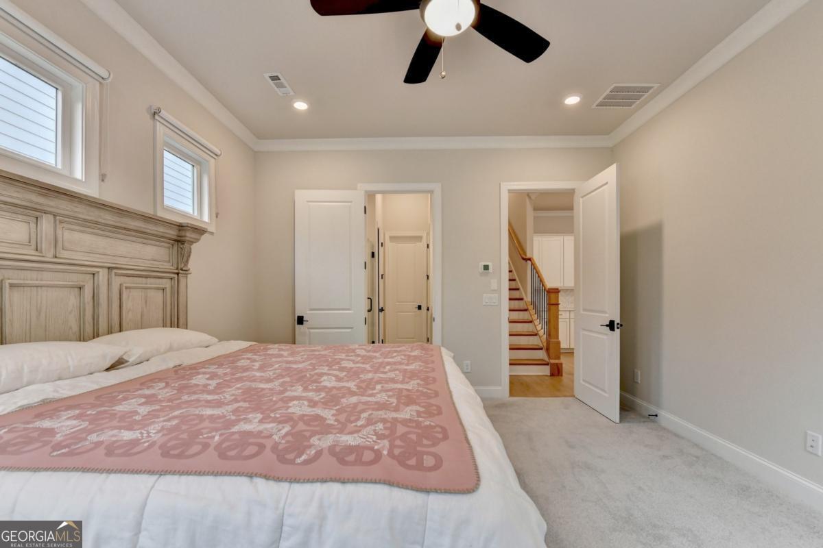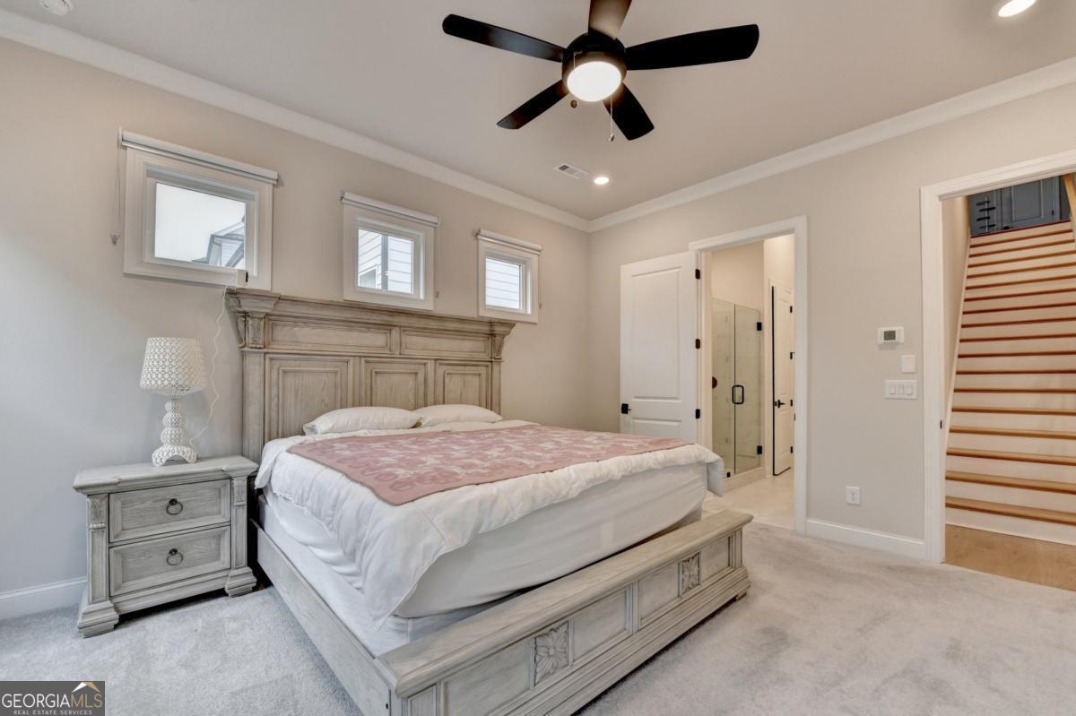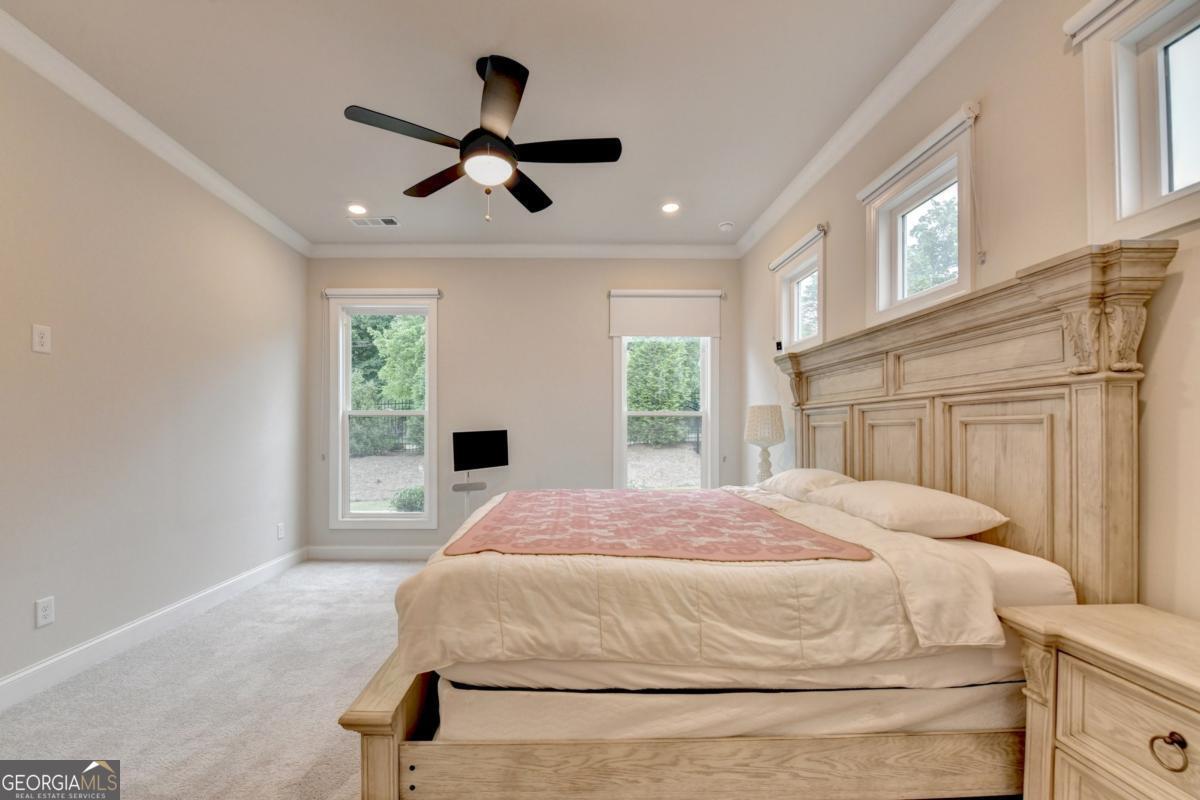 LUXURY LIVING IN GATED ELLINGTON OWNER'S SUITE ON MAIN PRIME SUWANEE LOCATION Welcome to 3301 Bennett Creek Lane where sophisticated design meets effortless living in the heart of Suwanee's most desirable gated community. This elegant Bayfield floor plan offers the rare convenience of dual bedrooms on the main level, including a luxurious owner's suite featuring a spa-inspired bath with dual vanities, frameless glass shower, and a spacious walk-in closet. Step inside and be greeted by an expansive, sun-drenched open layout that seamlessly blends function and flair. The gourmet kitchen is a chef's dream complete with a large quartz island, stainless steel appliances, custom tile backsplash, and a butler's pantry perfect for entertaining. The sunroom adds a graceful touch, ideal for intimate dining or a serene reading nook. Upstairs, you'll discover a private guest retreat with a full bath, as well as a versatile loft space perfect for a home office, media lounge, or playroom. Generous walk-in attic storage ensures all your seasonal items are easily accessible. Ellington is a gated, master-planned community offering exceptional amenities: a resort-style pool, elegant clubhouse, five lush pocket parks, and a private paved trail leading directly to Peachtree Ridge Park. Zoned for the top-ranked Peachtree Ridge School District and just minutes from Suwanee Town Center, fine dining, shopping, festivals, and more. This is more than a home; it's a lifestyle upgrade. Don't miss your chance to own this rare gem in one of Suwanee's most coveted neighborhoods. Schedule your private tour today!