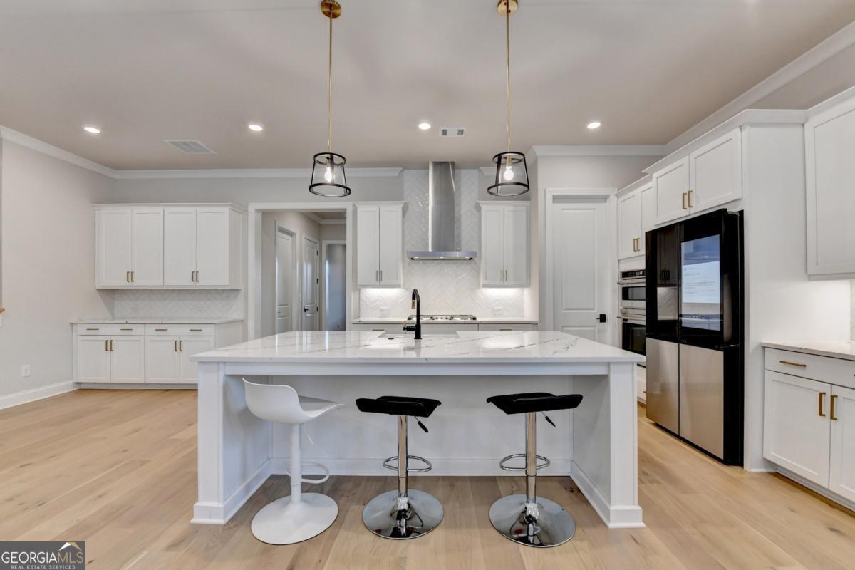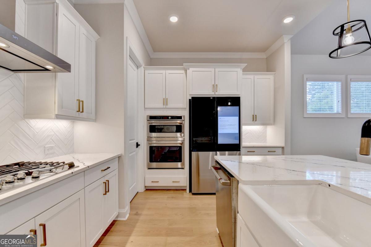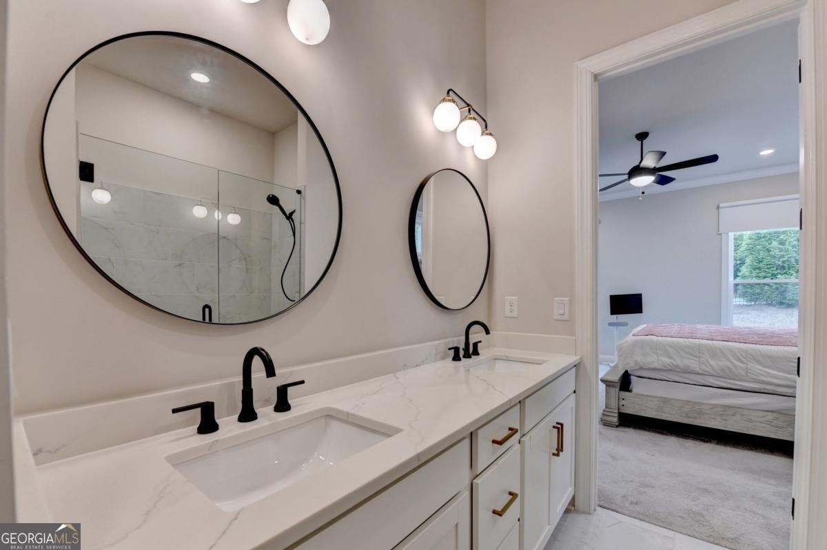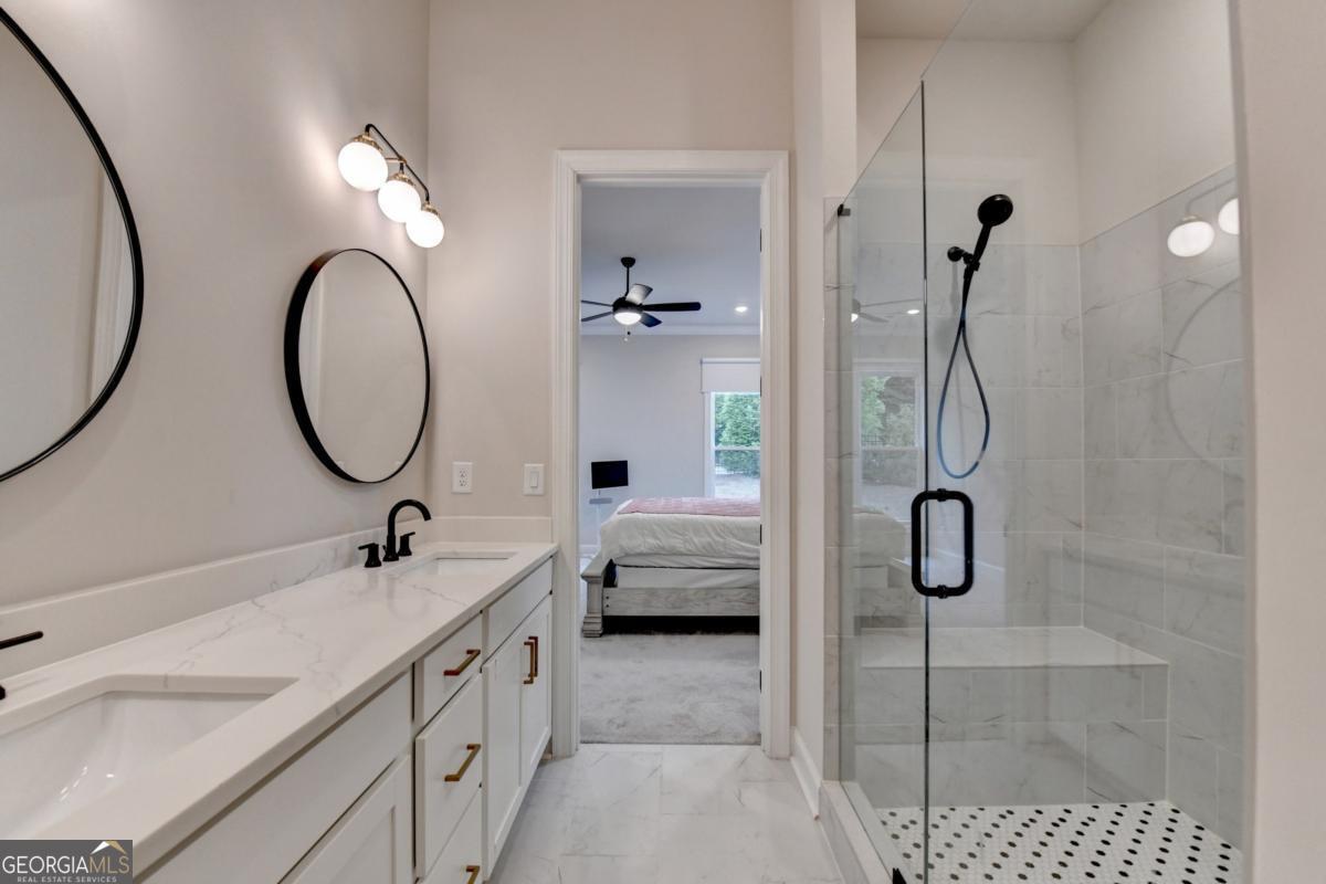 LUXURY LIVING IN GATED ELLINGTON OWNER'S SUITE ON MAIN PRIME SUWANEE LOCATION Welcome to 3301 Bennett Creek Lane where sophisticated design meets effortless living in the heart of Suwanee's most desirable gated community. This elegant Bayfield floor plan offers the rare convenience of dual bedrooms on the main level, including a luxurious owner's suite featuring a spa-inspired bath with dual vanities, frameless glass shower, and a spacious walk-in closet. Step inside and be greeted by an expansive, sun-drenched open layout that seamlessly blends function and flair. The gourmet kitchen is a chef's dream complete with a large quartz island, stainless steel appliances, custom tile backsplash, and a butler's pantry perfect for entertaining. The sunroom adds a graceful touch, ideal for intimate dining or a serene reading nook. Upstairs, you'll discover a private guest retreat with a full bath, as well as a versatile loft space perfect for a home office, media lounge, or playroom. Generous walk-in attic storage ensures all your seasonal items are easily accessible. Ellington is a gated, master-planned community offering exceptional amenities: a resort-style pool, elegant clubhouse, five lush pocket parks, and a private paved trail leading directly to Peachtree Ridge Park. Zoned for the top-ranked Peachtree Ridge School District and just minutes from Suwanee Town Center, fine dining, shopping, festivals, and more. This is more than a home; it's a lifestyle upgrade. Don't miss your chance to own this rare gem in one of Suwanee's most coveted neighborhoods. Schedule your private tour today!