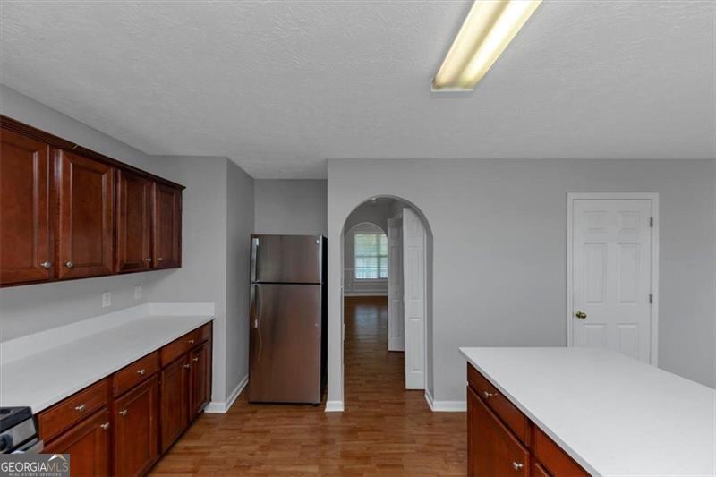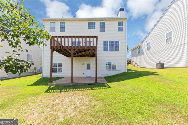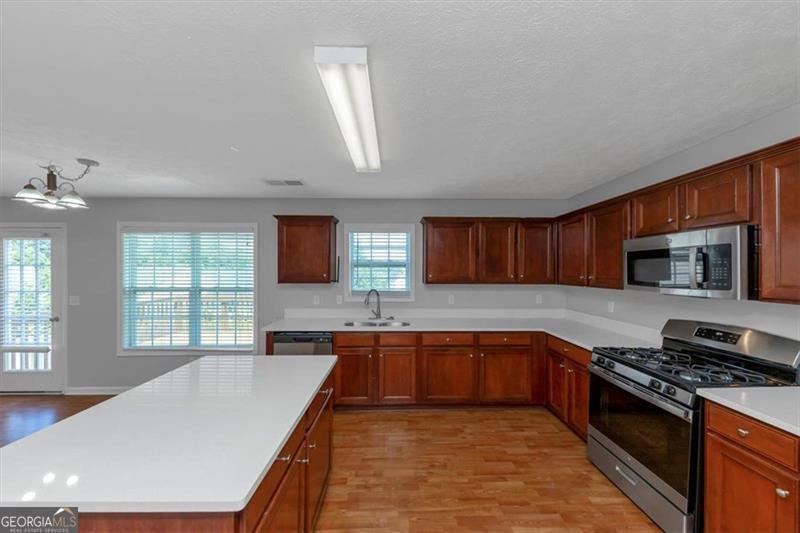 Welcome to this stunning and spacious two-story home, featuring a finished basement with bonus room and walk-out access to a private patio-perfect for entertaining or relaxing outdoors. Enjoy your morning coffee on the charming front covered porch, and step inside to a warm and inviting family room with a cozy fireplace, seamlessly connected to the kitchen. The kitchen is a chef's dream, boasting beautiful wood-stained cabinets, quartz countertops, a large island with breakfast bar, and stainless steel appliances that stay. Adjacent is a bright dining area. Enjoy quiet evenings on the back deck with easy access from the family room/kitchen. The formal dining room features elegant chair rail moulding, while laminate wood flooring runs through high-traffic areas downstairs for both beauty and durability. Ceiling fans throughout the home add comfort and energy efficiency. Retreat to the oversized primary suite, complete with a separate sitting area, tray ceiling, and huge walk-in closet. The luxurious primary bathroom includes double sinks, a soaking tub, and a separate shower for ultimate relaxation. Additional features include a laundry room and blinds through the home. Don't miss this gem!