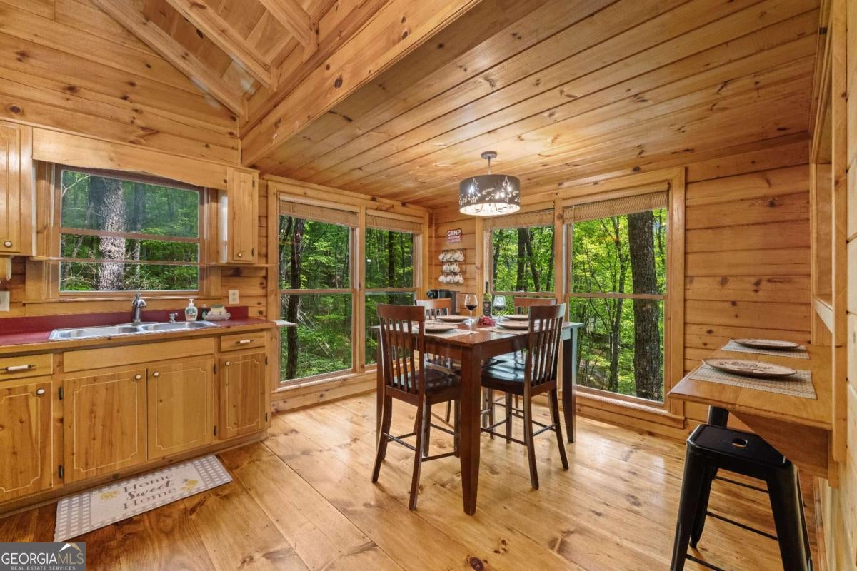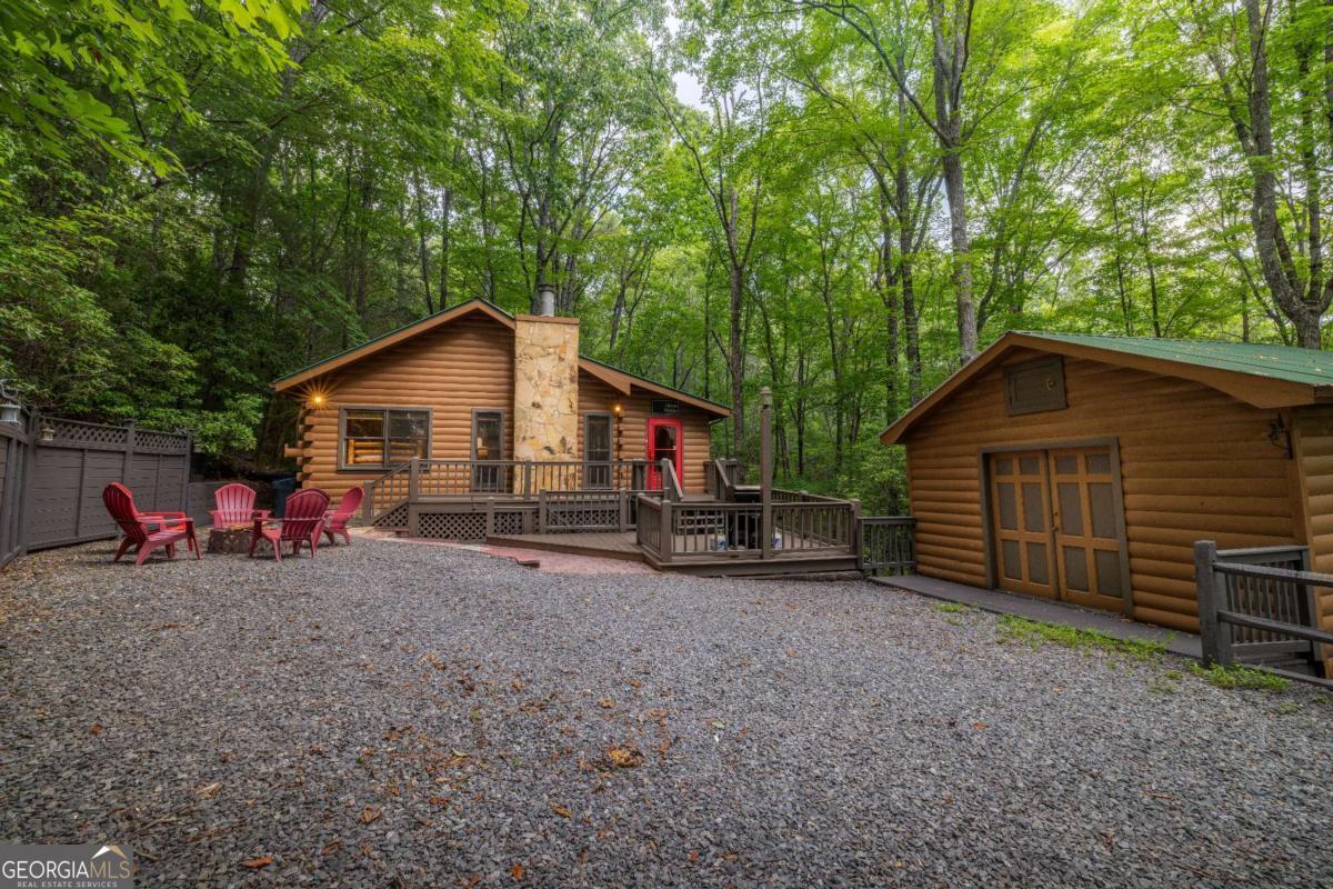 Welcome to your tranquil escape in the heart of Cherry Log! Nestled on a serene 1.1-acre lot within the desirable Cherry Lake subdivision, this charming 3-bedroom, 2-bathroom cabin offers both privacy and community amenities, including exclusive access to the picturesque Cherry Lake. Currently serving as a successful short-term rental, this inviting retreat also presents a fantastic opportunity for a full-time residence. As you step inside, you'll be welcomed by the warm ambiance of the main level's cozy living room, complemented by two comfortable bedrooms and bathroom. Descend to the fully finished basement, where extra sleeping accommodations await in the bunk room, alongside a vibrant game room perfect for entertainment. The terrace-level patio invites you to unwind in the hot tub, surrounded by lush woods, offering an idyllic setting for serenity and seclusion. Whether you're seeking a lucrative investment or a peaceful home to call your own, this cabin in Cherry Log is a delightful blend of comfort and natural beauty. Don't miss the chance to make it yours!