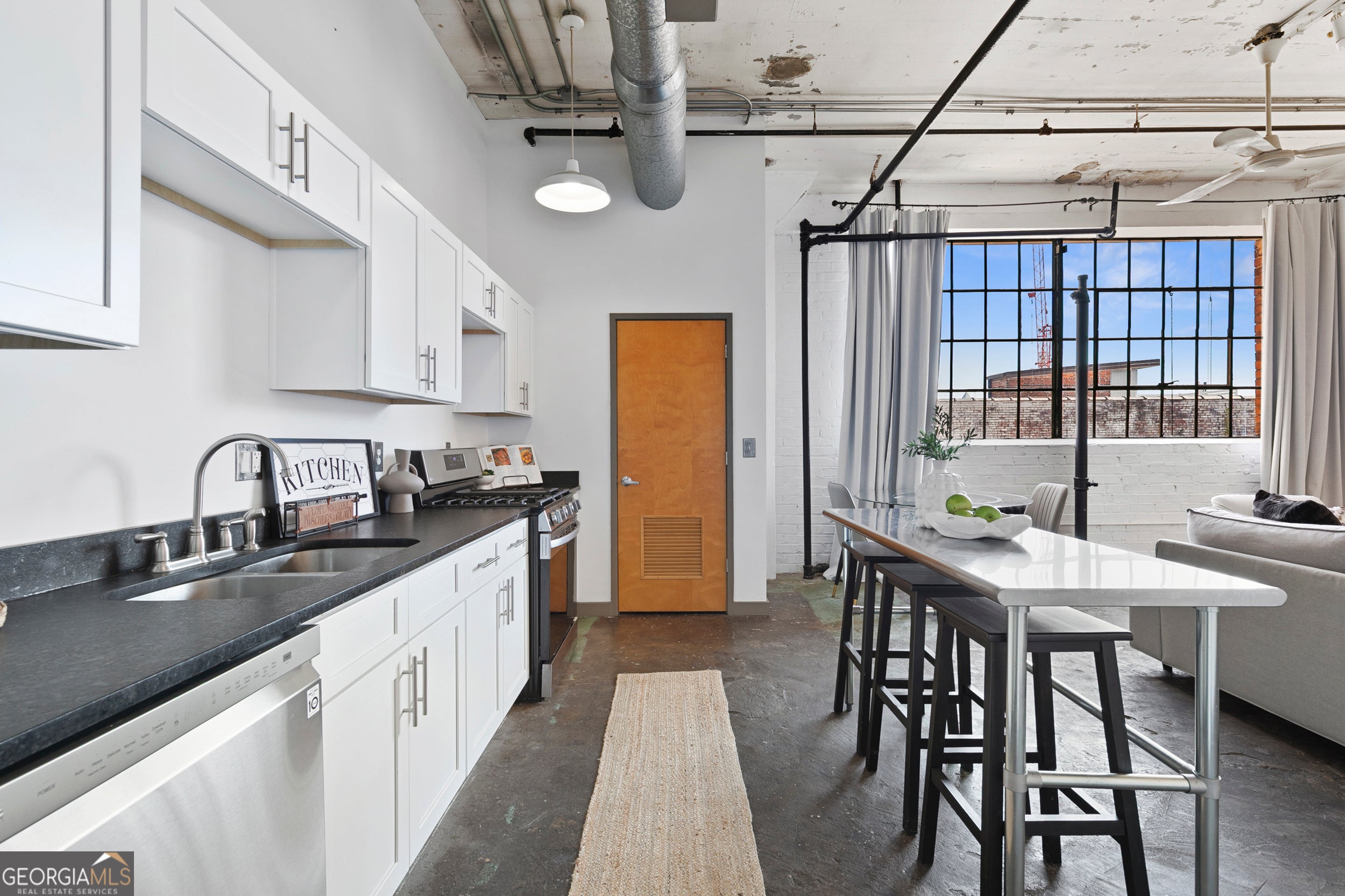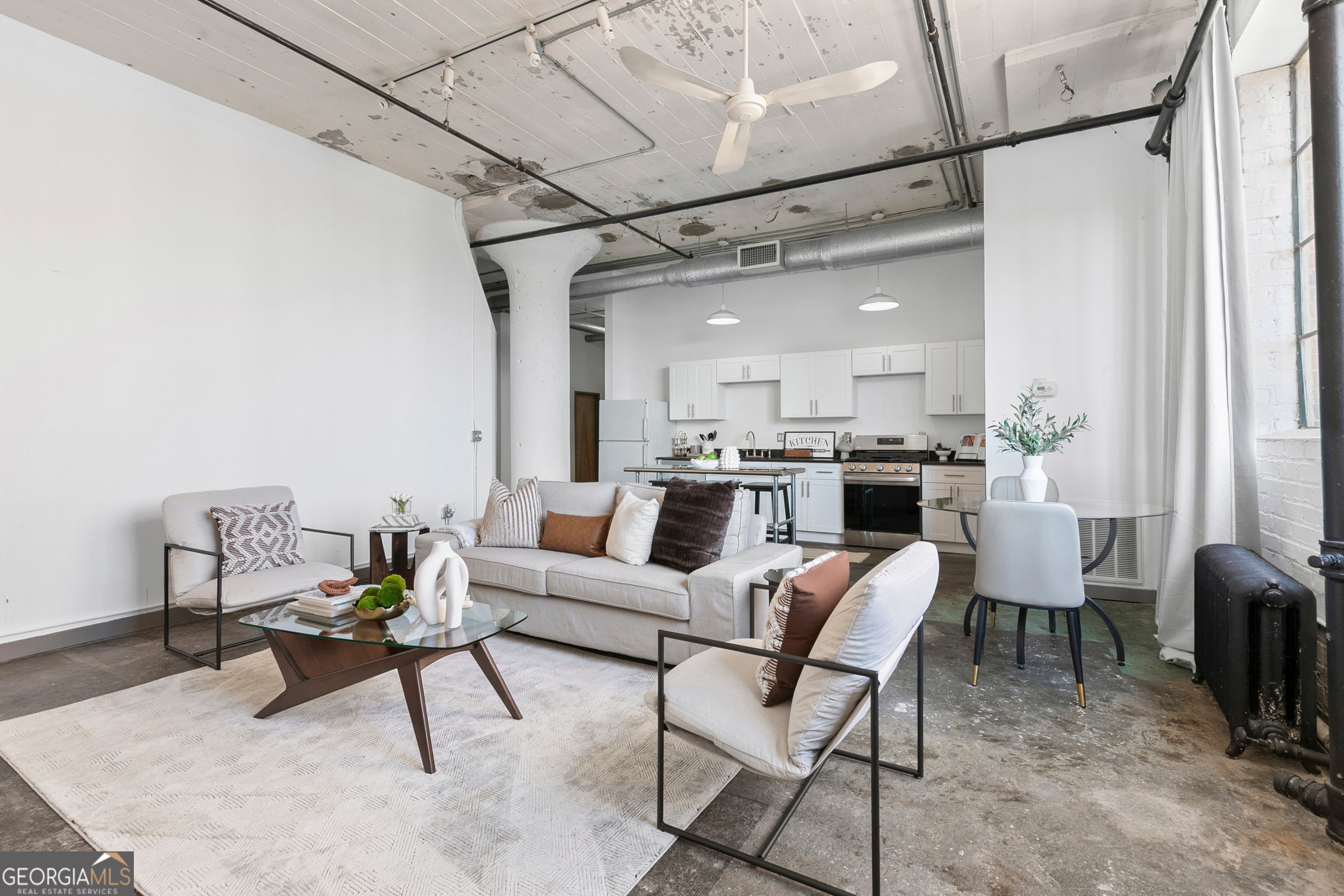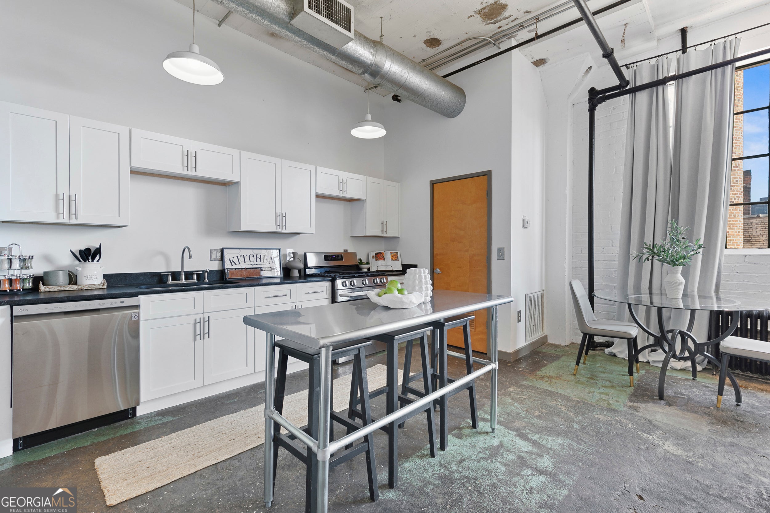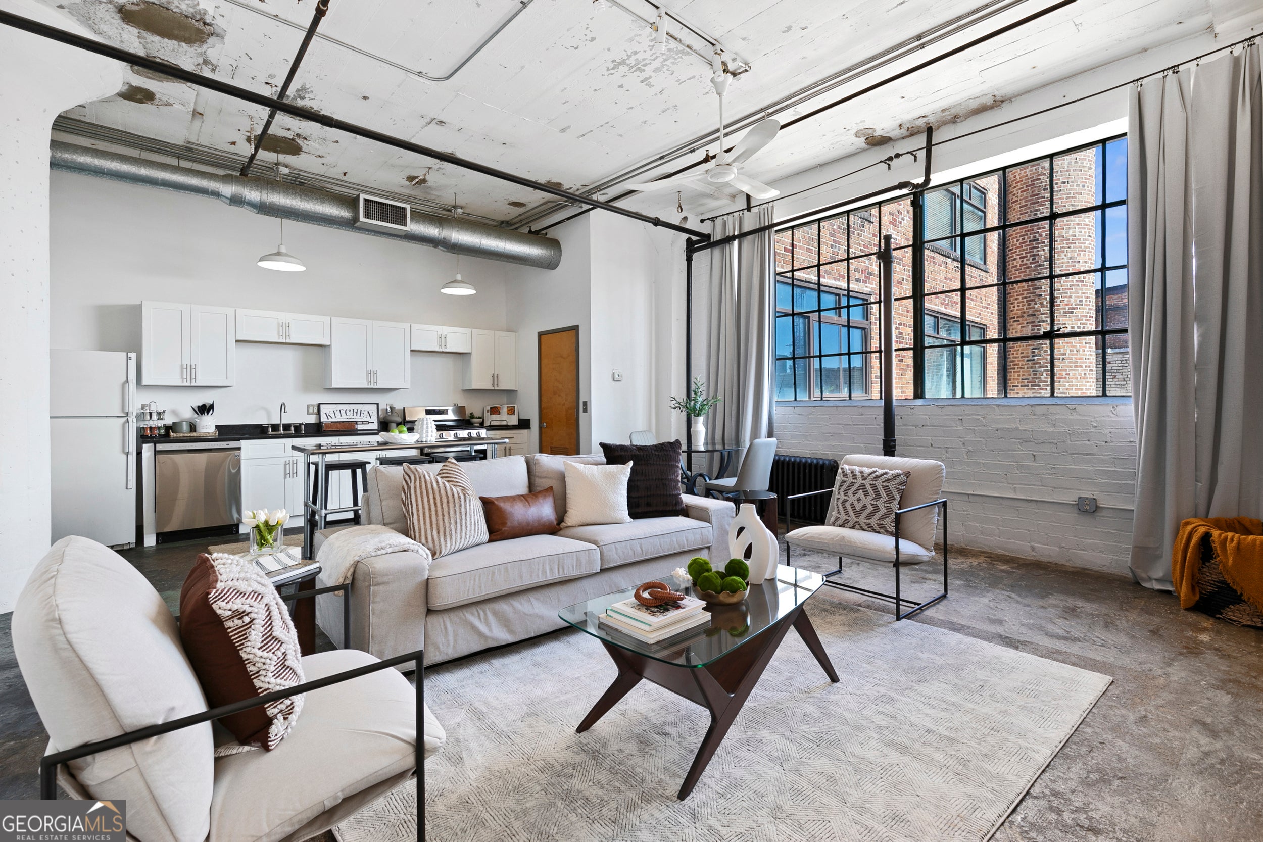 Welcome to Downtown Atlanta's most vibrant Loft District! This Sought after industrial-chic loft offers the perfect blend of style and location. This boutique building is a true historic landmark listed in the National Historic Registry, hosting 48 exclusive residences! Conveniently located just steps from Georgia Tech, the Georgia Aquarium, the Georgia World Congress Center, Mercedes Benz Stadium, and Centennial Olympic Park, you're surrounded by the city's best attractions and fine dining. Inside, enjoy soaring ceilings that flood the space with lots of natural light, expansive windows, polished concrete floors in true authentic loft fashion, you cant forget about those cozy concrete walls. Enjoy your own secured assigned parking space and a super affordable HOA!! After a long day, head up to the rooftop terrace for unbeatable skyline views. Ideal for entertaining or unwinding, loft living doesn't get hotter or more convenient than this!