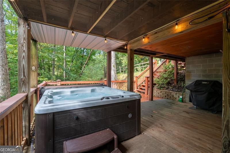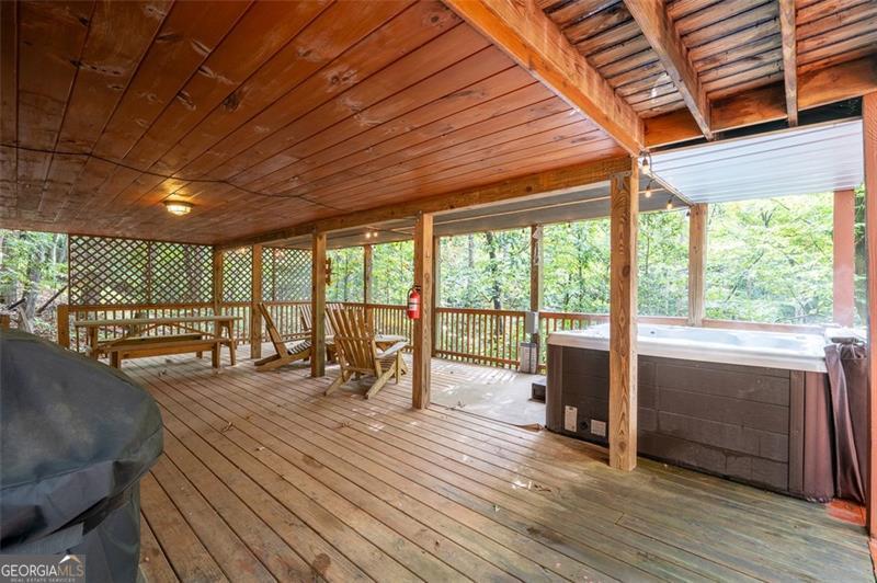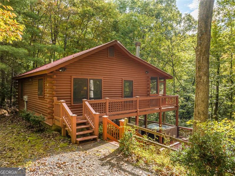 Nestled amidst the majestic Blue Ridge mountains, this charming cabin offers a unique opportunity to escape the hustle and bustle of daily life and immerse yourself in nature's tranquility. Located within 10 miles of downtown Blue Ridge and walking distance to one of the three community lakes, the serene beauty of this location is unparalleled while making it a dream retreat for nature enthusiasts, adventurers, and those seeking a peaceful oasis. The well-appointed kitchen is designed for convenience, enabling guests to prepare meals during their stay. A generous deck, complete with hot tub and outdoor games provides a perfect space for relaxation and entertainment. Offered fully furnished in a warm, rustic style, this cabin is truly turnkey, ready for full-time living, weekend getaways, or as a vacation rental investment. Seize this remarkable opportunity today to own a piece of paradise!