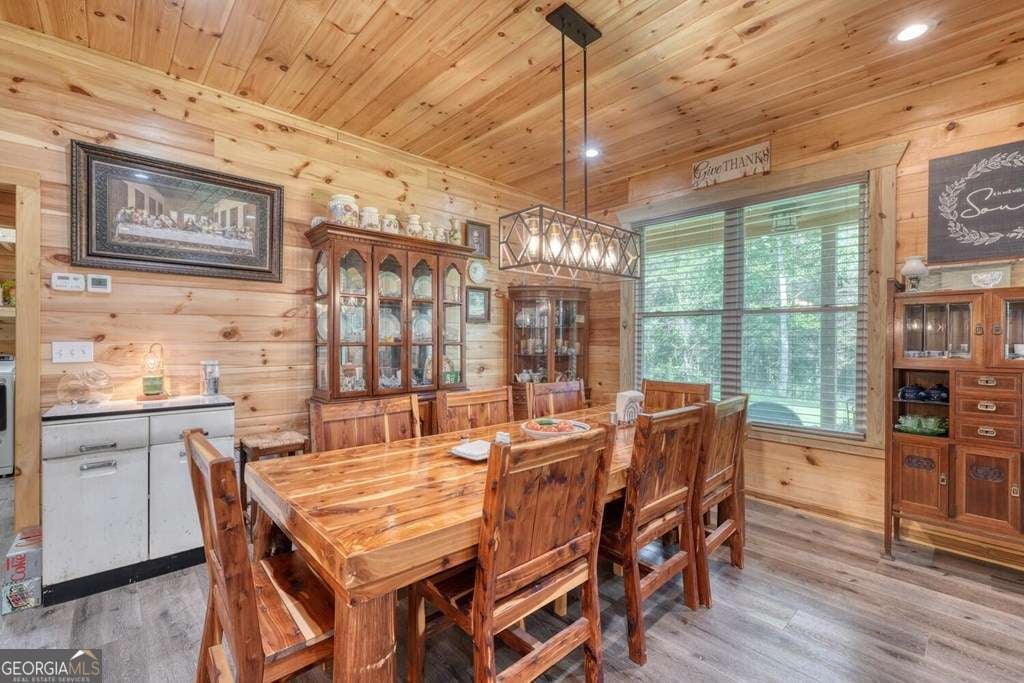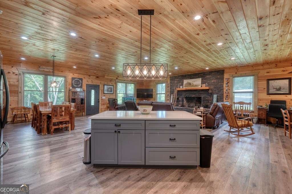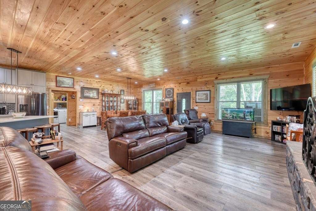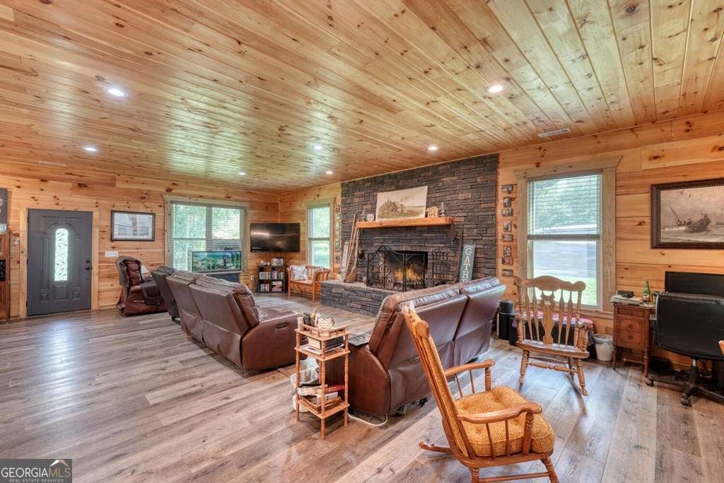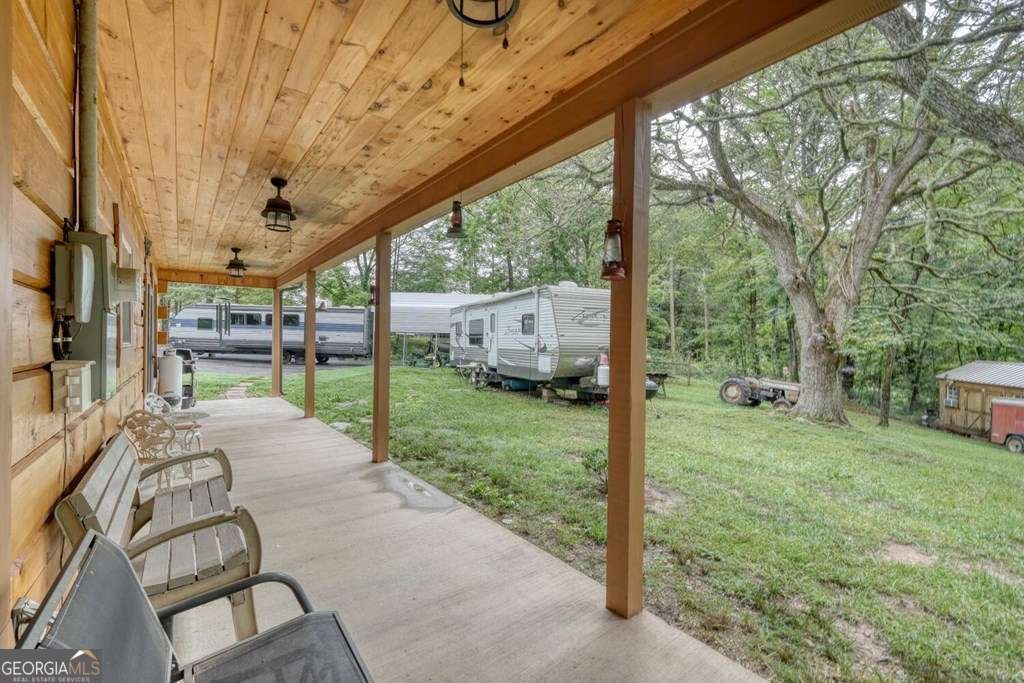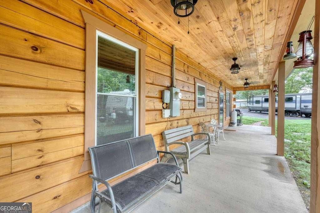Nearly New Custom Log Home Near Lake Nottely! Built in 2022, this beautifully crafted one-level log home offers easy, step-free living and a warm, open layout. The spacious great room features vaulted ceilings, a real masonry wood-burning fireplace, and a large kitchen perfect for entertaining. Enjoy peaceful mornings and evenings on both the covered front and rear patios. The home includes 2 bedrooms and 2 full baths, all situated on a very gentle, fully fenced 1-acre lot-ideal for pets or gardening. Additional features include a detached air-conditioned workshop, extra storage building, carport,plus a RV hook up. Located just 5 minutes from Poteete Creek Recreation Area on Lake Nottely. No HOA or deed restrictions-bring your boat, RV, and your freedom!
