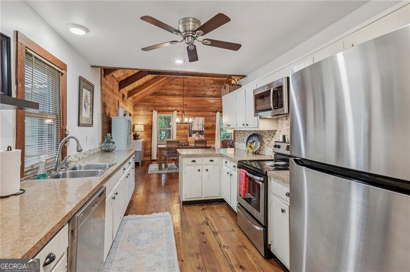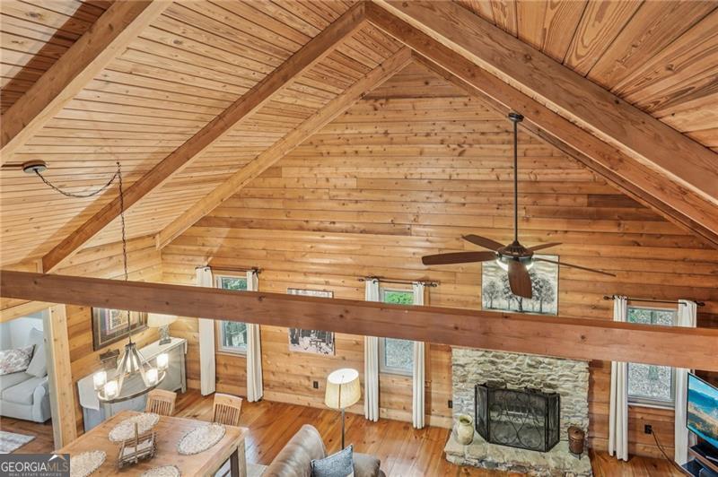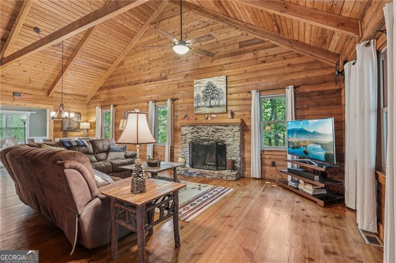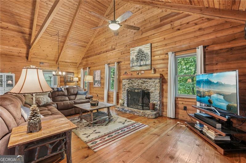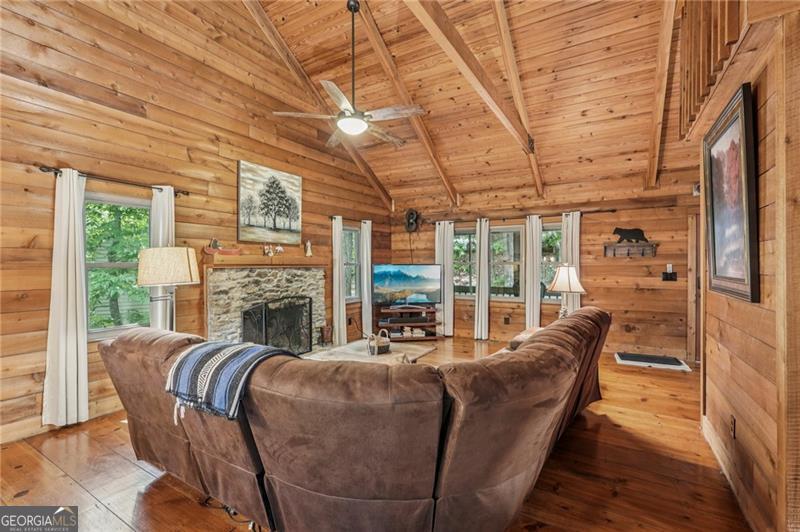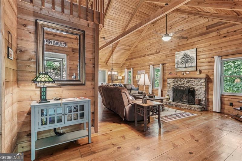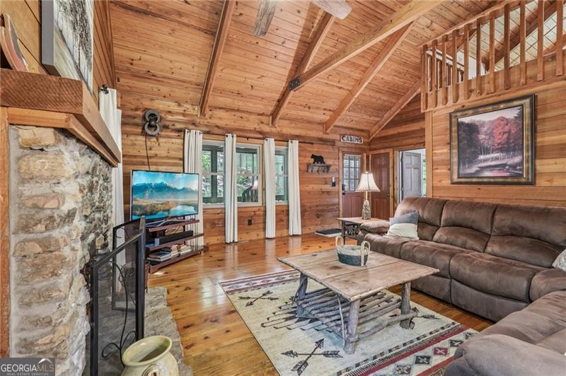 Renovated Plummer Cabin Steps from Lake Petit! Turnkey & Rental-Ready This beautifully updated 3-bedroom, 2-bath Plummer-style cabin in Big Canoe offers the ideal mountain getaway, just a short stroll to Lake Petit and close to all the community's premier amenities. The spacious main-level primary suite, vaulted ceilings with exposed beams, wide plank pine floors, and a striking stacked stone fireplace create a warm, rustic atmosphere. Enjoy two expansive screened porches, a sunroom for year- round comfort, and a large back deck perfect for entertaining or relaxing in the fresh mountain air. Upstairs, a versatile loft makes a great game room or additional lounge space, while the lower level features two generous bedrooms and a full bath, ideal for guests or family. You'll also appreciate the covered storage area for your canoe or lake gear. With a new HVAC system, excellent rental potential, and most furnishings included, this move-in-ready home checks all the boxes for full-time living, weekend escapes, or income-producing property