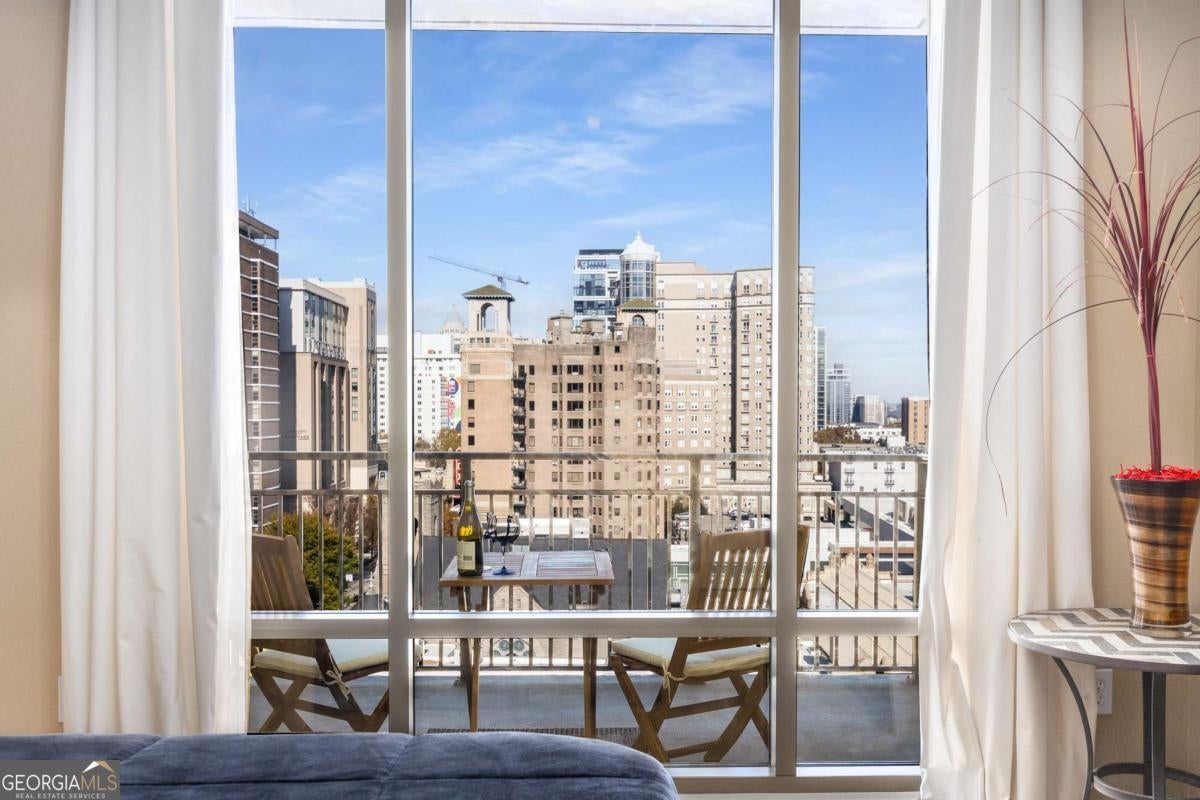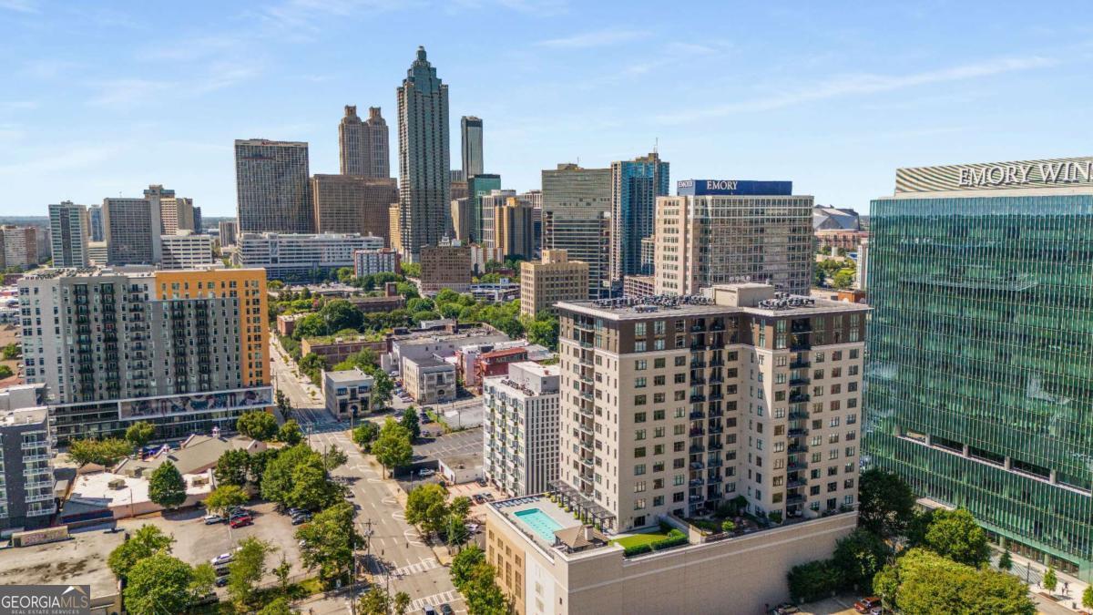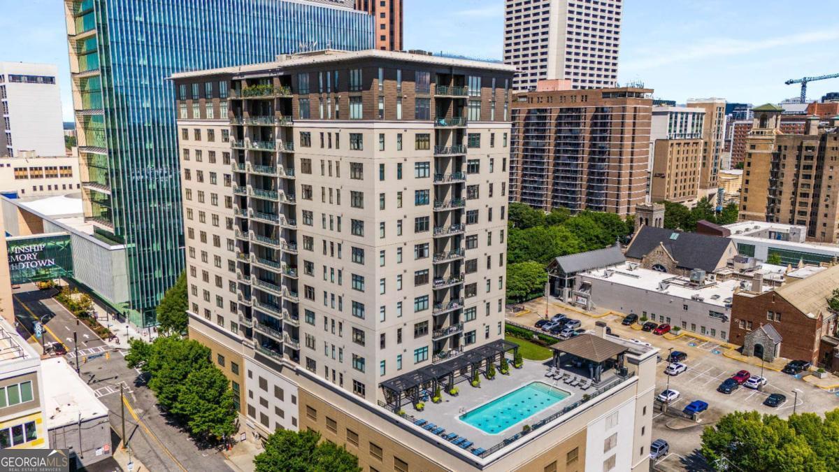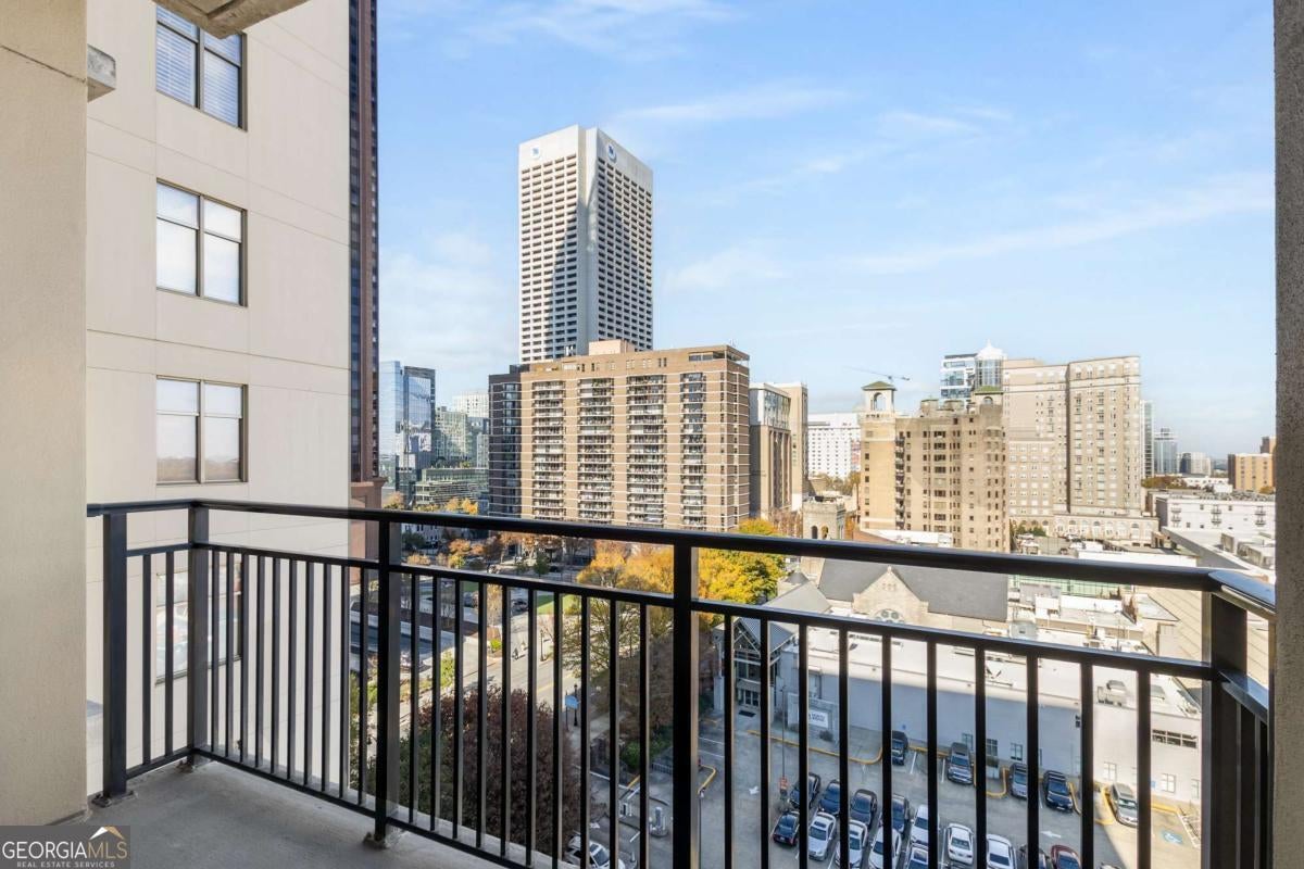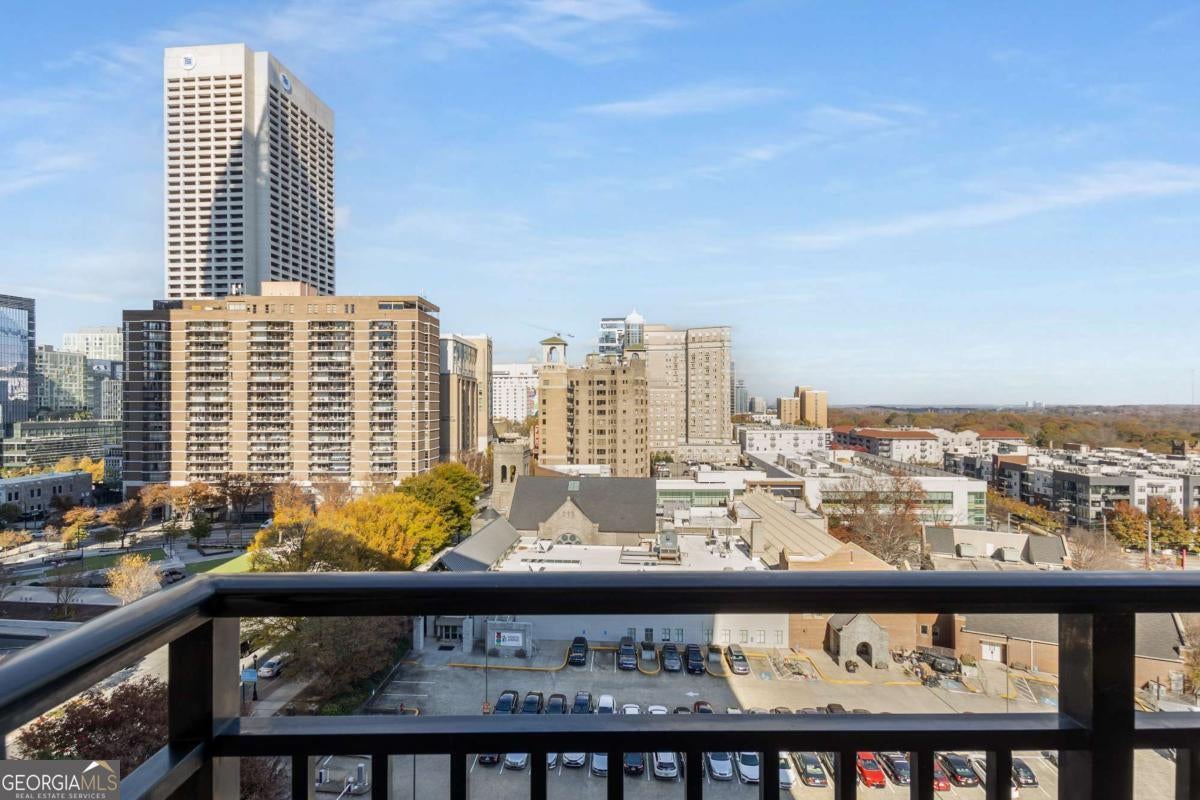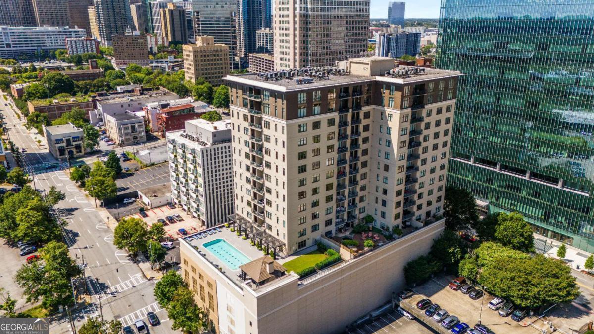 ***Building approved for Conventional Loans*** Highly desirable north-facing, 12th floor 1 bed/1 bath plus den with breathtaking panoramic views in a boutique, luxury high rise located in the heart of all Midtown has to offer. Bright, open living/dining/kitchen floor plan includes 10' ceilings, hardwoods, ceiling fan, granite, SS appliances with potential to add gas cooking, kitchen backsplash, and sizable pantry. Spacious primary suite features floor-to-ceiling windows, ceiling fan, and oversized walk-in closet. Generously-sized den can function as dining room, guest bedroom, or office. Private walk-out balcony with epoxy flooring and panoramic views of the Fox Theatre, Midtown, Stone Mountain, and Piedmont Park. Laundry closet with stackable washer/dryer is conveniently located in the hall. Gated, first level garage parking space adds to the appeal. Top it off with superb 24/7 concierge service, resort-style amenities - seasonally heated saltwater pool, lounge, fitness center & covered grilling area with fireplace. A short walk to GA Tech, entertainment, restaurants, Piedmont Park, Winship Cancer Institute at Emory Midtown, the Beltline, and Ponce City Market with easy access to interstates 75/85 only two blocks away. One of Atlanta's top-rated vegan restaurants is located in the building. This is intown living at its very best!