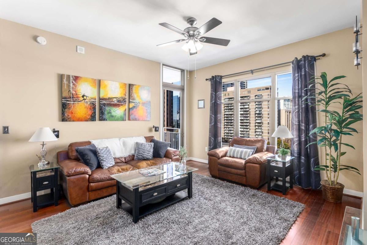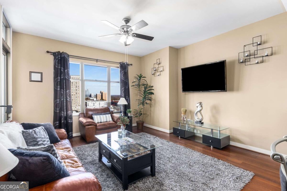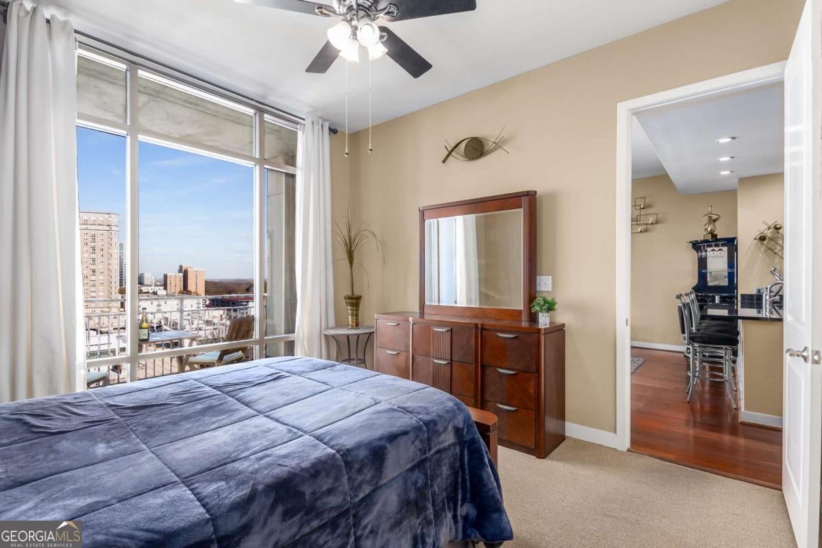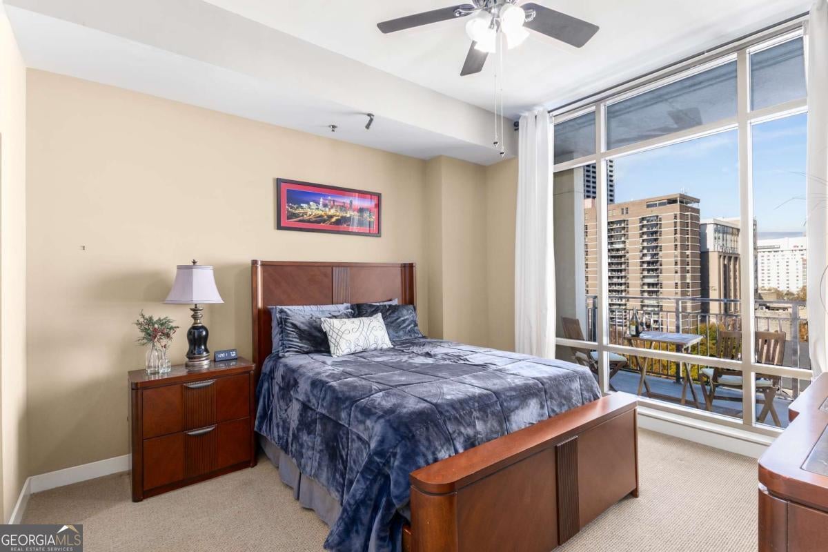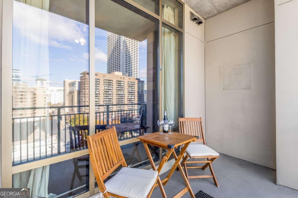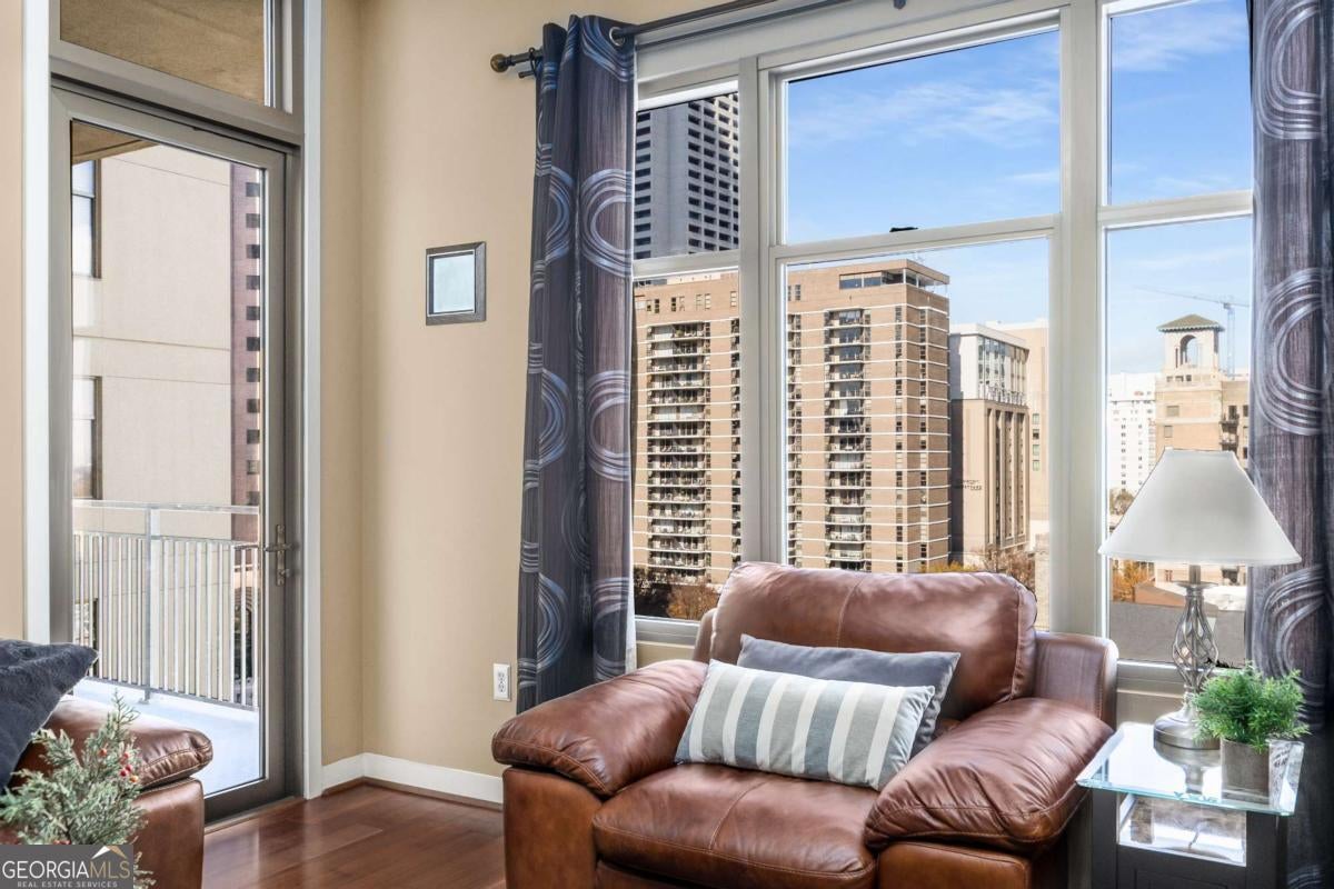 ***Building approved for Conventional Loans*** Highly desirable north-facing, 12th floor 1 bed/1 bath plus den with breathtaking panoramic views in a boutique, luxury high rise located in the heart of all Midtown has to offer. Bright, open living/dining/kitchen floor plan includes 10' ceilings, hardwoods, ceiling fan, granite, SS appliances with potential to add gas cooking, kitchen backsplash, and sizable pantry. Spacious primary suite features floor-to-ceiling windows, ceiling fan, and oversized walk-in closet. Generously-sized den can function as dining room, guest bedroom, or office. Private walk-out balcony with epoxy flooring and panoramic views of the Fox Theatre, Midtown, Stone Mountain, and Piedmont Park. Laundry closet with stackable washer/dryer is conveniently located in the hall. Gated, first level garage parking space adds to the appeal. Top it off with superb 24/7 concierge service, resort-style amenities - seasonally heated saltwater pool, lounge, fitness center & covered grilling area with fireplace. A short walk to GA Tech, entertainment, restaurants, Piedmont Park, Winship Cancer Institute at Emory Midtown, the Beltline, and Ponce City Market with easy access to interstates 75/85 only two blocks away. One of Atlanta's top-rated vegan restaurants is located in the building. This is intown living at its very best!