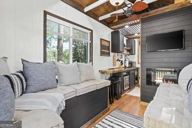 This is a generational investment opportunity to own one of the finest mountain view lots in the Blue Ridge, perfectly positioned on a road lined with multi-million dollar luxury estates. Secure your future homesite while generating proven, reliable passive income from the highly-rated short-term rental currently on the property. You can use the revenue to offset carrying costs or simply enjoy the cash flow while you take your time planning your future $1,000,000+ custom estate. The land is already a builder's dream, eliminating the costliest and most time-consuming hurdles of development. All core utilities are in place-power, water, and septic-saving you significant time and tens of thousands of dollars typically associated with raw land prep. The existing septic system is rated for 3 bedrooms, with an easy, low-cost upgrade (approximately $1,500) to easily accommodate a 4-bedroom dream home. The current tiny home is a turnkey success, boasting a consistent track record of bookings and rave guest reviews. Guests love the spacious deck featuring a grill, cafe lights, a fire pit, and the perfect setup for peaceful stargazing. Inside, you'll find a cozy, fully furnished retreat that includes an electric fireplace and a kitchen equipped with everything needed for a comfortable stay. This is a truly unparalleled and irreplaceable homesite featuring unobstructed, 180-degree panoramic views of the beautiful Blue Ridge Mountains. Whether you are expanding your investment portfolio or securing the perfect land for your ultimate mountain retreat, this property is ready to perform from day one. Enjoy no HOA, a strong rental history, and a prime location just minutes to hiking, wineries, and charming mountain towns.