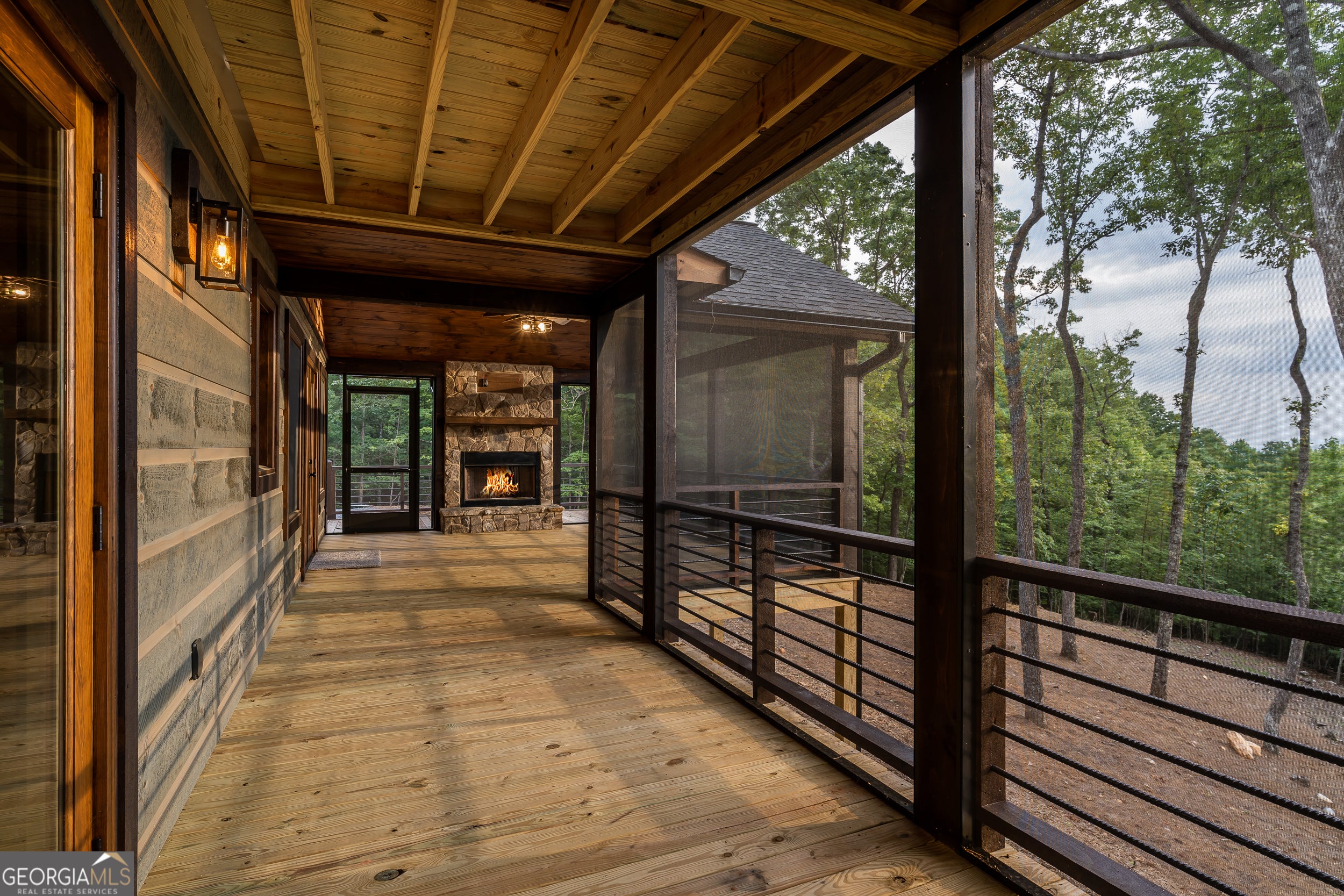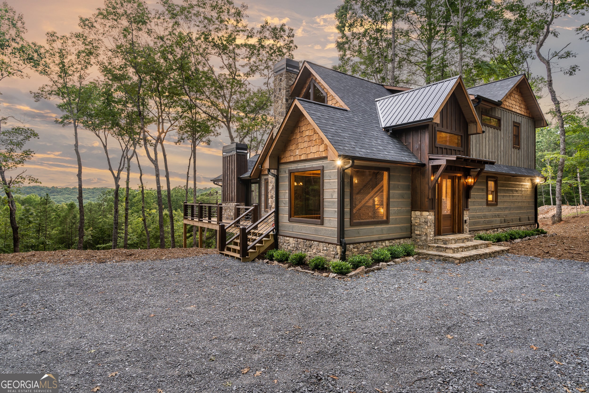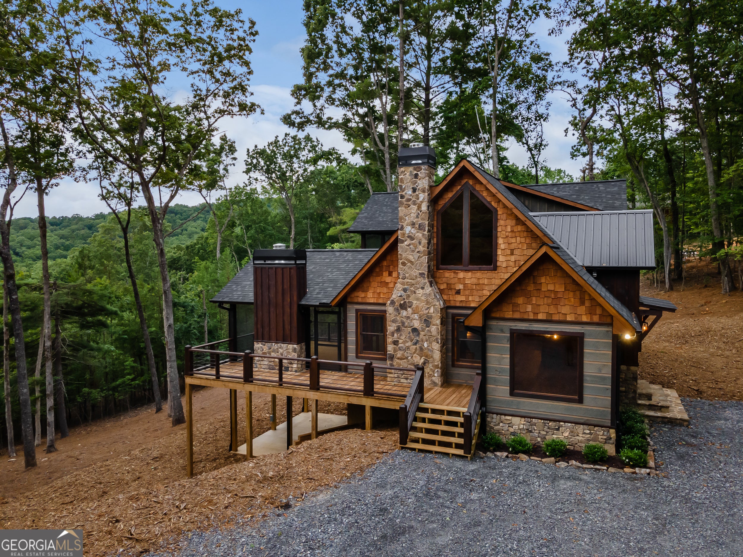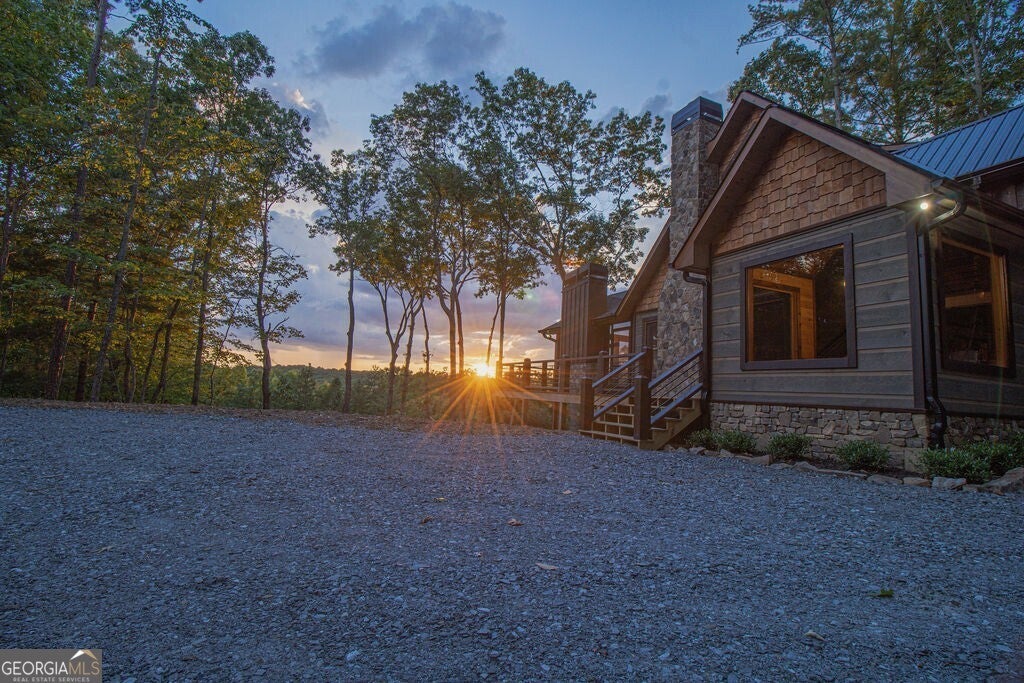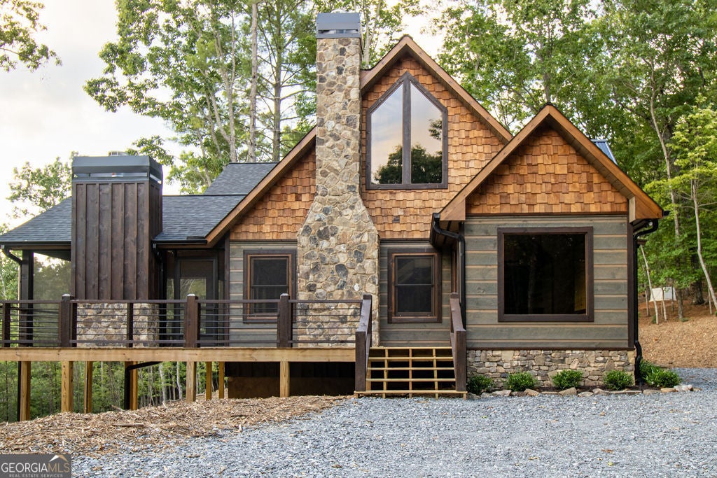Welcome to the Best of North Georgia Mountain Living! You'll fall in love with this gorgeous home from the moment you arrive. Take in the layered long-range mountain views, tree canopy, perhaps a family of deer quietly strolling by, and the fresh mountain air! The builder thoughtfully combined a variety of textures, appointments, and features offering the coziness of a cabin, while including modern luxury touches throughout. The exterior blend of wood, stone, and metal complements the backdrop and serves as a welcome mat for you and your visitors. Notice the easy entry to the main level, the open flow of the floorplan, quality materials throughout, expansive windows frame the outdoor beauty, stone fireplace, modern cabinets, granite counters, generously sized bedroom and full bath, laundry closet, and separate dining area. Includes a screened porch with outdoor fireplace for chilly mountain evenings watching your favorite game or having a quiet cup of coffee in the morning. The upper level is a sanctuary with double vanity (granite), shower, walk in closet, and a private screened porch to enjoy sunsets and sunrises! The terrace level includes a wet bar, stone gas fireplace, bedroom, full bath, and plenty of functional space for a bunk room, games, office, family room, etc. so let your imagination soar! Don't miss the concrete porch spanning the length of the home. This home's location is convenient to Blue Ridge, Blairsville, and all north Georgia attractions: area shopping, dining, festivals, tubing, hiking, wineries, and events! Ideal for full-time living, vacation home, or short-term rental investment!
