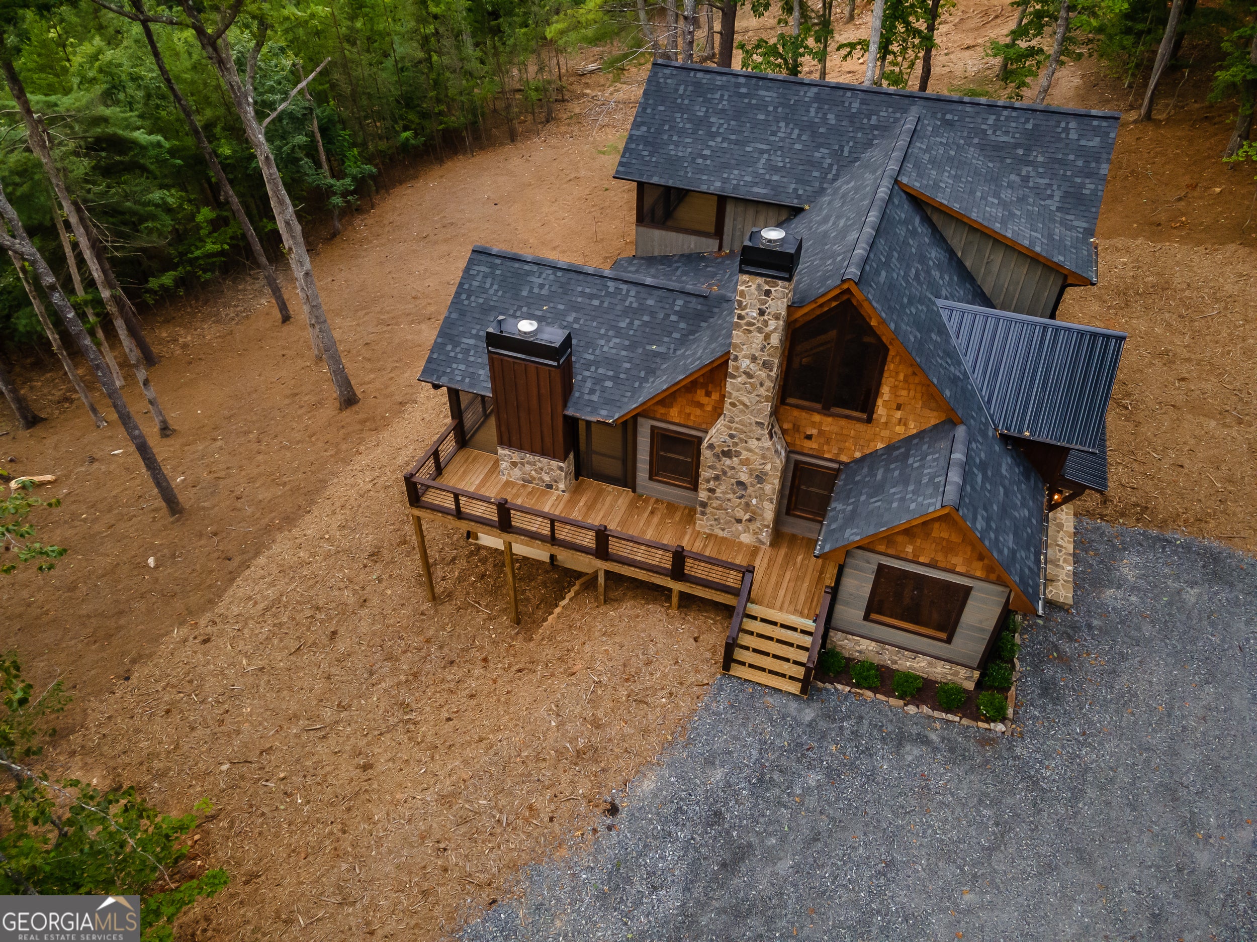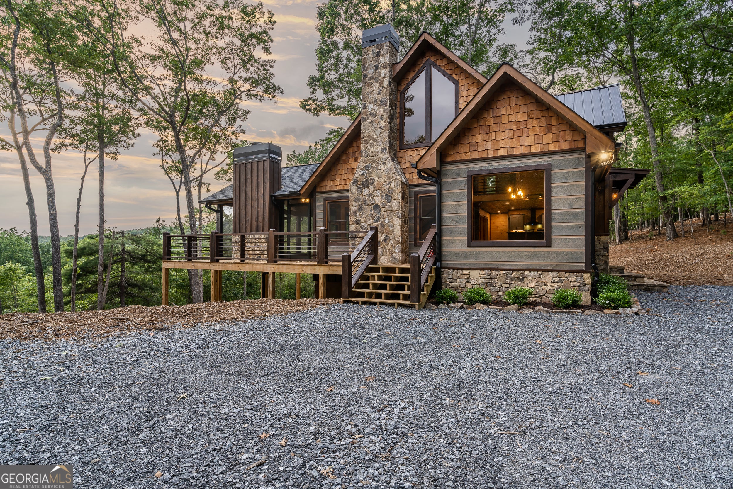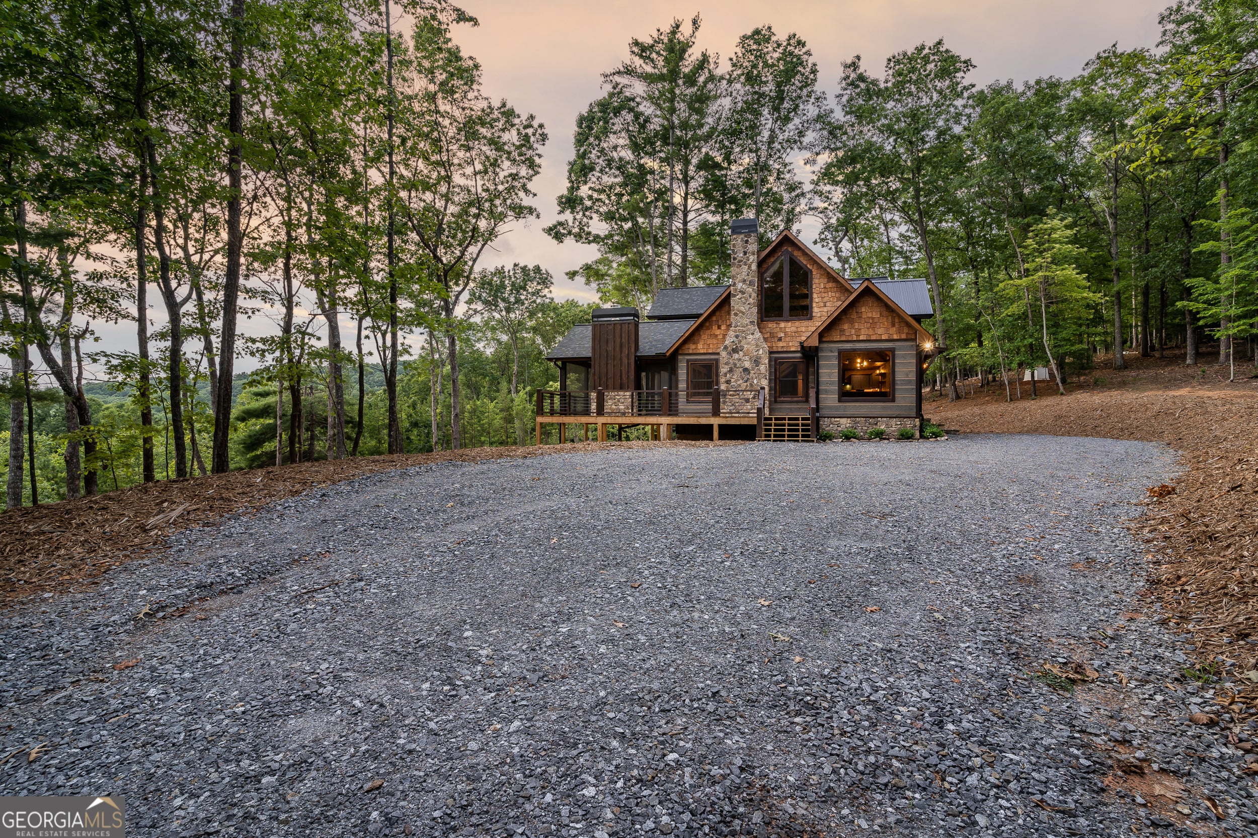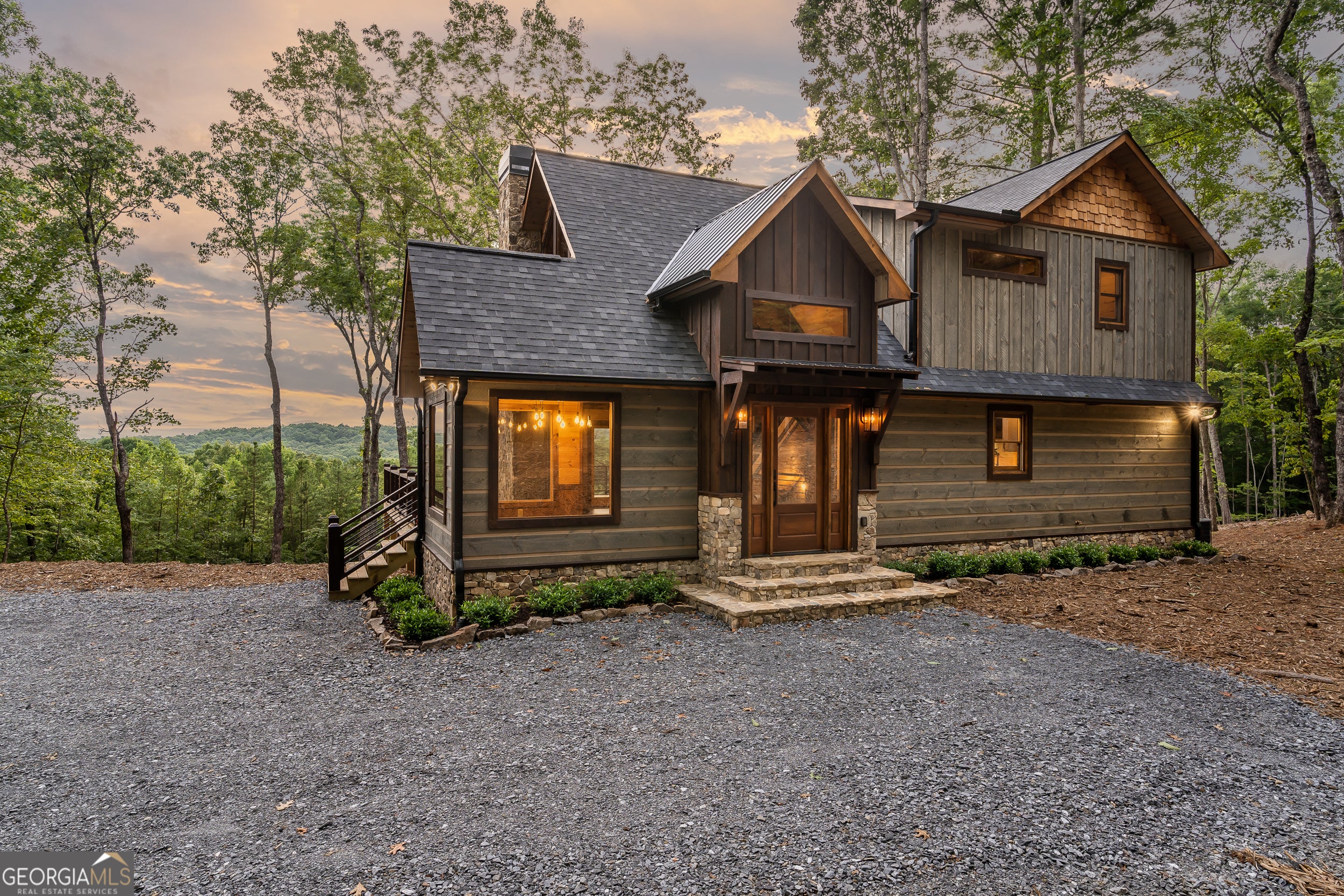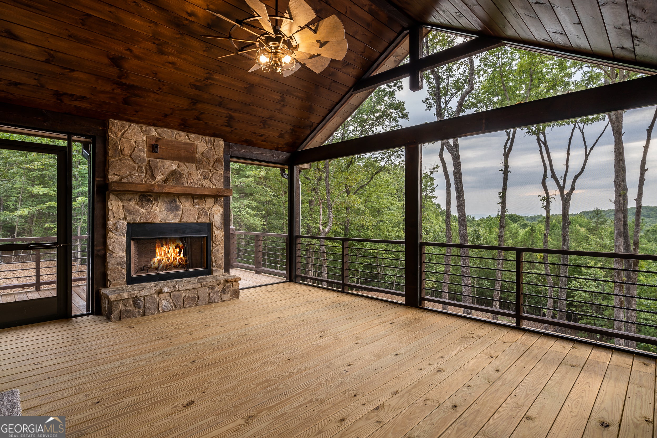 Welcome to the Best of North Georgia Mountain Living! You'll fall in love with this gorgeous home from the moment you arrive. Take in the layered long-range mountain views, tree canopy, perhaps a family of deer quietly strolling by, and the fresh mountain air! The builder thoughtfully combined a variety of textures, appointments, and features offering the coziness of a cabin, while including modern luxury touches throughout. The exterior blend of wood, stone, and metal complements the backdrop and serves as a welcome mat for you and your visitors. Notice the easy entry to the main level, the open flow of the floorplan, quality materials throughout, expansive windows frame the outdoor beauty, stone fireplace, modern cabinets, granite counters, generously sized bedroom and full bath, laundry closet, and separate dining area. Includes a screened porch with outdoor fireplace for chilly mountain evenings watching your favorite game or having a quiet cup of coffee in the morning. The upper level is a sanctuary with double vanity (granite), shower, walk in closet, and a private screened porch to enjoy sunsets and sunrises! The terrace level includes a wet bar, stone gas fireplace, bedroom, full bath, and plenty of functional space for a bunk room, games, office, family room, etc. so let your imagination soar! Don't miss the concrete porch spanning the length of the home. This home's location is convenient to Blue Ridge, Blairsville, and all north Georgia attractions: area shopping, dining, festivals, tubing, hiking, wineries, and events! Ideal for full-time living, vacation home, or short-term rental investment!
