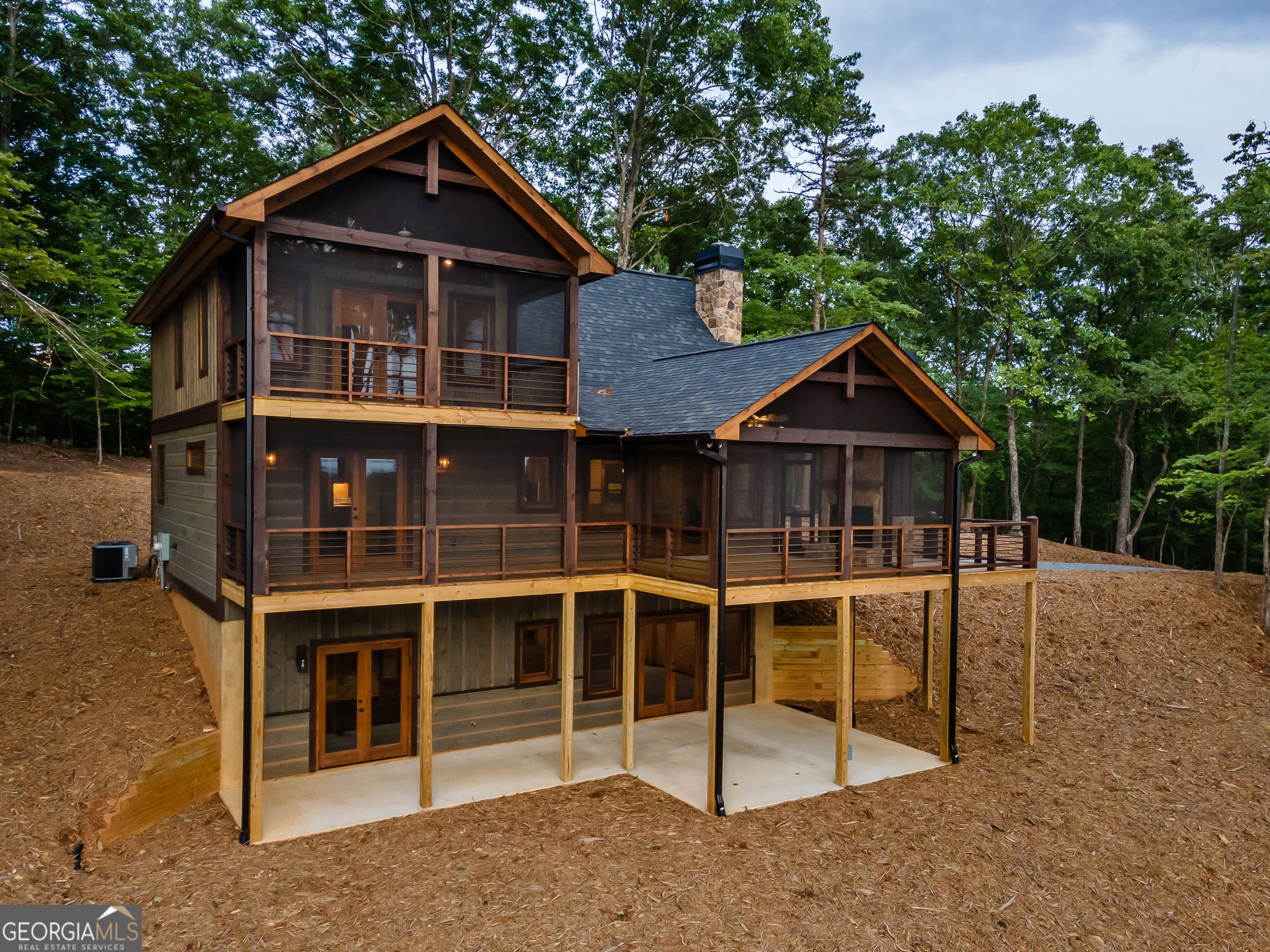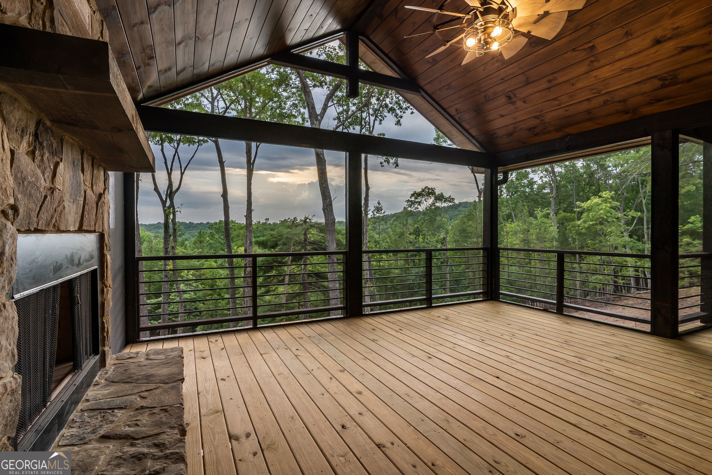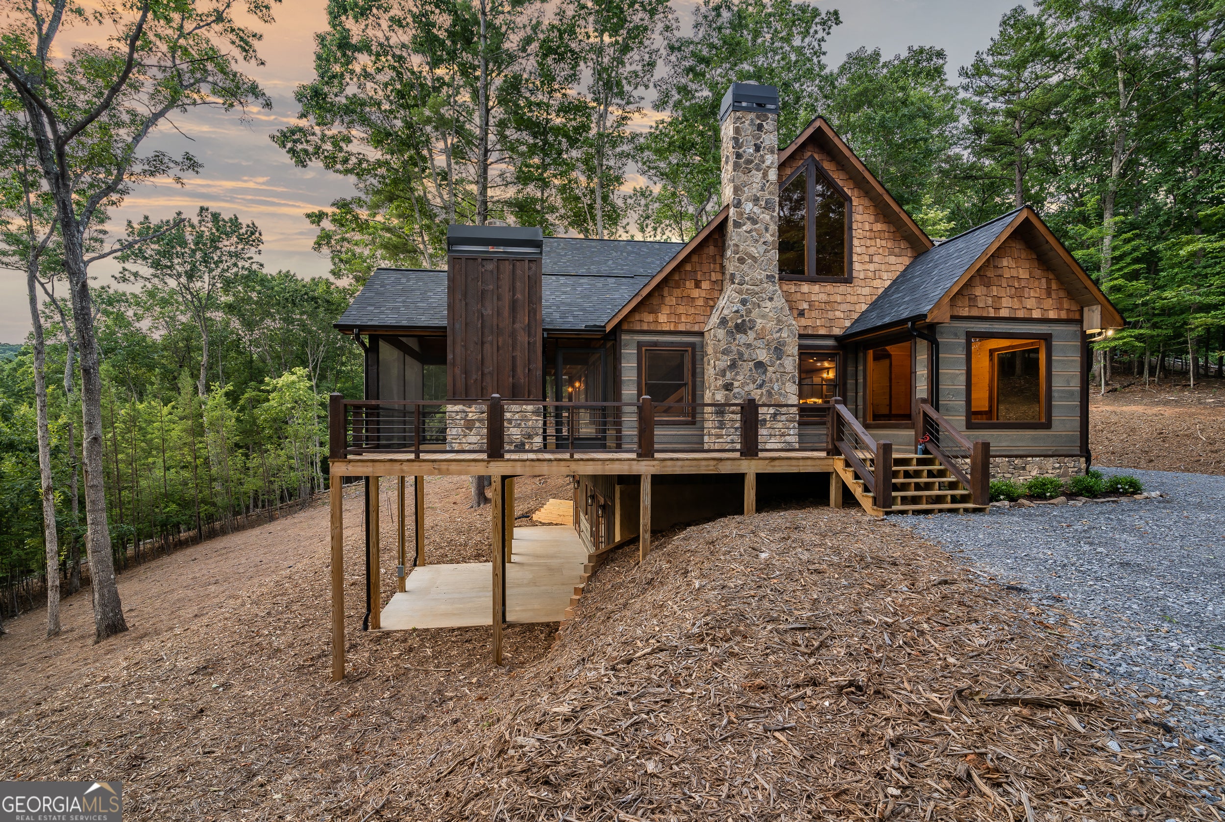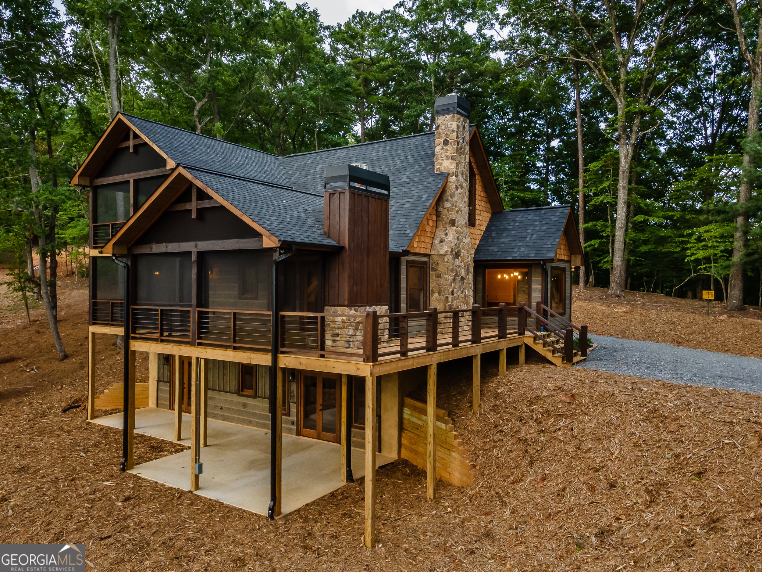 Welcome to the Best of North Georgia Mountain Living! You'll fall in love with this gorgeous home from the moment you arrive. Take in the layered long-range mountain views, tree canopy, perhaps a family of deer quietly strolling by, and the fresh mountain air! The builder thoughtfully combined a variety of textures, appointments, and features offering the coziness of a cabin, while including modern luxury touches throughout. The exterior blend of wood, stone, and metal complements the backdrop and serves as a welcome mat for you and your visitors. Notice the easy entry to the main level, the open flow of the floorplan, quality materials throughout, expansive windows frame the outdoor beauty, stone fireplace, modern cabinets, granite counters, generously sized bedroom and full bath, laundry closet, and separate dining area. Includes a screened porch with outdoor fireplace for chilly mountain evenings watching your favorite game or having a quiet cup of coffee in the morning. The upper level is a sanctuary with double vanity (granite), shower, walk in closet, and a private screened porch to enjoy sunsets and sunrises! The terrace level includes a wet bar, stone gas fireplace, bedroom, full bath, and plenty of functional space for a bunk room, games, office, family room, etc. so let your imagination soar! Don't miss the concrete porch spanning the length of the home. This home's location is convenient to Blue Ridge, Blairsville, and all north Georgia attractions: area shopping, dining, festivals, tubing, hiking, wineries, and events! Ideal for full-time living, vacation home, or short-term rental investment!