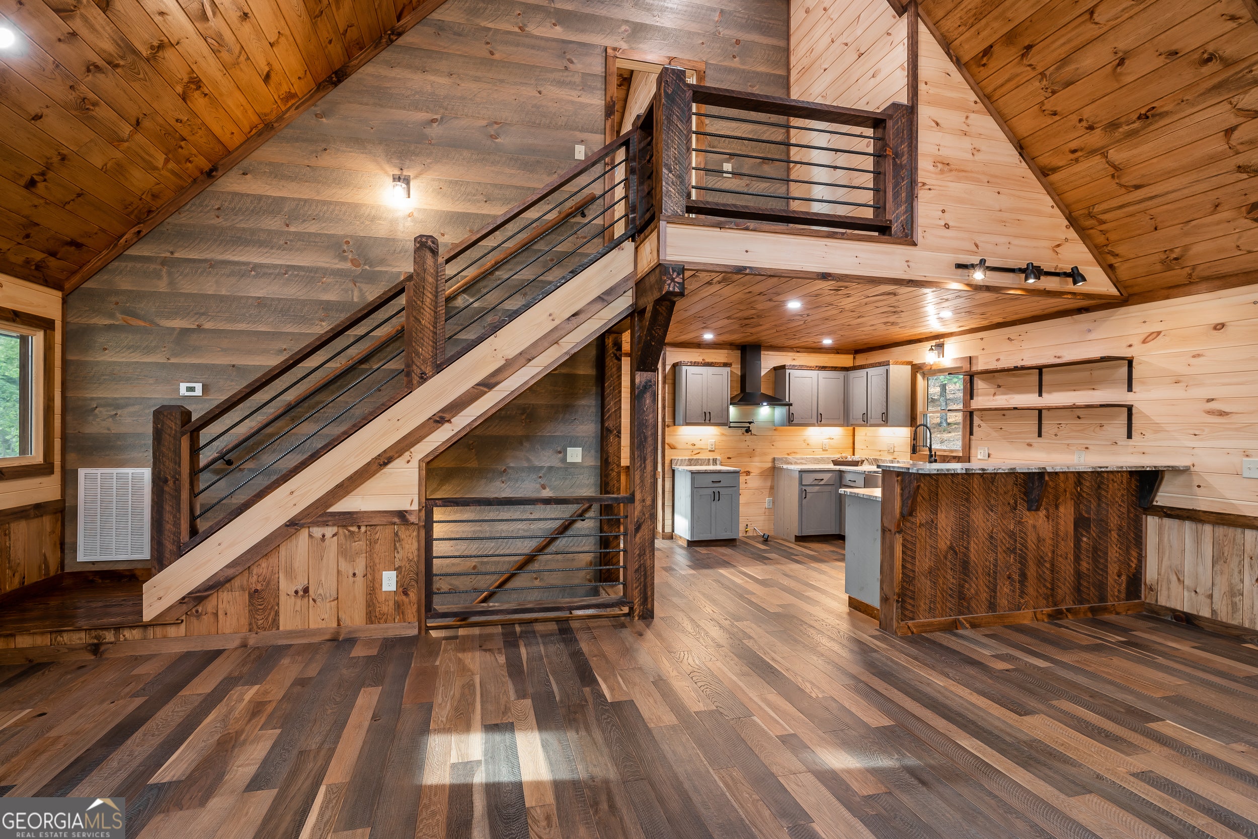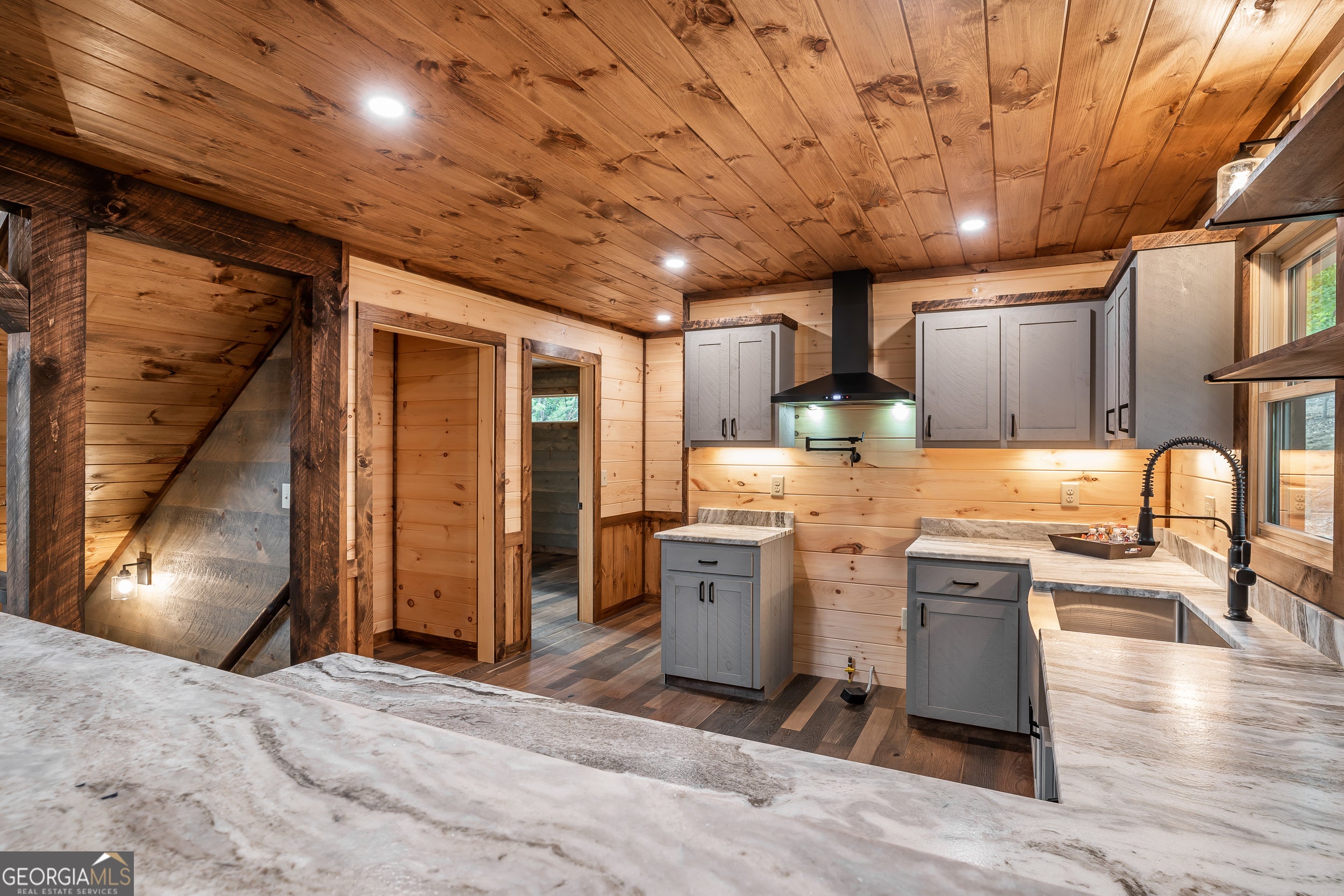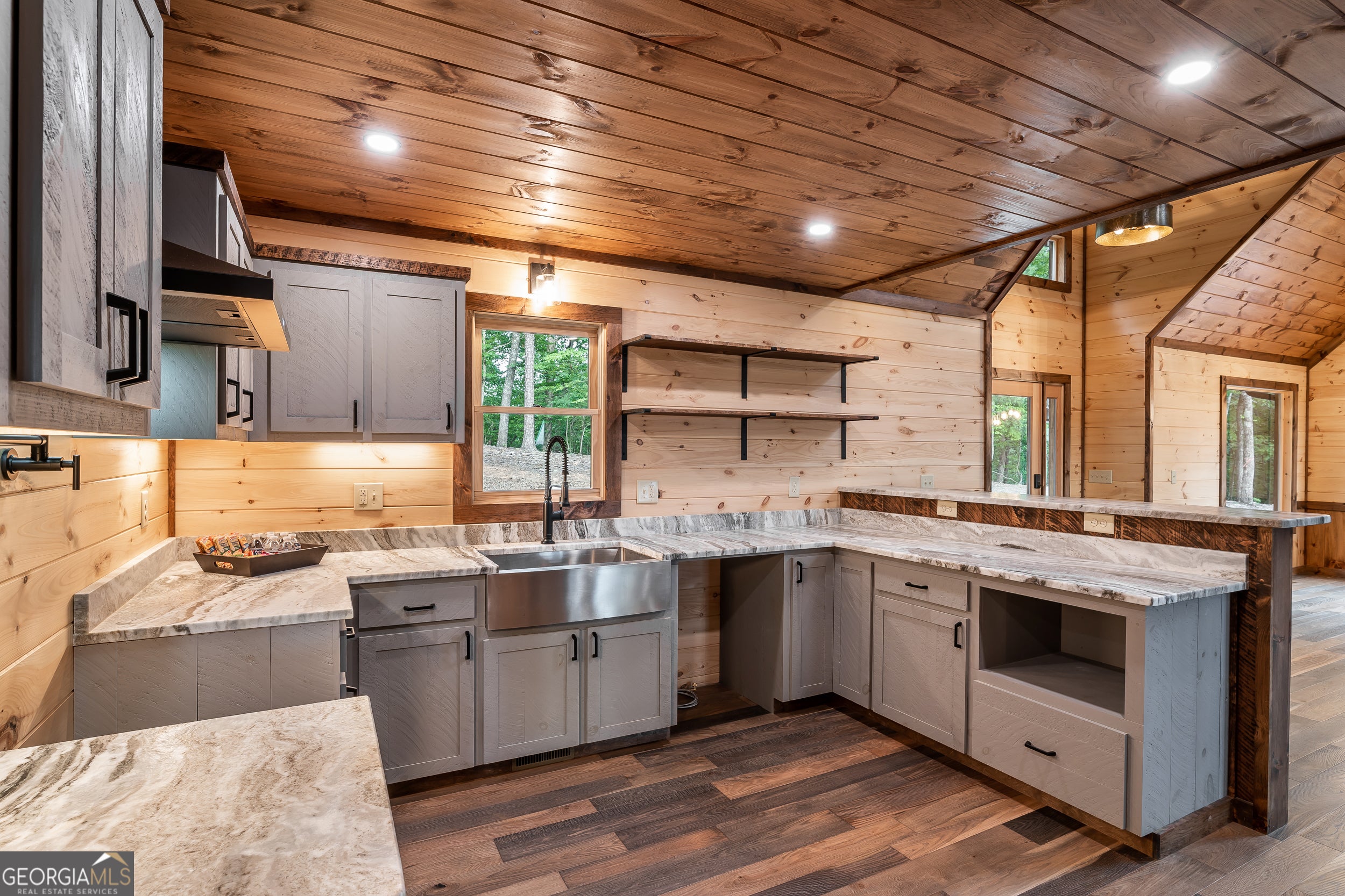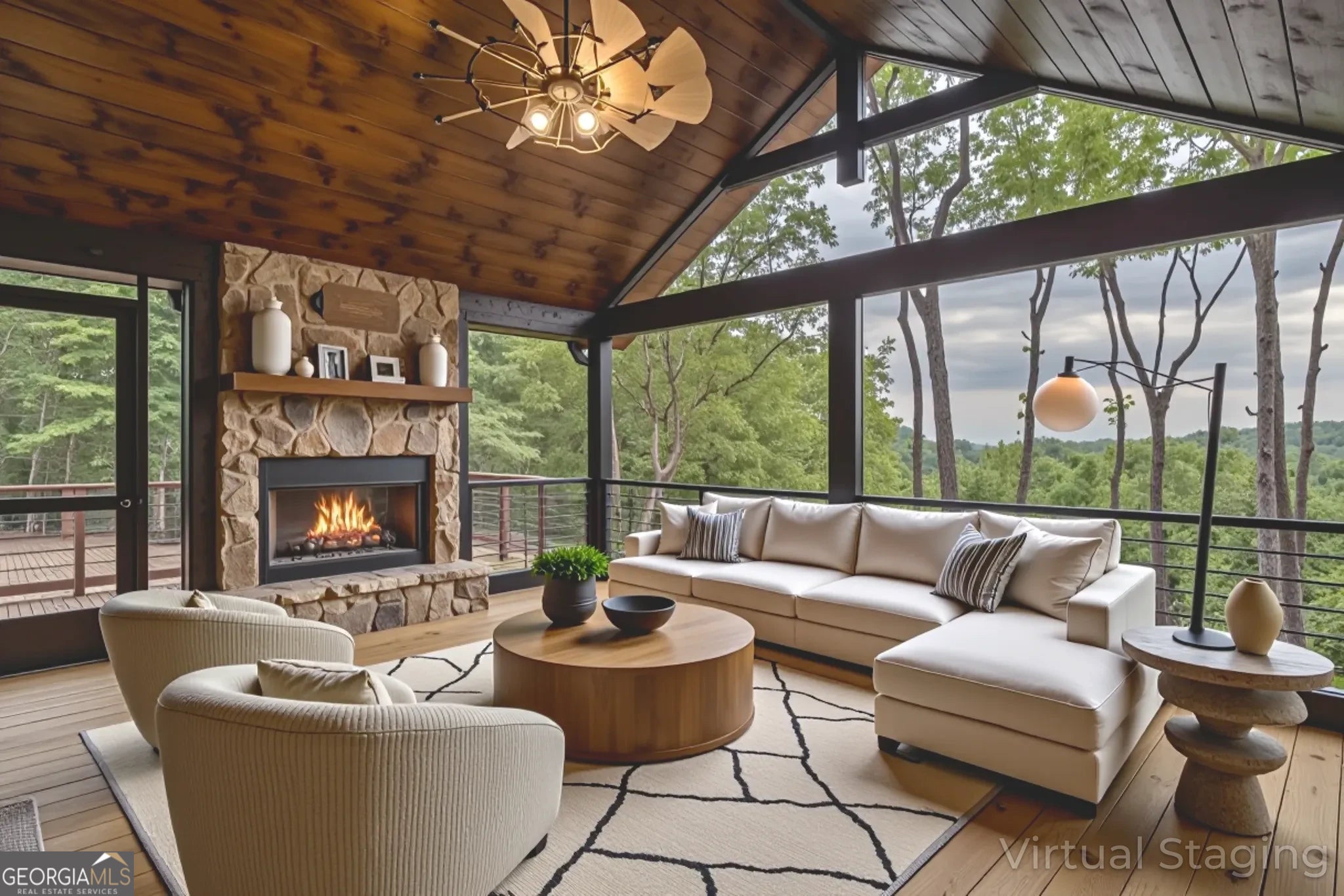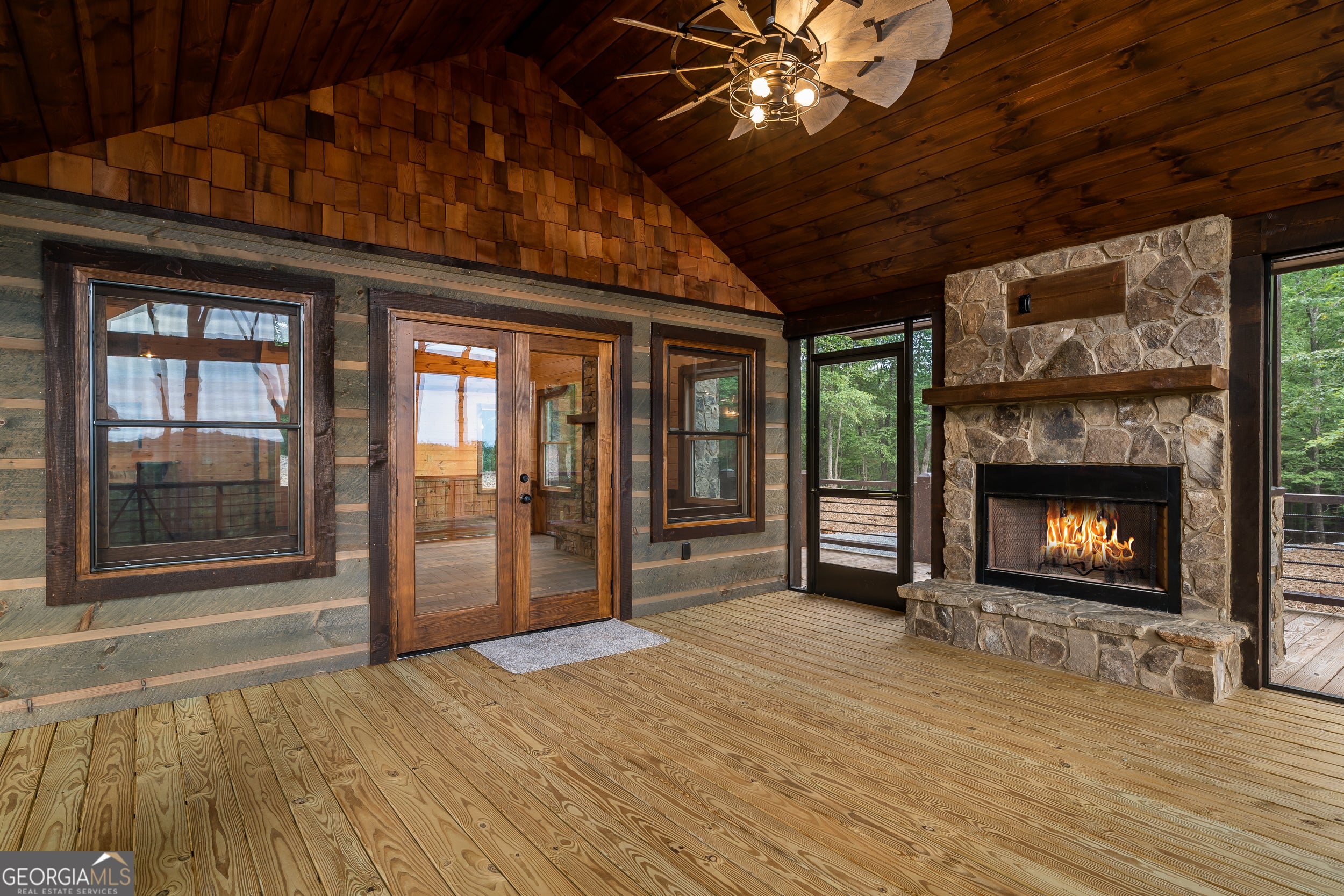 Welcome to the Best of North Georgia Mountain Living! You'll fall in love with this gorgeous home from the moment you arrive. Take in the layered long-range mountain views, tree canopy, perhaps a family of deer quietly strolling by, and the fresh mountain air! The builder thoughtfully combined a variety of textures, appointments, and features offering the coziness of a cabin, while including modern luxury touches throughout. The exterior blend of wood, stone, and metal complements the backdrop and serves as a welcome mat for you and your visitors. Notice the easy entry to the main level, the open flow of the floorplan, quality materials throughout, expansive windows frame the outdoor beauty, stone fireplace, modern cabinets, granite counters, generously sized bedroom and full bath, laundry closet, and separate dining area. Includes a screened porch with outdoor fireplace for chilly mountain evenings watching your favorite game or having a quiet cup of coffee in the morning. The upper level is a sanctuary with double vanity (granite), shower, walk in closet, and a private screened porch to enjoy sunsets and sunrises! The terrace level includes a wet bar, stone gas fireplace, bedroom, full bath, and plenty of functional space for a bunk room, games, office, family room, etc. so let your imagination soar! Don't miss the concrete porch spanning the length of the home. This home's location is convenient to Blue Ridge, Blairsville, and all north Georgia attractions: area shopping, dining, festivals, tubing, hiking, wineries, and events! Ideal for full-time living, vacation home, or short-term rental investment!